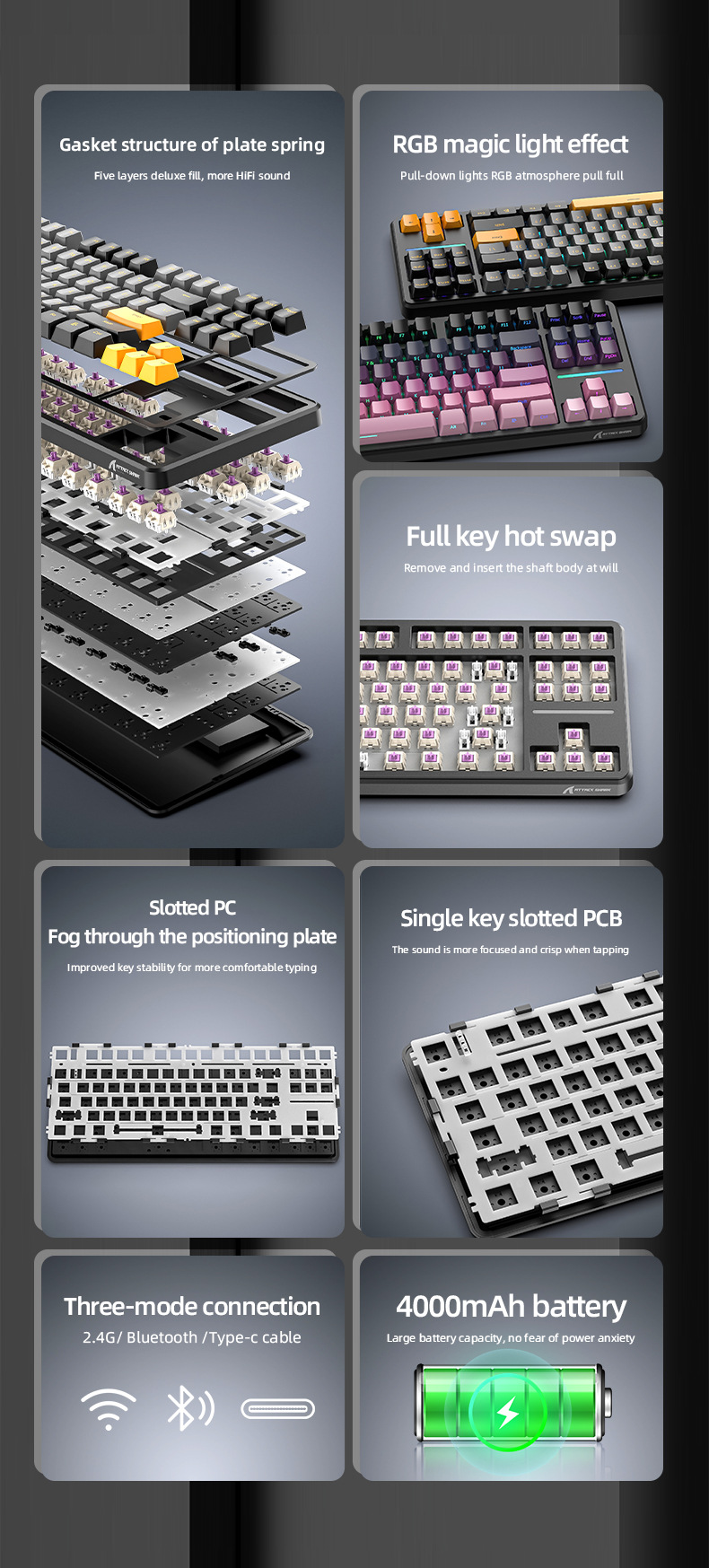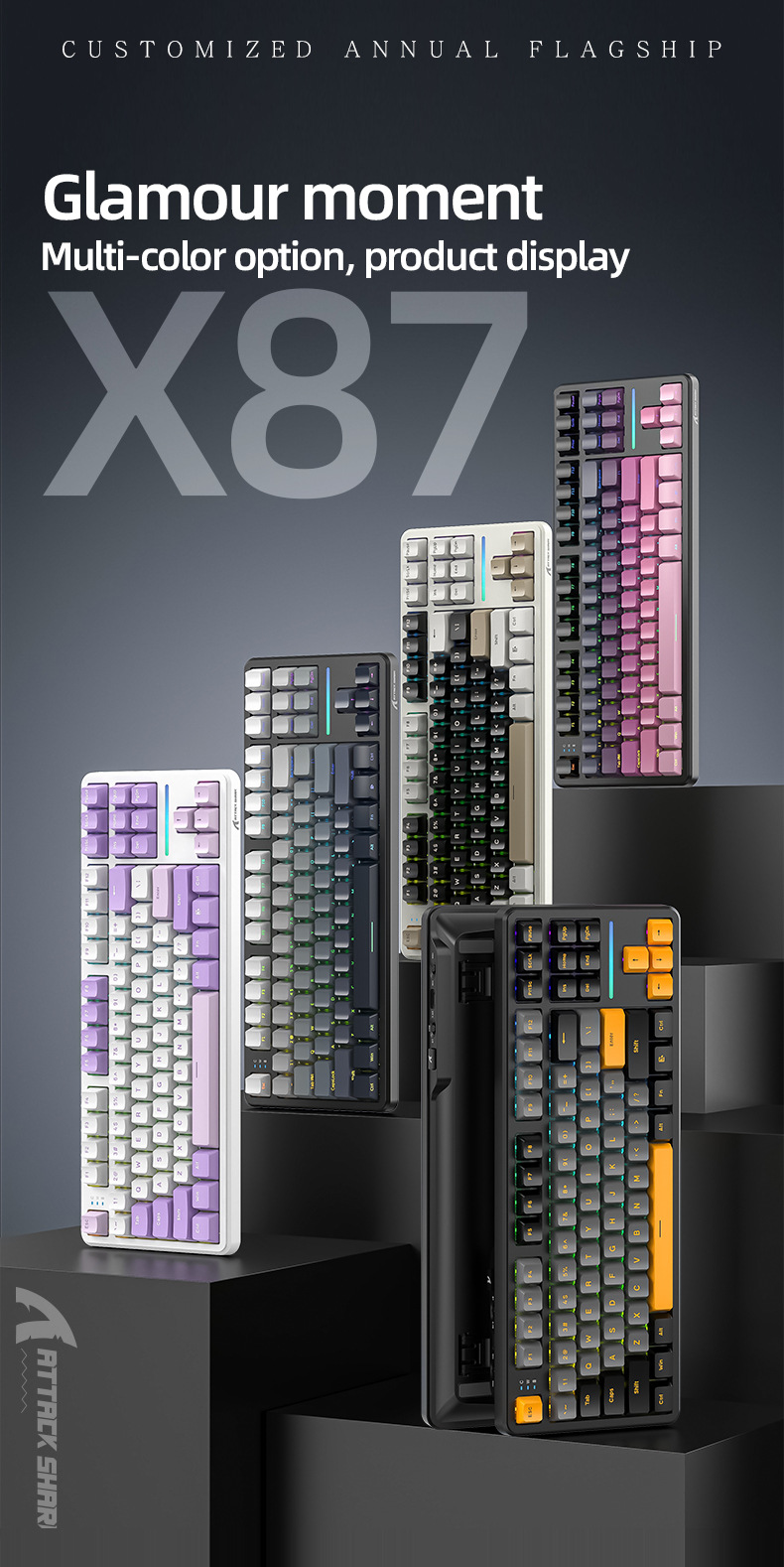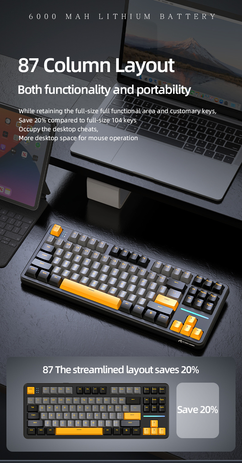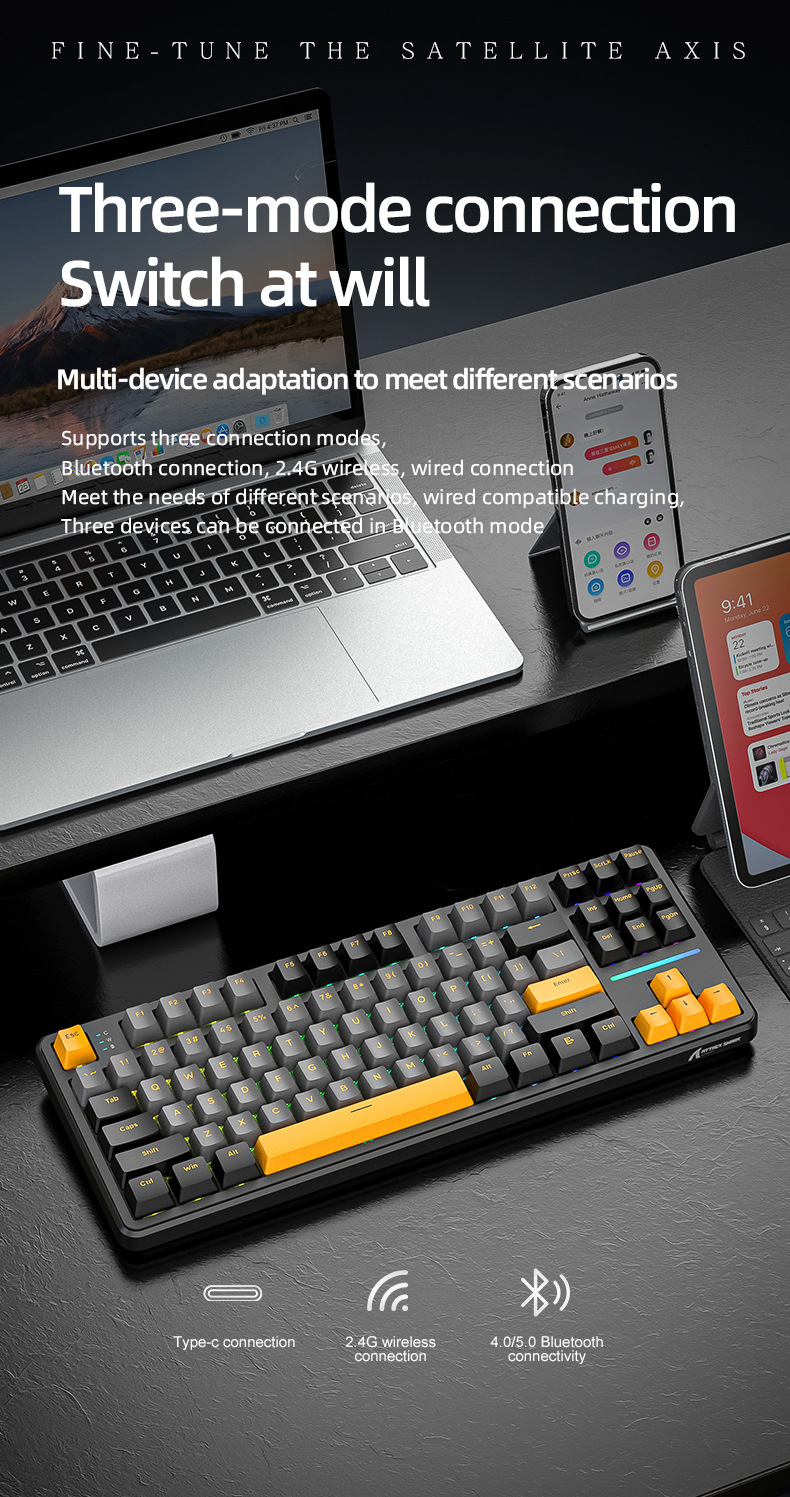 攻击鲨X87三模RGB无线蓝牙热插拔机械键盘