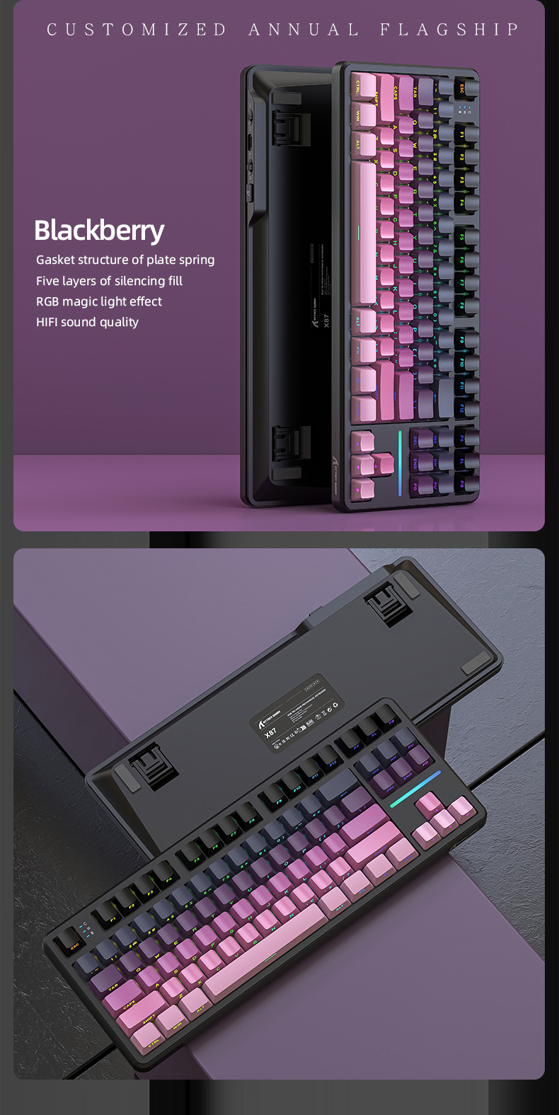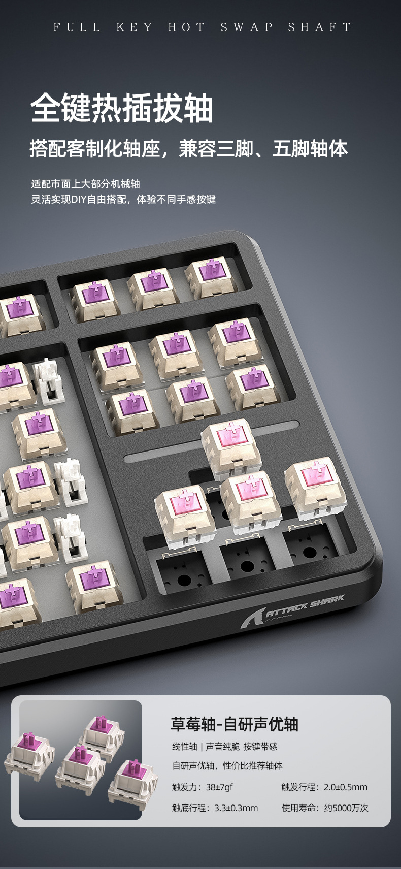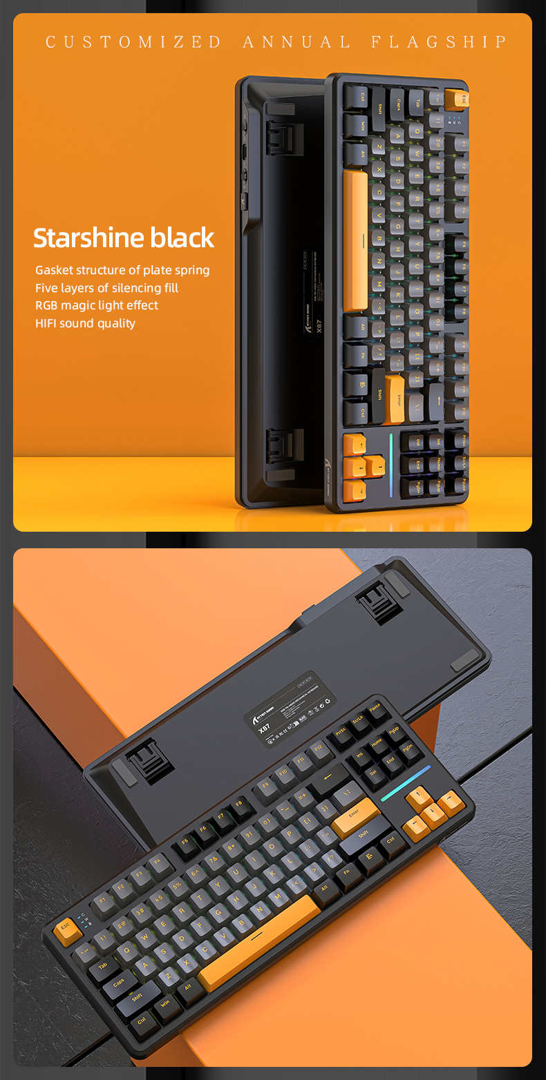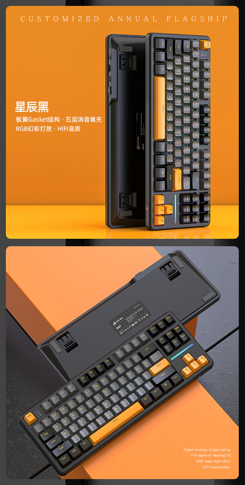攻击鲨X87三模RGB无线蓝牙热插拔机械键盘