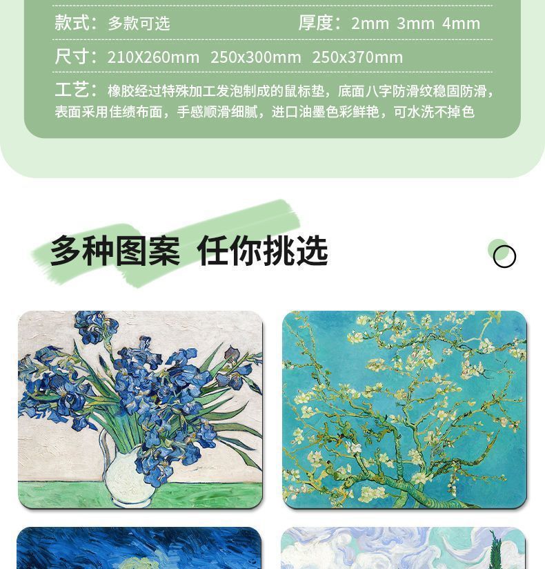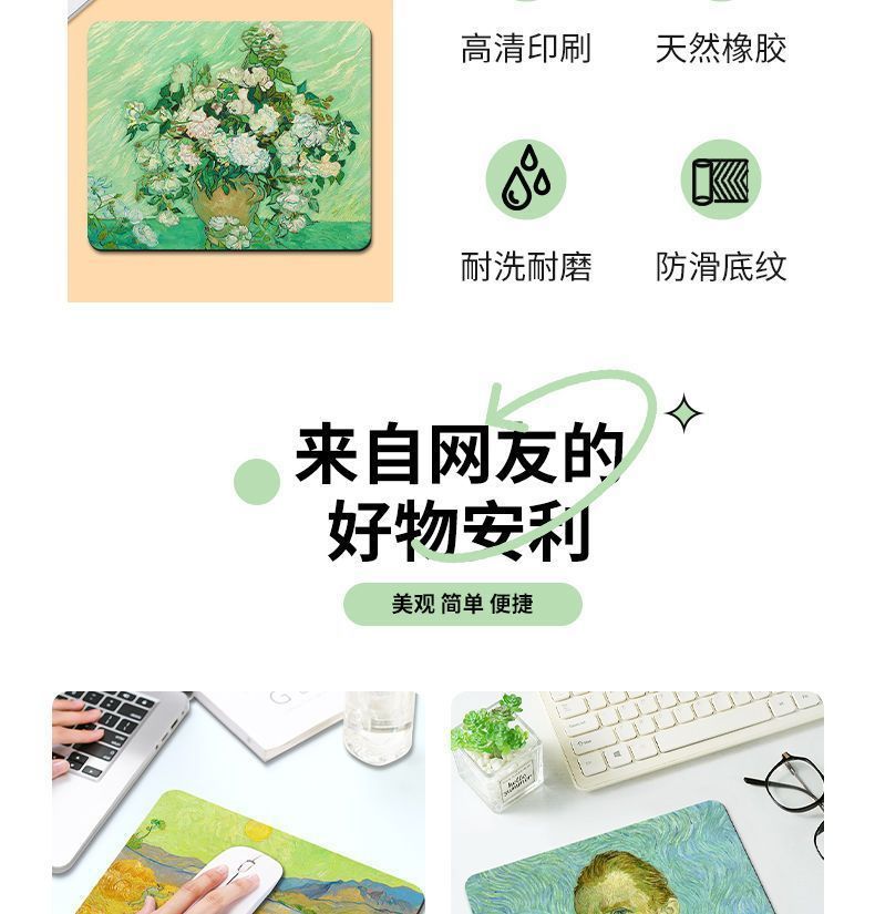 반 고흐 유화 마우스 패드 수채화 스몰 사이즈 여성의 두꺼운 손목 패드 창조적 인 휴대용 게임 전자 스포츠 키보드 패드스토어 가기
