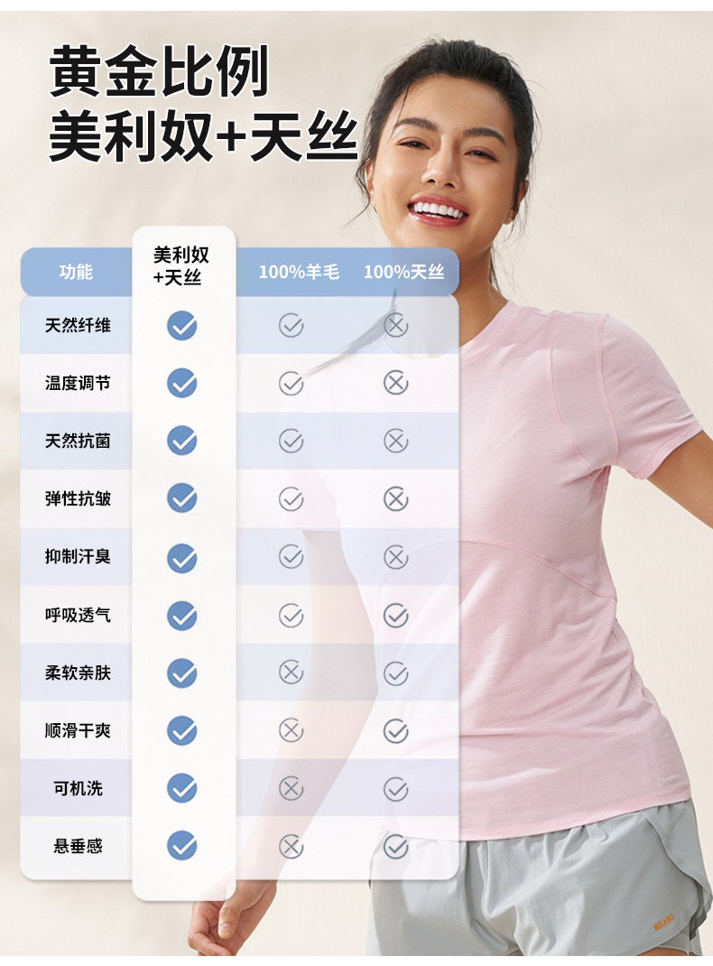Zhejiang Xichen 502 아웃도어 여성용 여름 실크 메리노 울 속건 통기성 메리노 아웃도어 스포츠 반팔 티셔츠