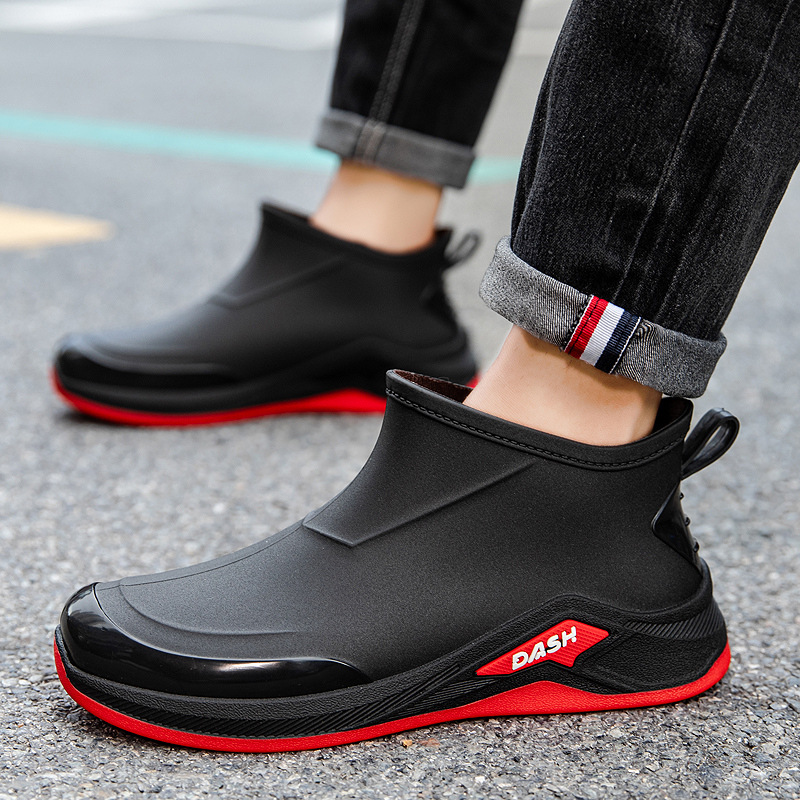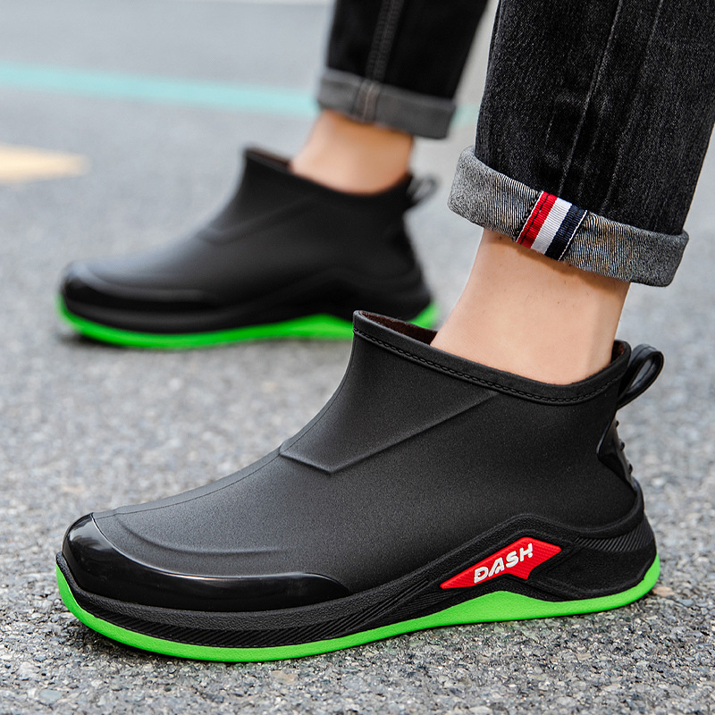국경 간 패션 새로운 장화 남성용 겉옷 미끄럼 방지 방수 부드러운 바닥 장화 주방 작업 고무 신발 짧은 튜브 워터 슈즈