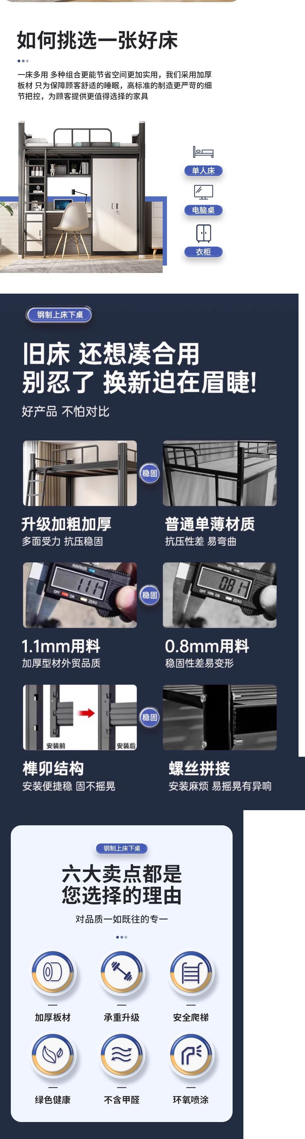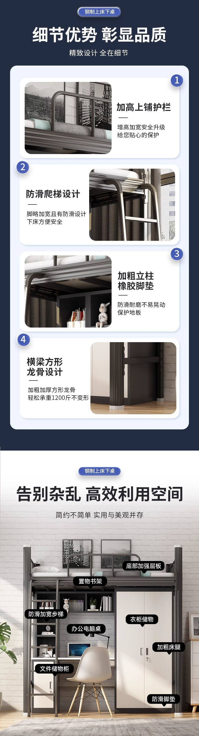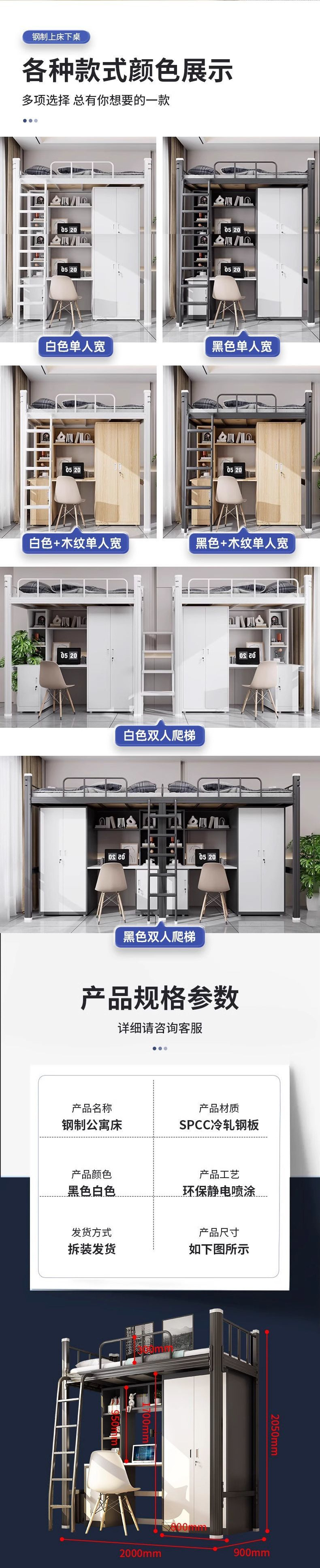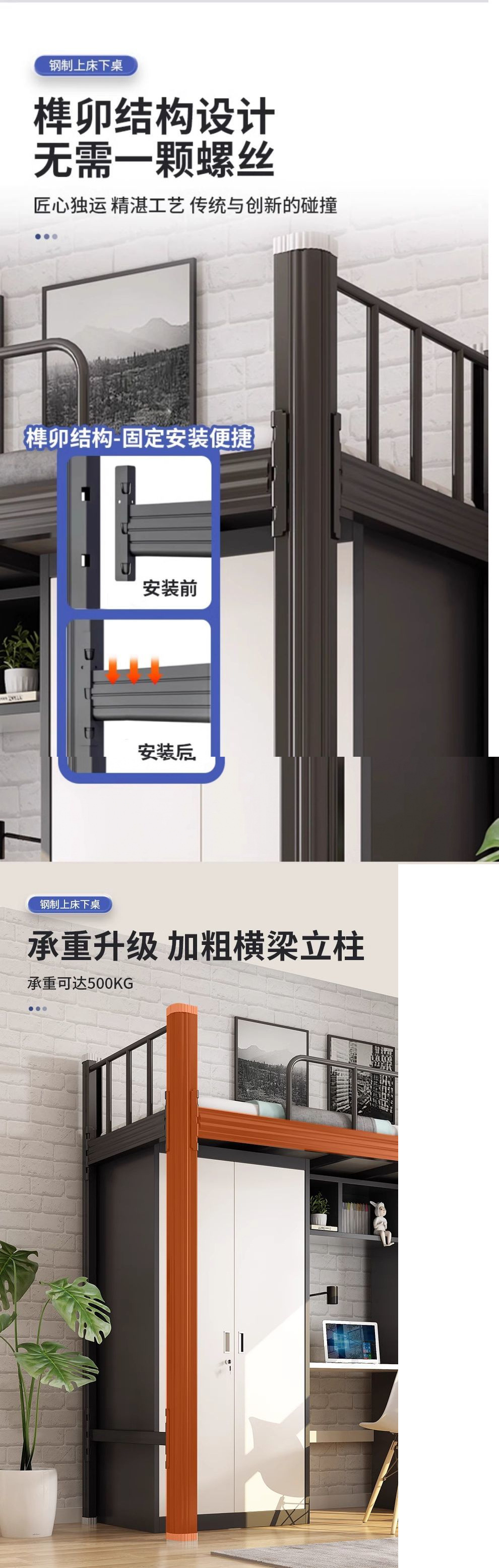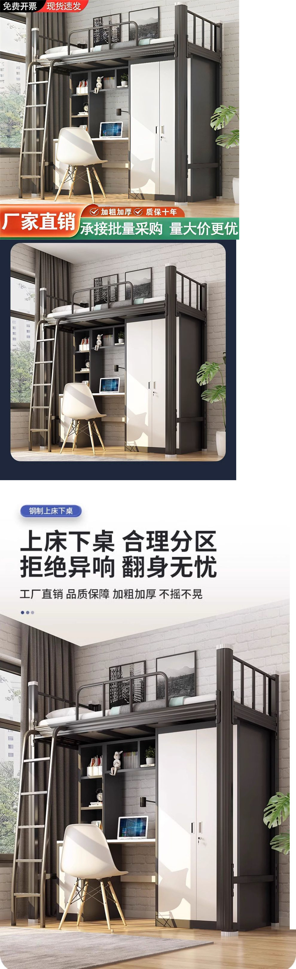 스틸 아파트 침대 높은 침대 학생 기숙사 상부 및 하부 침대 2 층 침대 낮은 테이블 어린이 싱글 침대 ·
