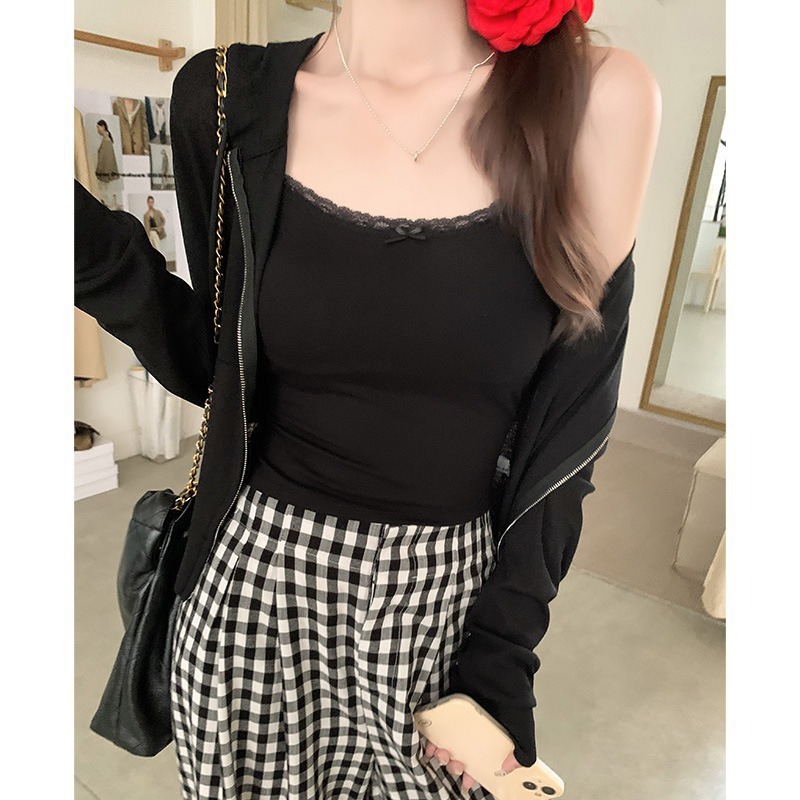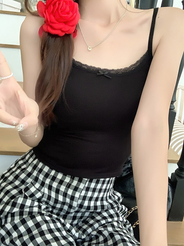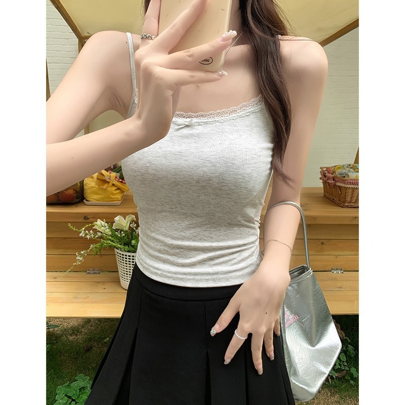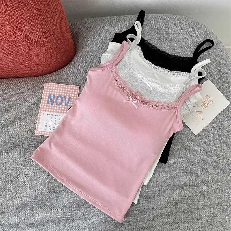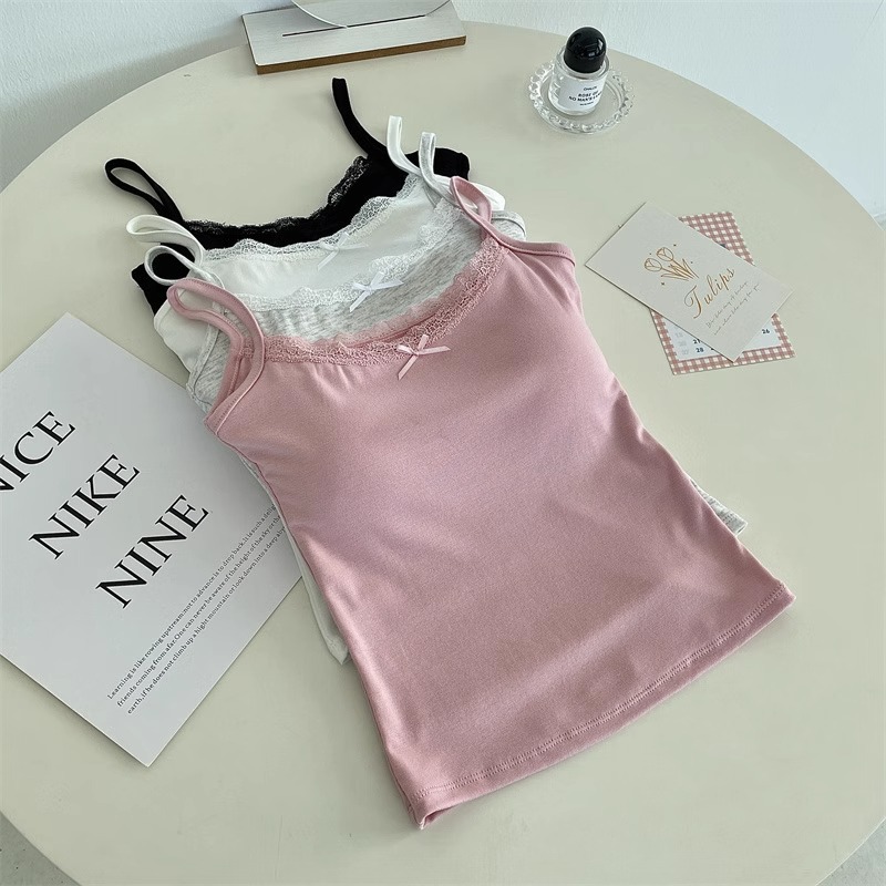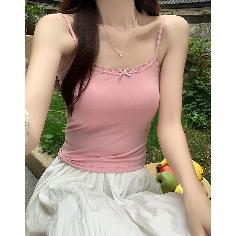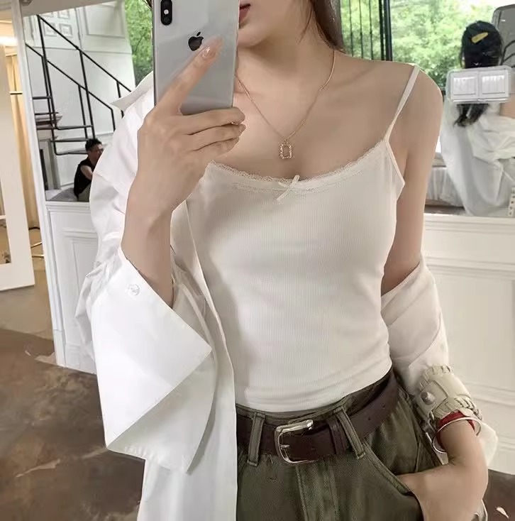 레이스 활 순수한 욕망 스타일 카미 솔 조끼 여성 벨트 가슴 패드 슬림 핏 슬리밍 스파이스 걸스 아름다운 백 아우터베이스 탑