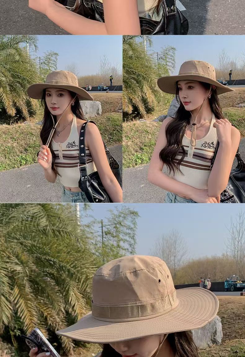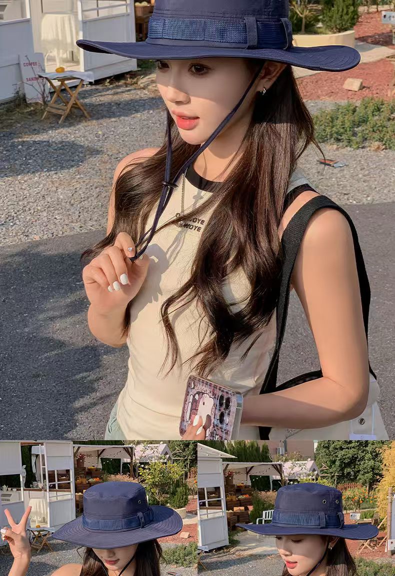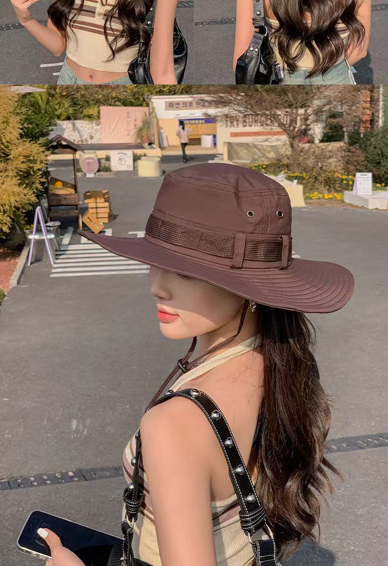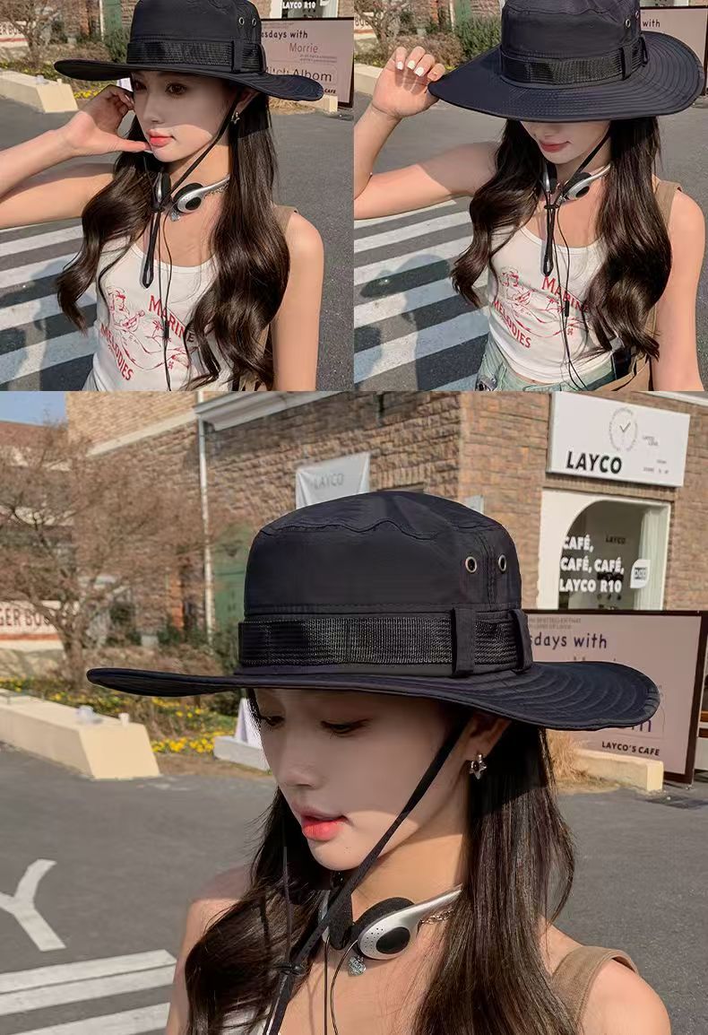 등산 모자 남성과 여성의 여름 빅 브림 일본 어부 모자 야외 태양 보호 태양 모자 웨스턴 카우보이 모자 접이식스토어 가기