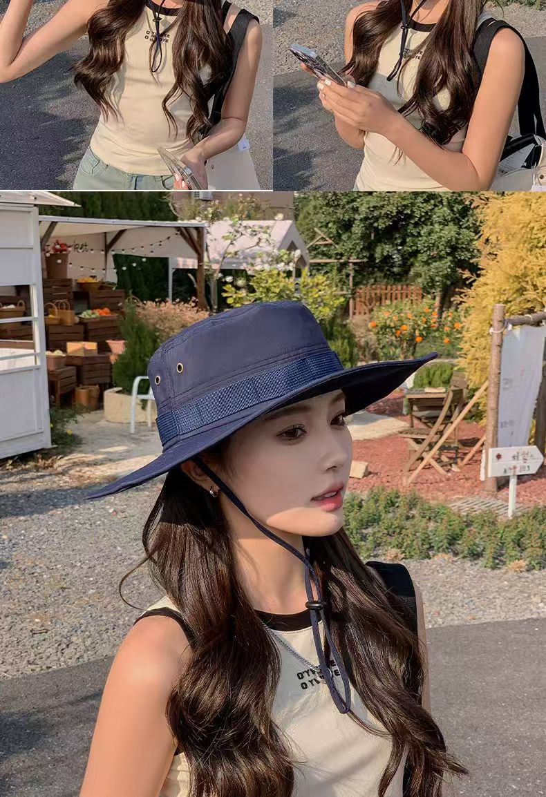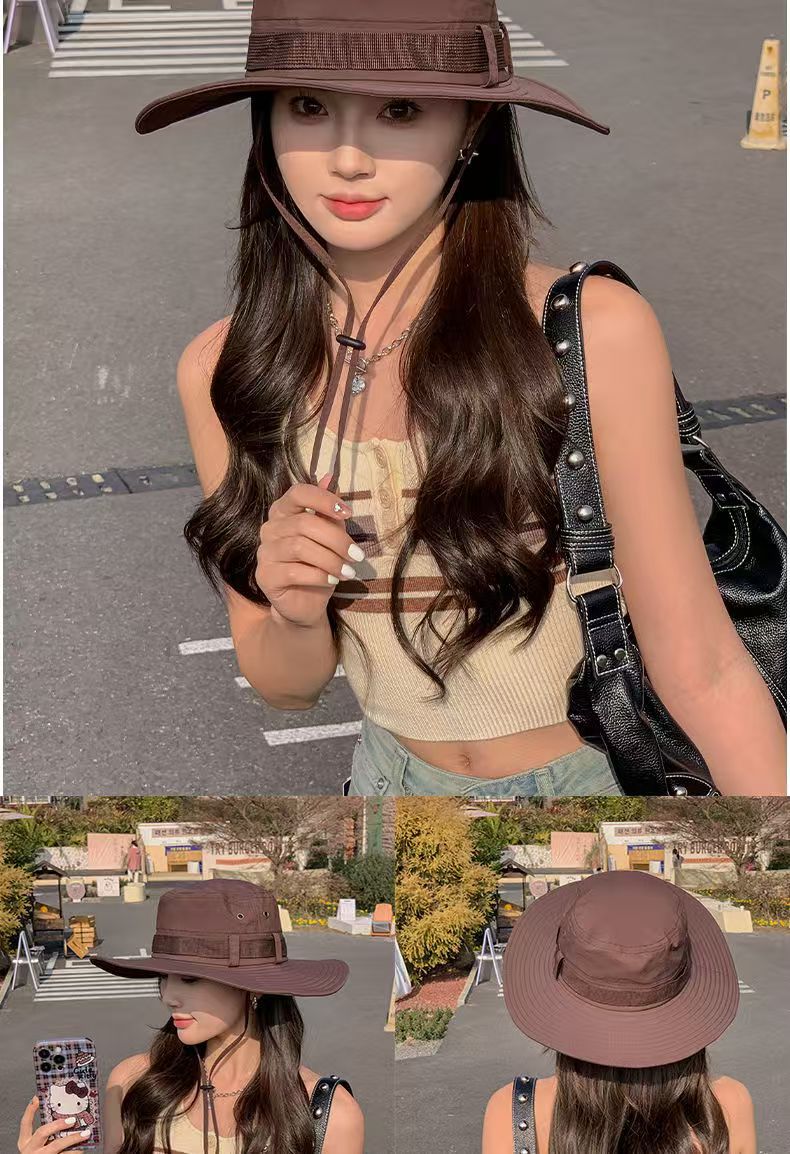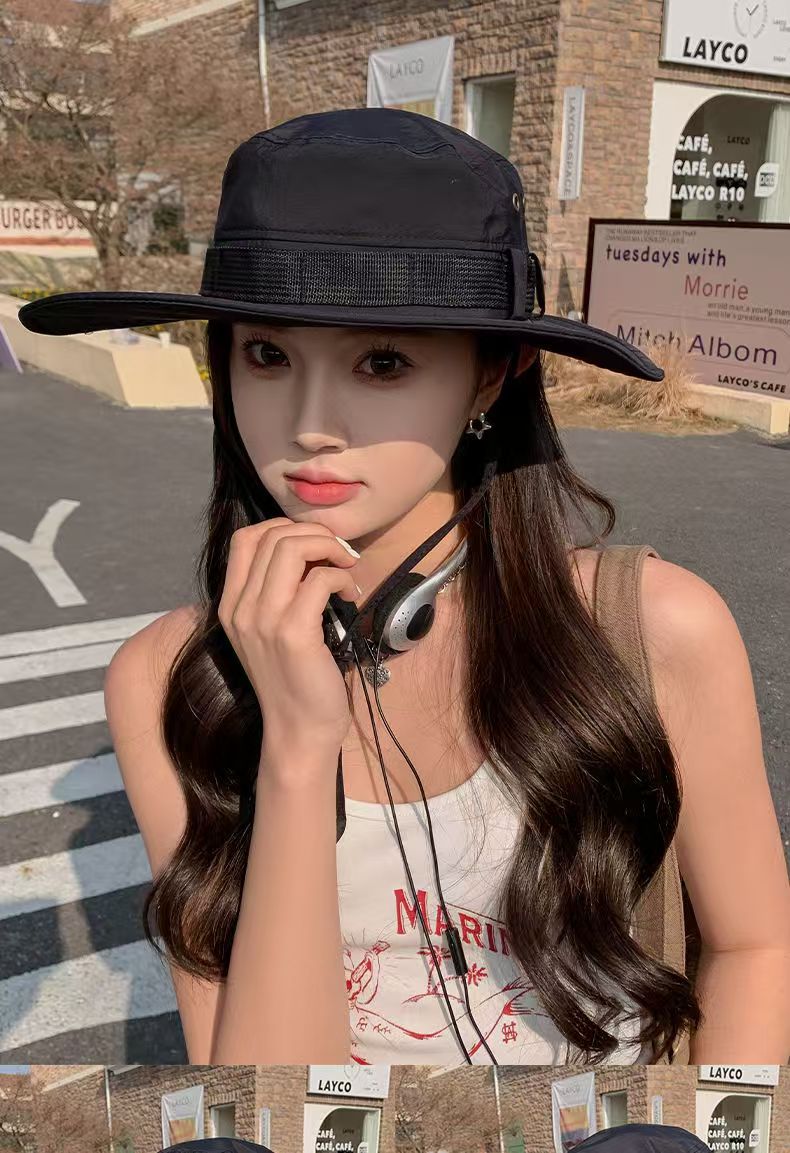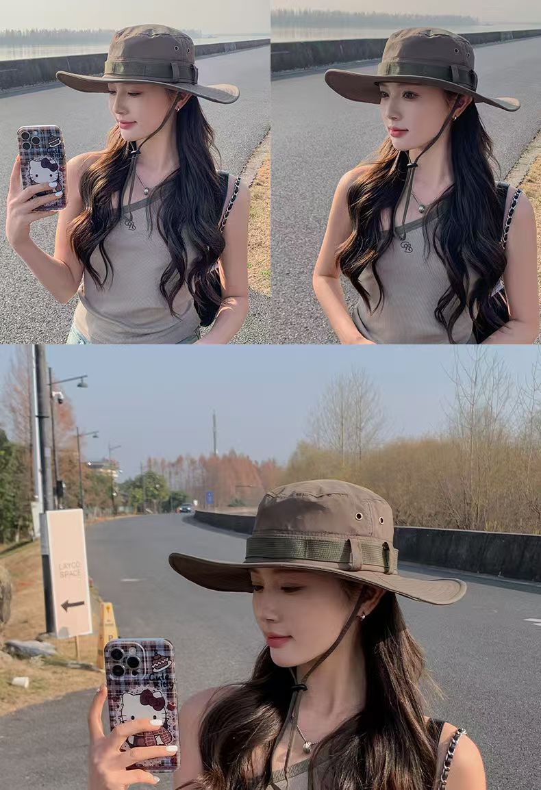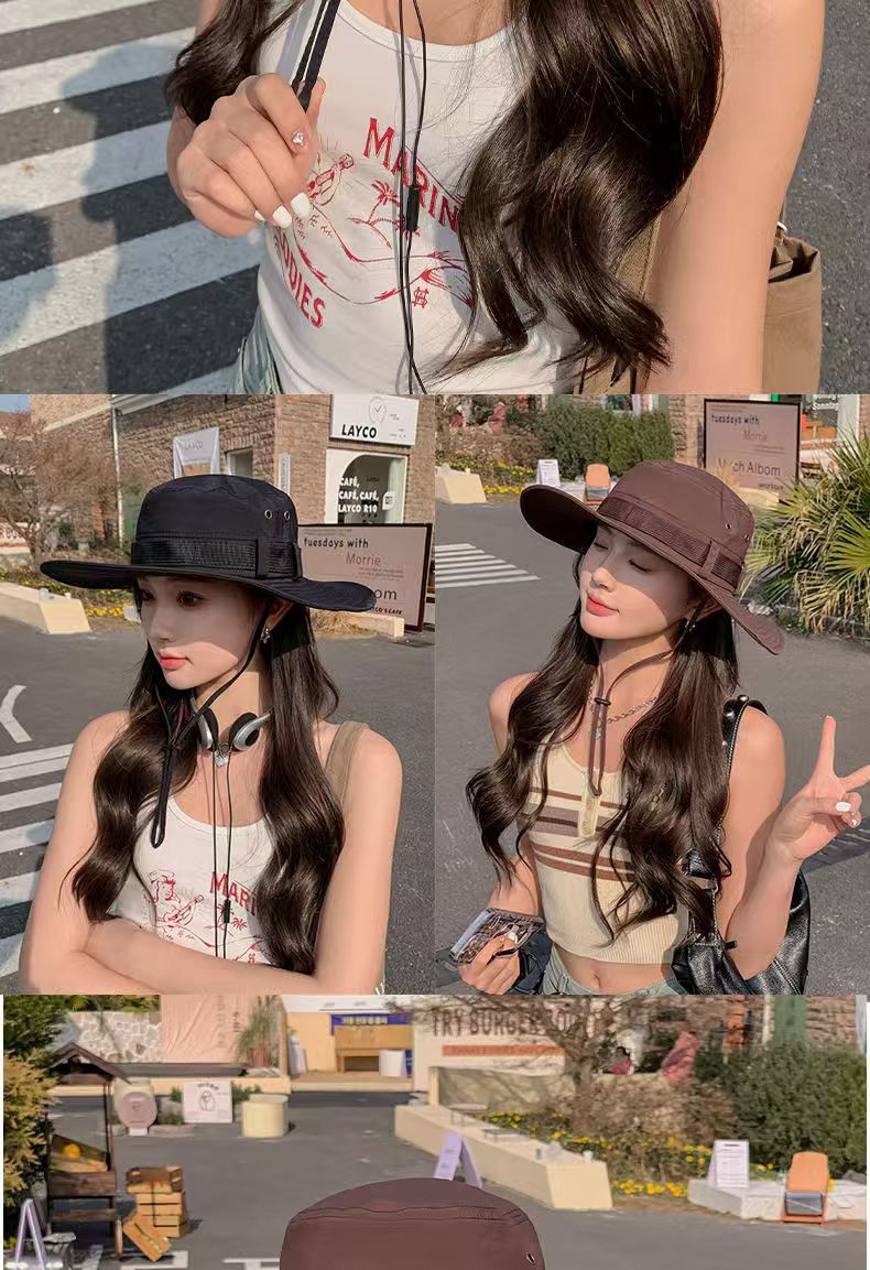 등산 모자 남성과 여성의 여름 빅 브림 일본 어부 모자 야외 태양 보호 태양 모자 웨스턴 카우보이 모자 접이식스토어 가기