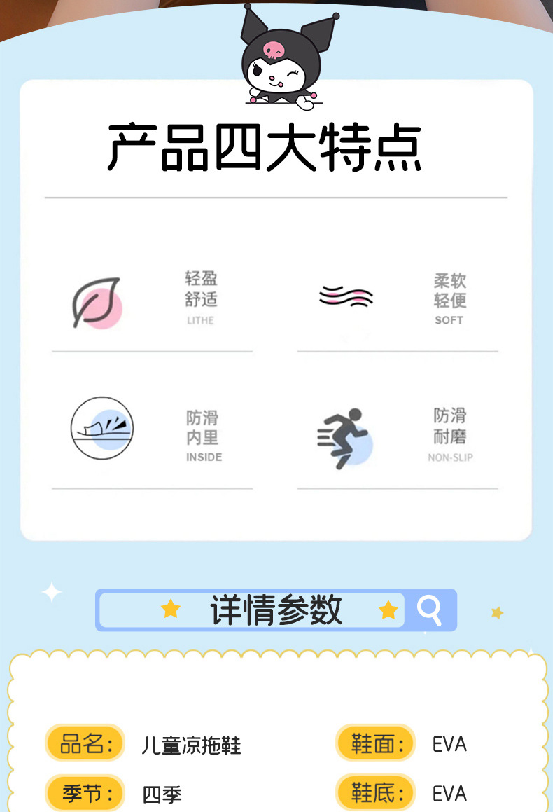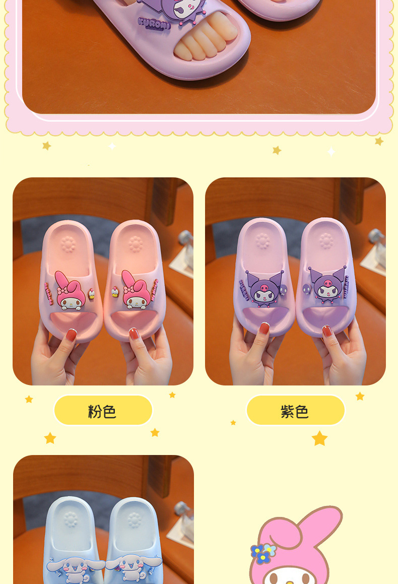 산리오 프린세스 스타일 소녀 어린이 슬리퍼 걸스 울트라 라이트 비 슬립 쿠로미간 샌들 가정 및 여름