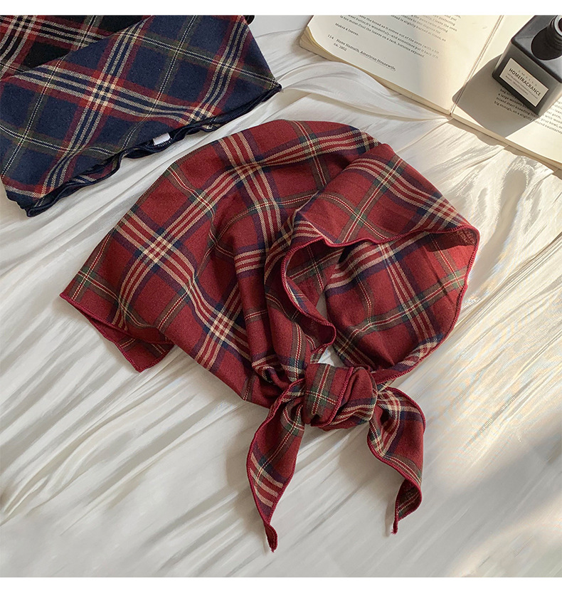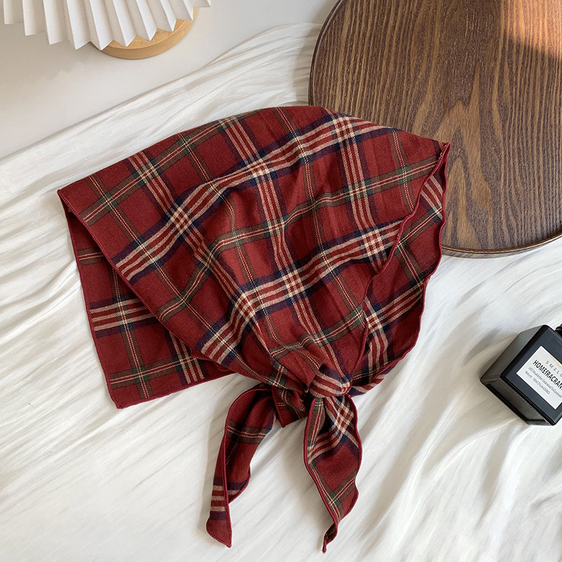 삼각형 목 허리 밴드 새로운 올 매치 레트로 목 보호 목 스카프 다기능 머리띠 여성의 목가적 스타일 격자 무늬 벨트 액세서리스토어 가기
