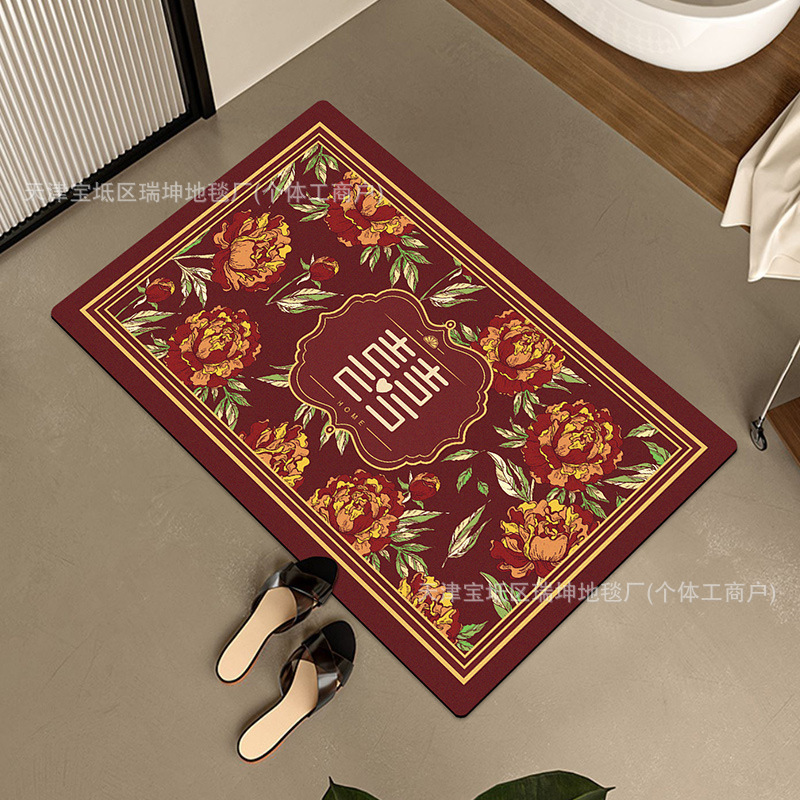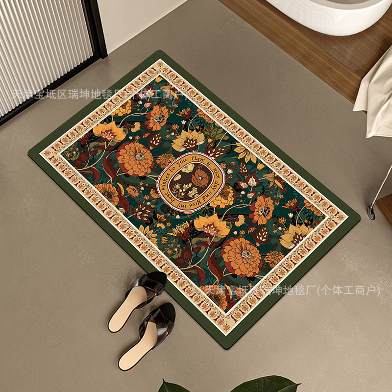가벼운 고급 꽃 diatom 진흙 매트 물 흡수 미끄럼 방지 욕실 도어 매트 공장 세대 도매 소녀 바람 문 매트스토어 가기