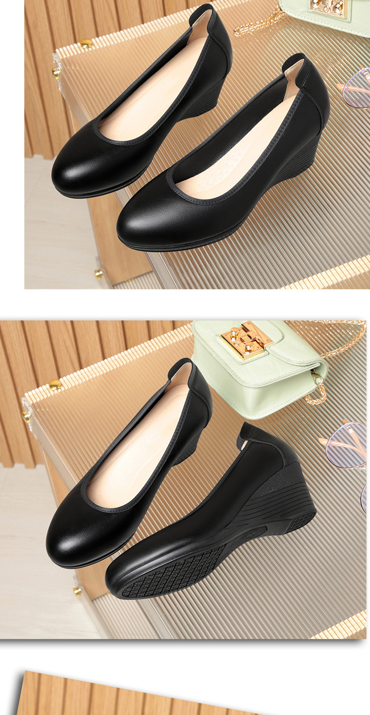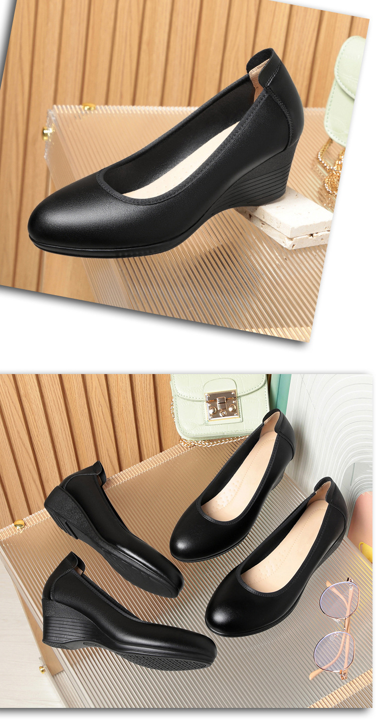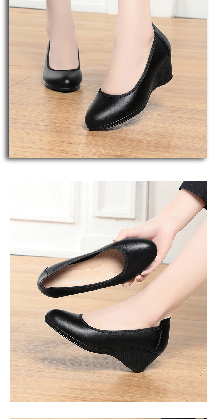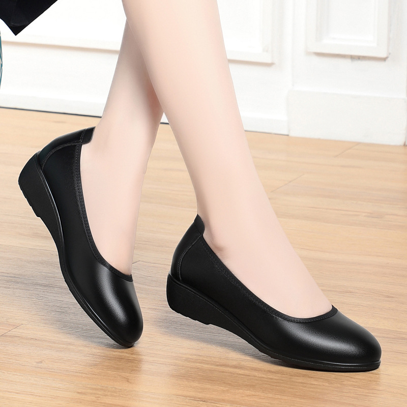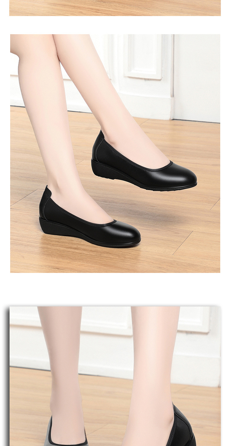 둥근 발가락 부드러운 가죽 부드러운 바닥 평면 전문 작업 신발 검은 원피스 신발 인터뷰 모든 경기 가죽 신발 싱글 레이어 신발 여성 신발스토어 가기