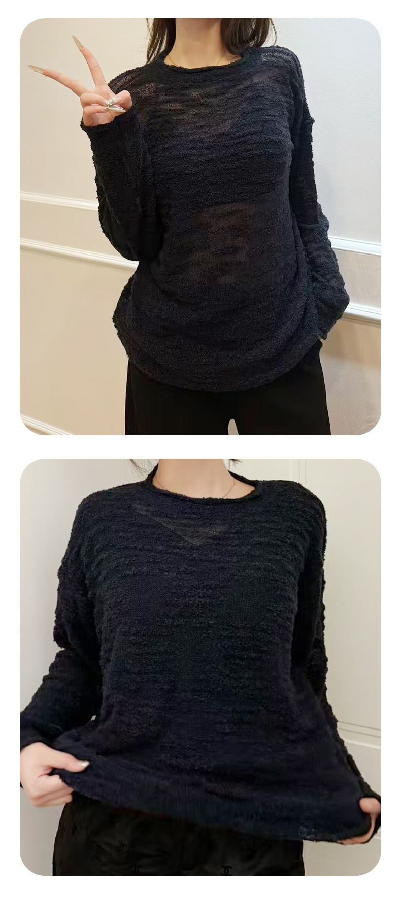 새로운 크로스보더 펀칭 니트 스웨터, 자외선 차단 블라우스, 여성 니트 스웨터, 레이지 스타일 얇은 베이스 레이어, 여성용 상의스토어 가기
