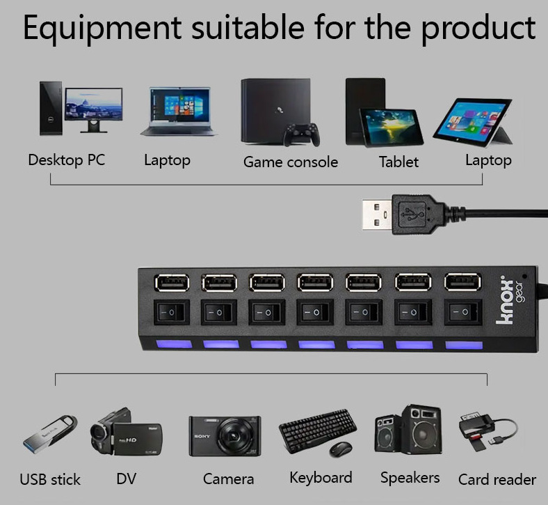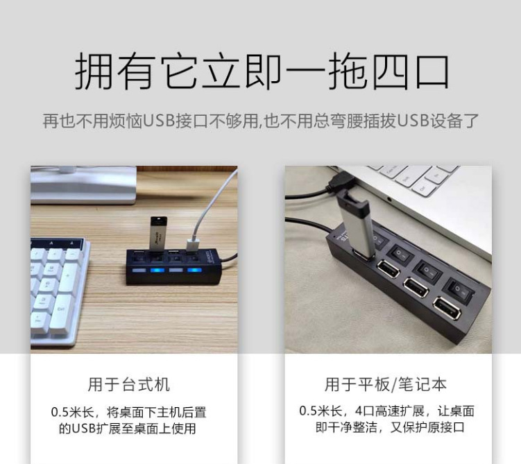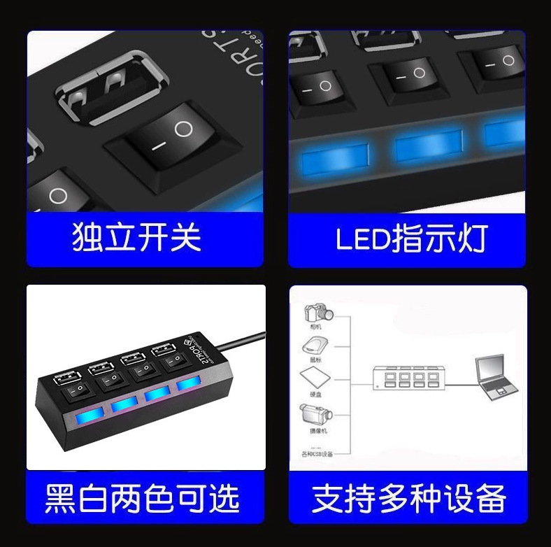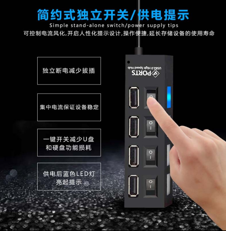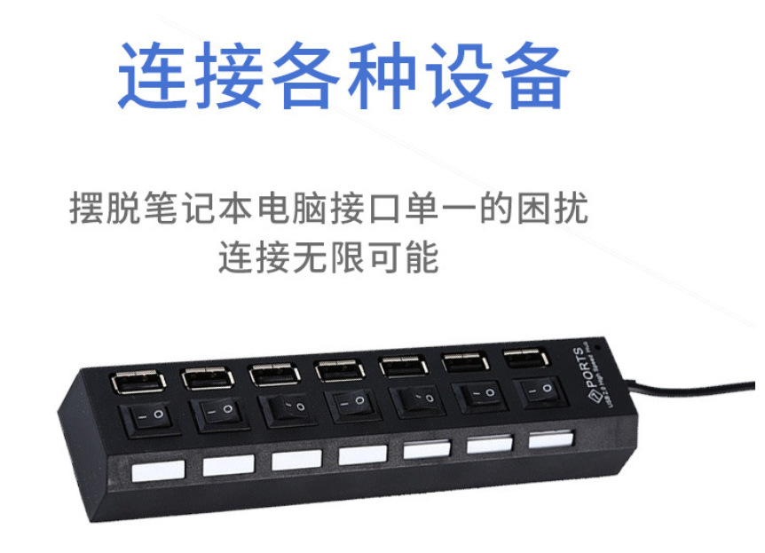 공장 직판 독립형 스위치 포함 7포트 확장 도크 4포트 가정용 HUB USB2.0 1대4 분배기 컴퓨터용스토어 가기