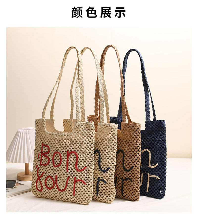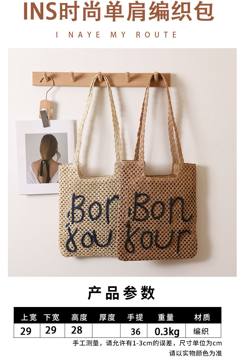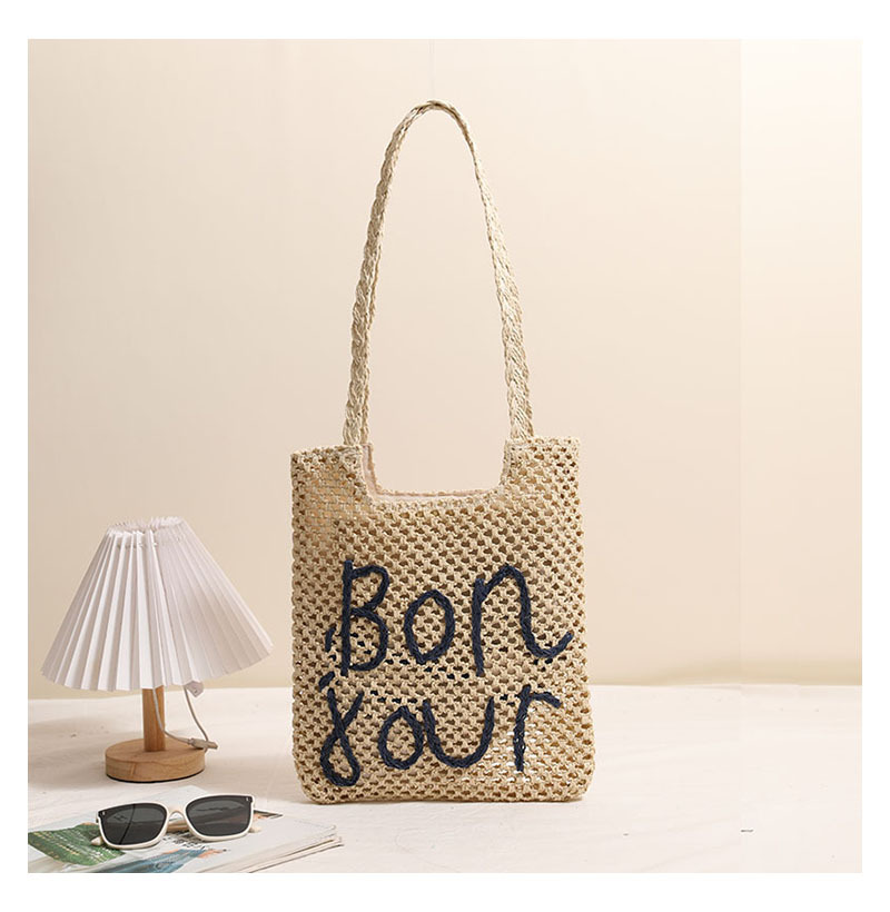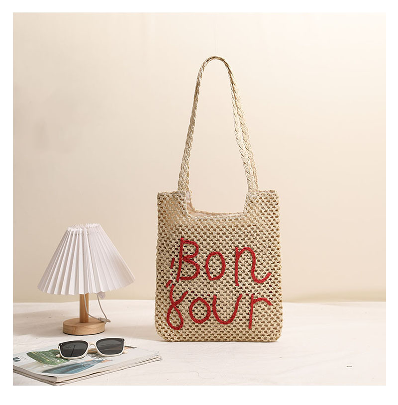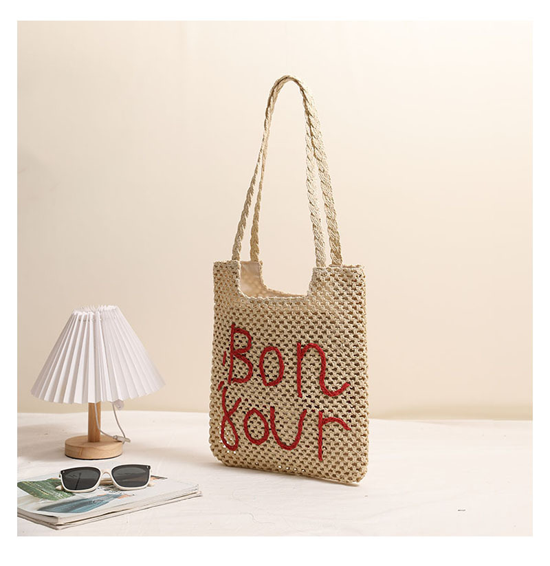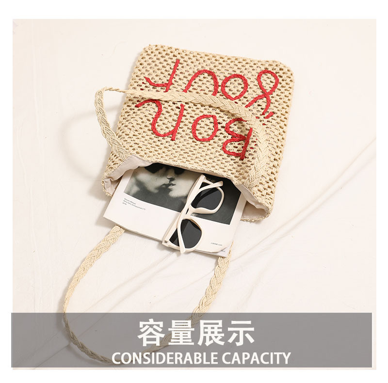 패션 편지 수 놓은 어깨 밀짚 짠 가방 새로운 중공 밀짚 가방 짠 가방 홀리데이 스타일 비치 백 올 매치 여성용 가방
