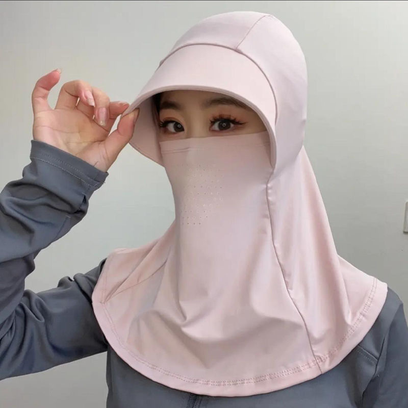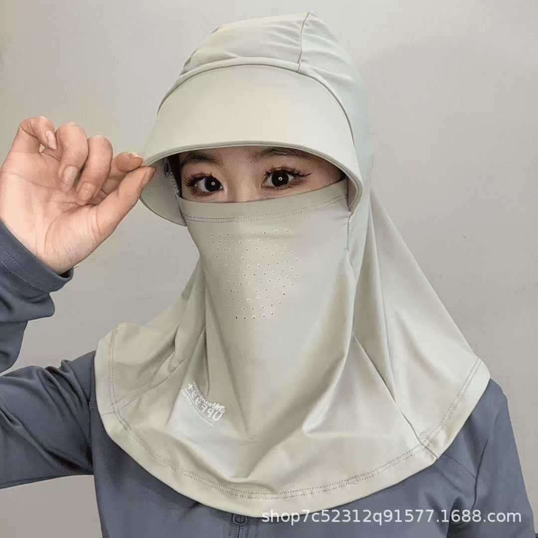 전체 얼굴 차양 모자 어린이 여름 선 스크린 모자 UV 보호 야외 승마 아이스 실크 마스크 통합 목 보호