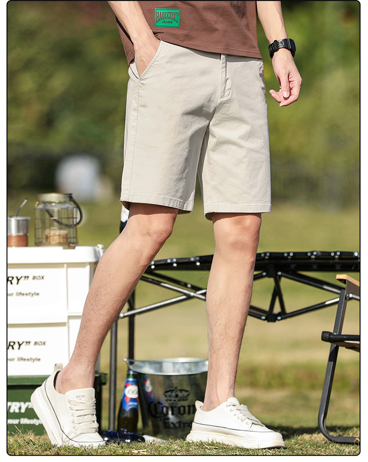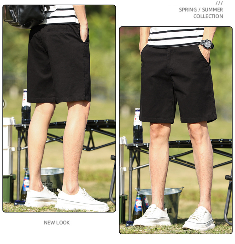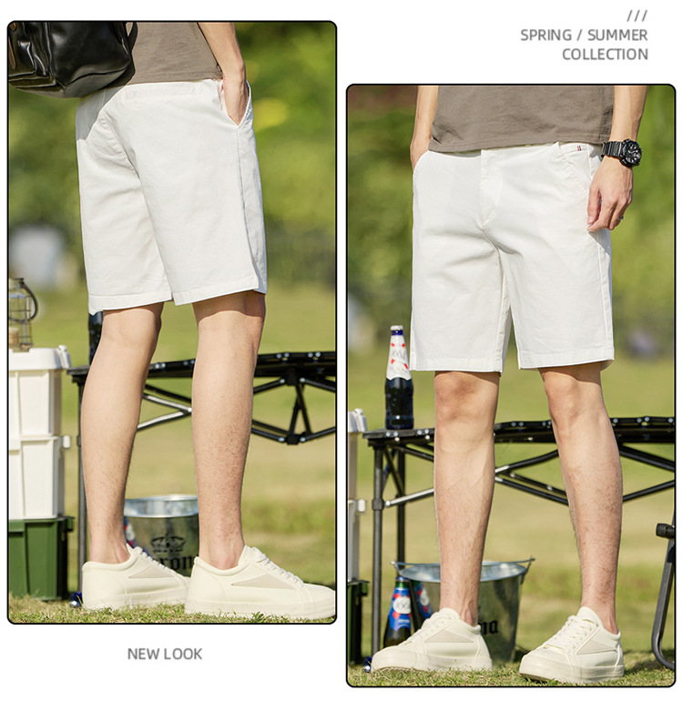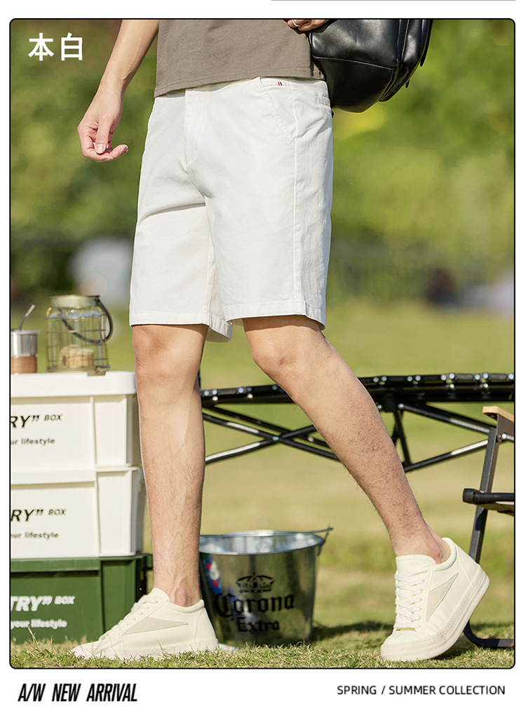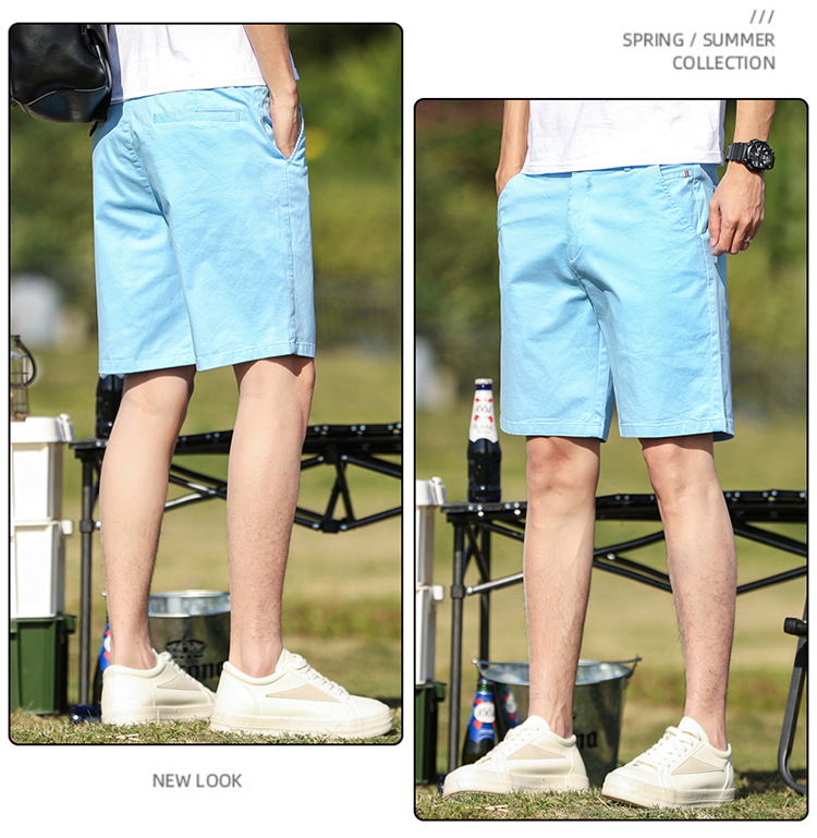 남성 캐주얼 반바지 순면 5부 바지 남성 여름 얇은 중간 길이 바지 스트레이트 타입 신축성 있는 허리밴드 반바지 남성 여름용스토어 가기