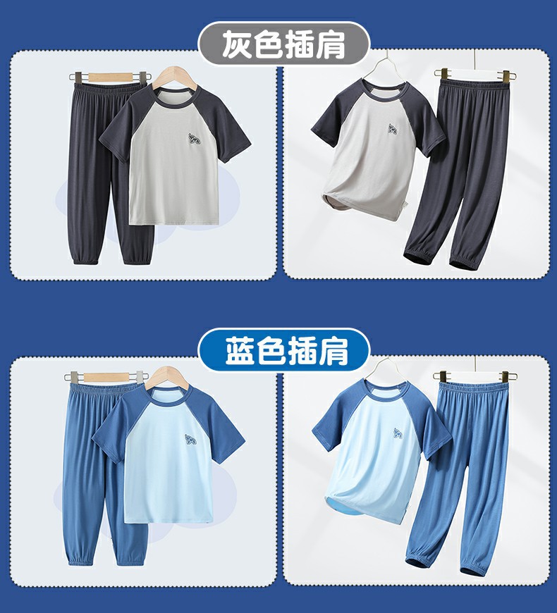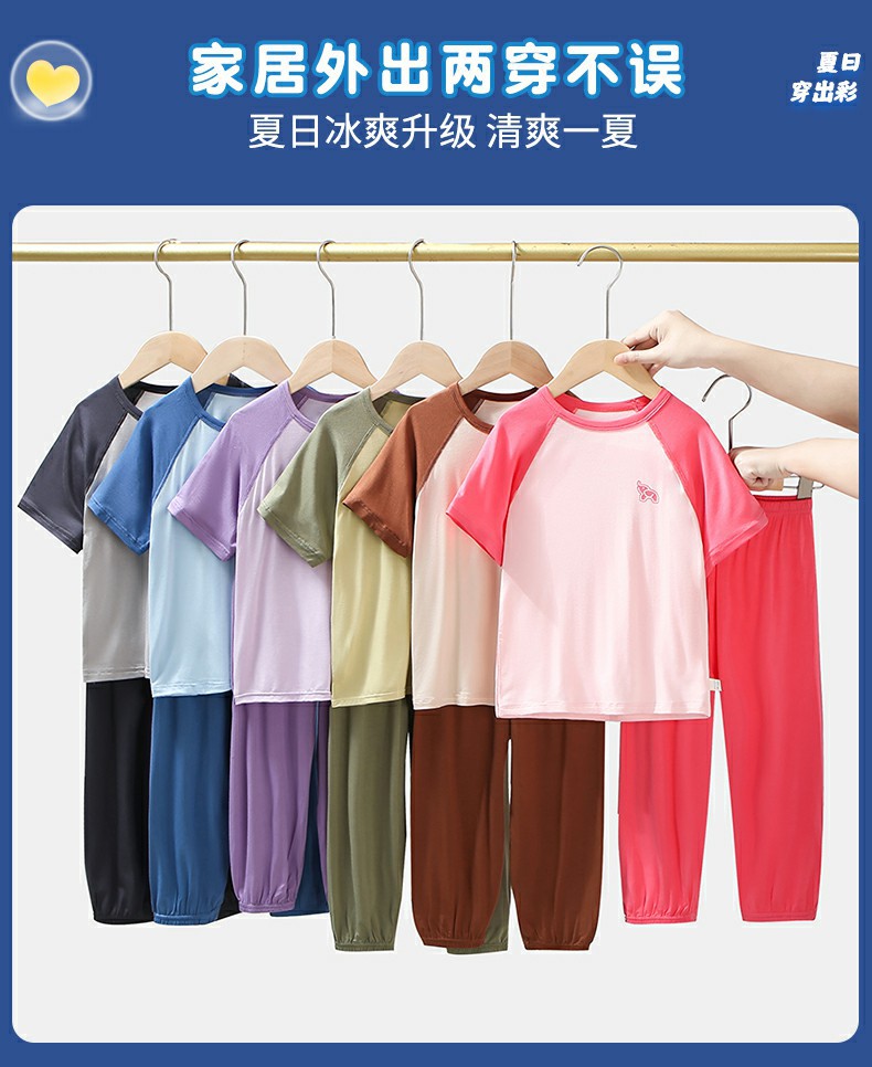 어린이 잠옷 여름 소년 반팔 바지 차가운 여아 홈 옷 부모-자식 세트 소년 에어컨 옷 여름