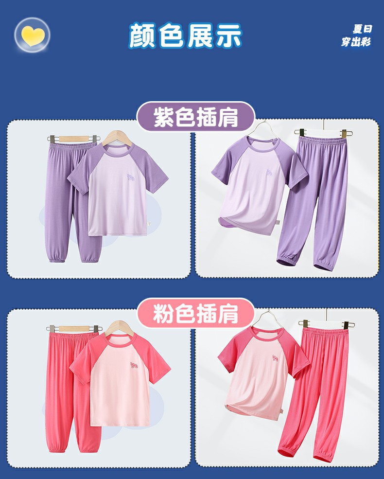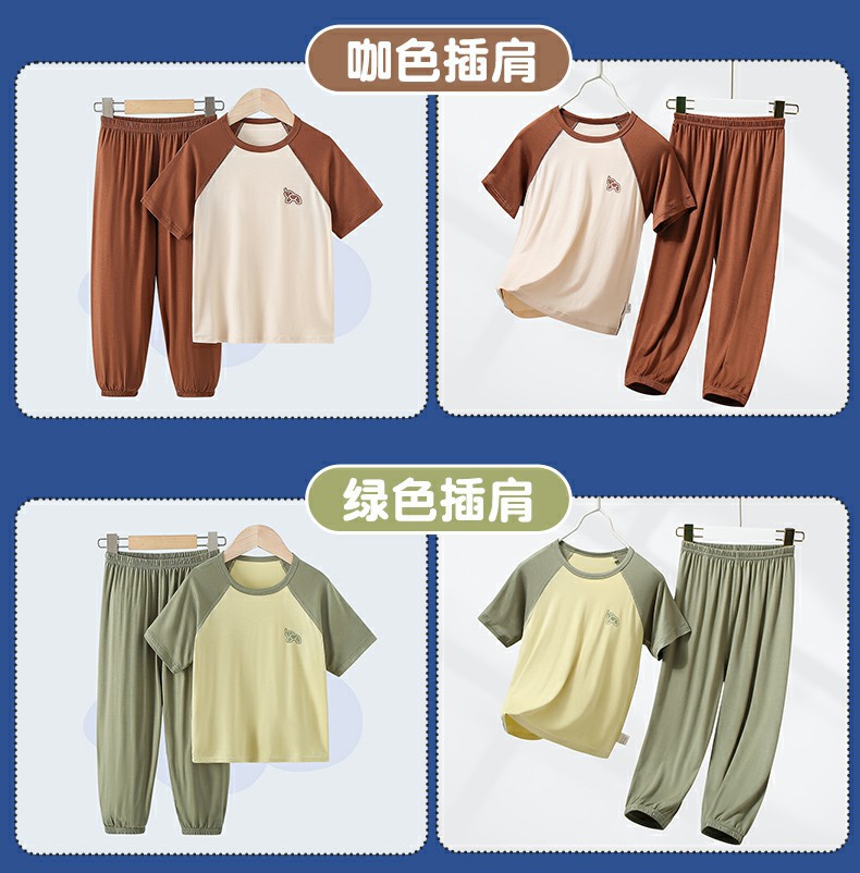 어린이 잠옷 여름 소년 반팔 바지 차가운 여아 홈 옷 부모-자식 세트 소년 에어컨 옷 여름스토어 가기