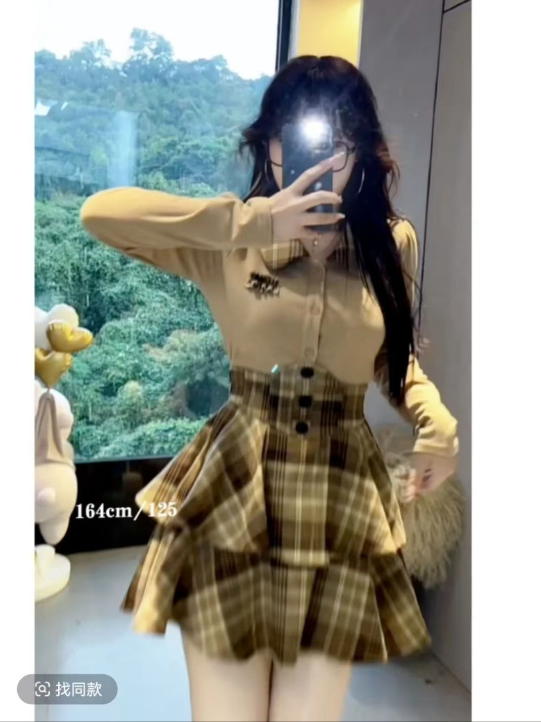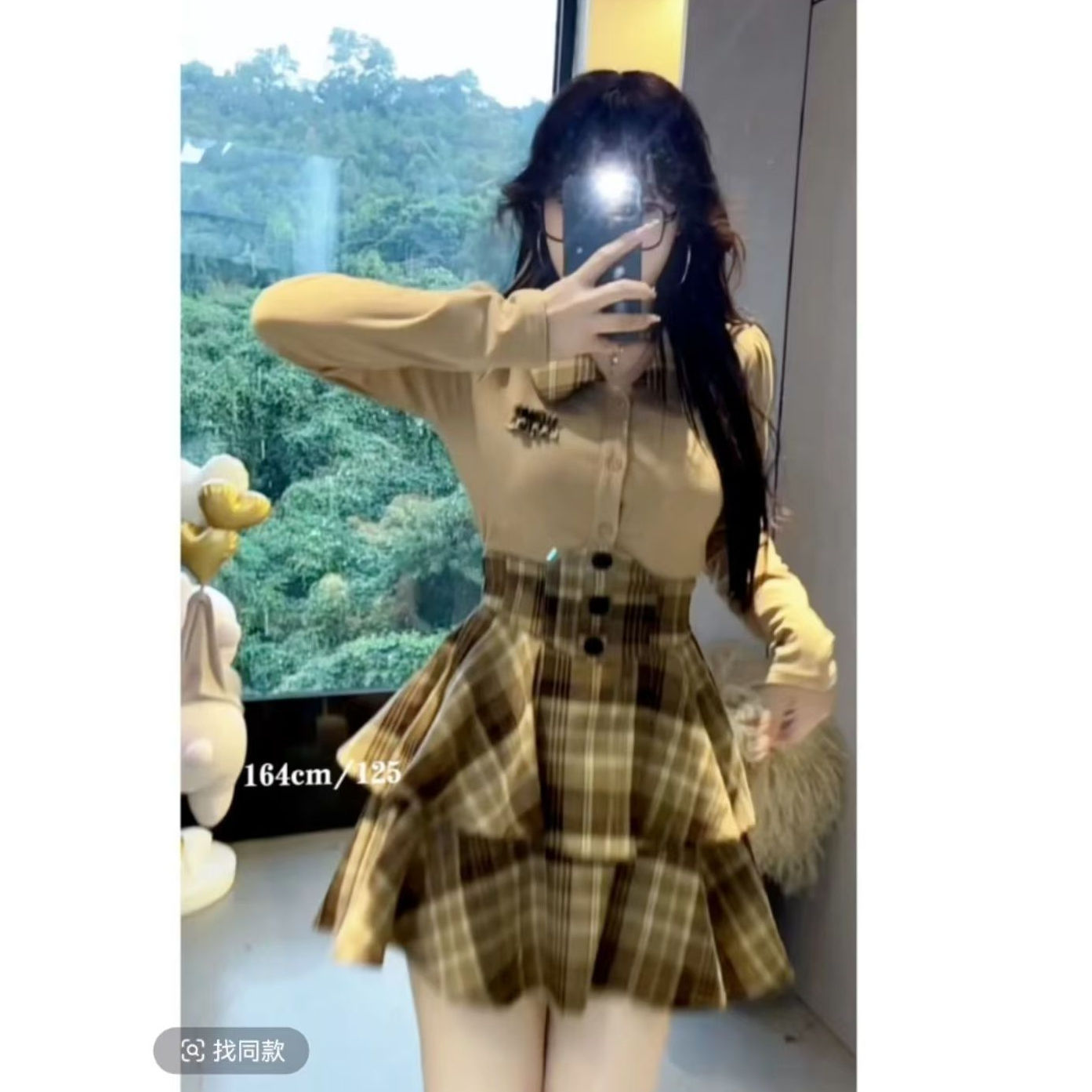 플러스 사이즈 통통녀 순수한 욕망 Jk 유니폼 세트 여성의 가을 및 겨울 타이트 허리 푹신한 짧은 스커트 슬림 셔츠 탑 2 피스 세트스토어 가기