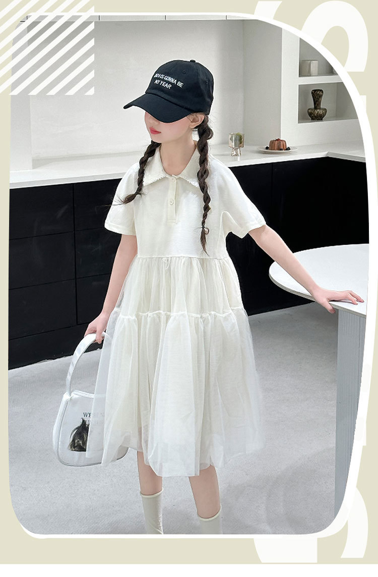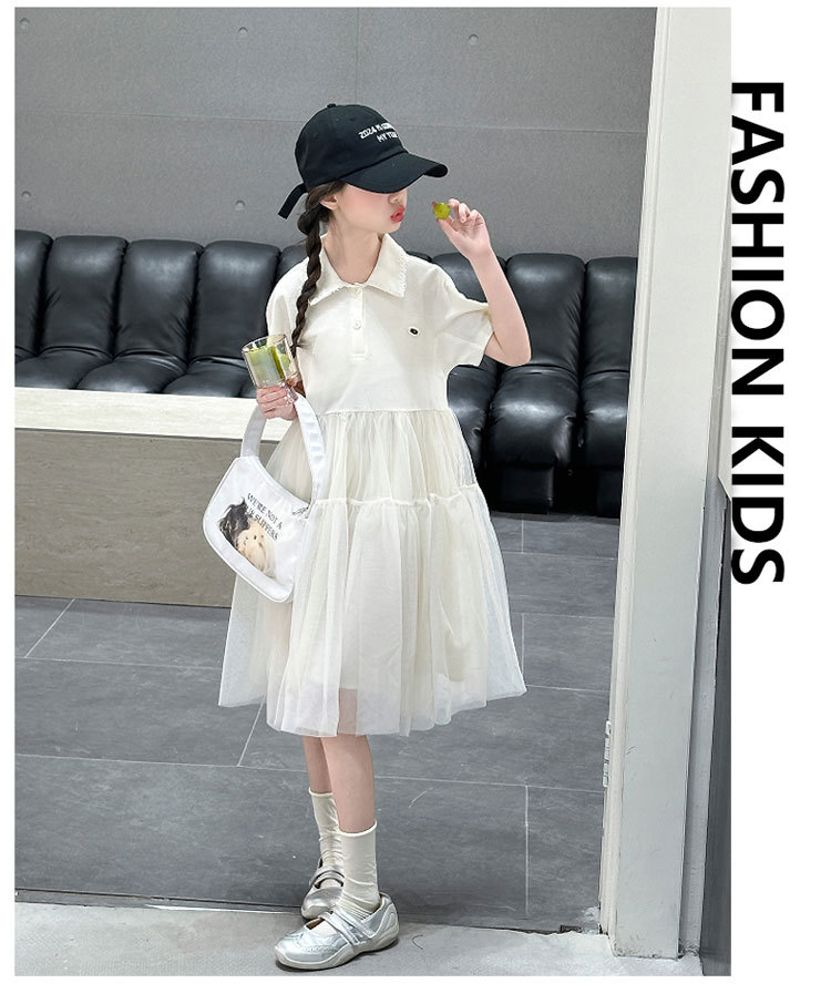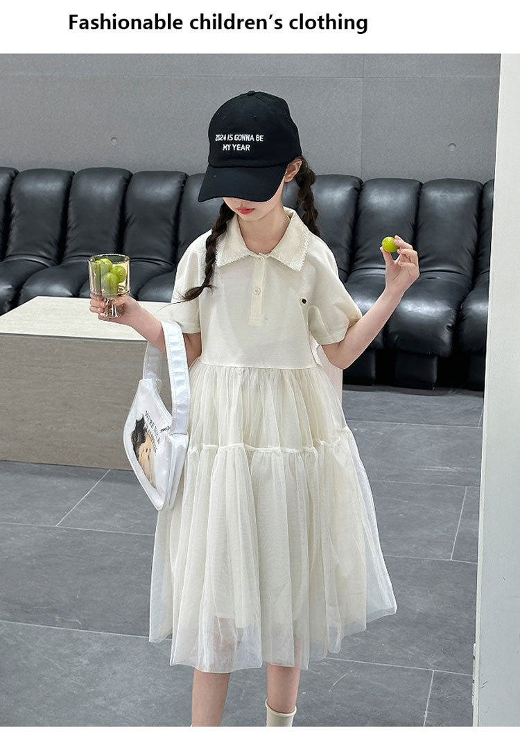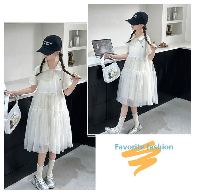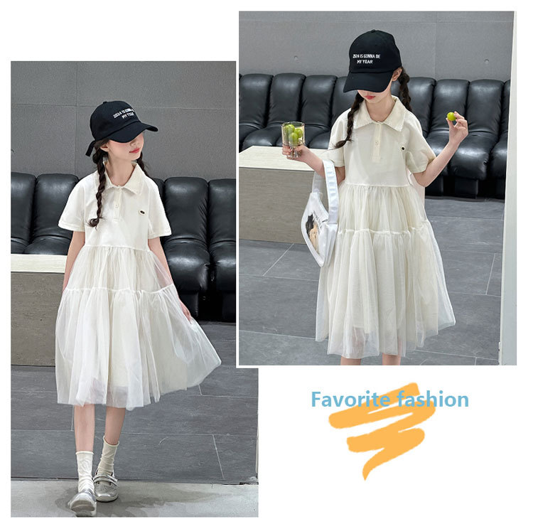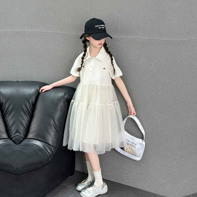 여자 폴로 원피스 2025 여름 새로운 어린이 한국 스타일 서양식 메쉬 바느질 공주 스커트 어린이 치마스토어 가기
