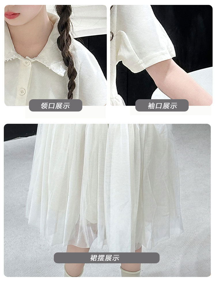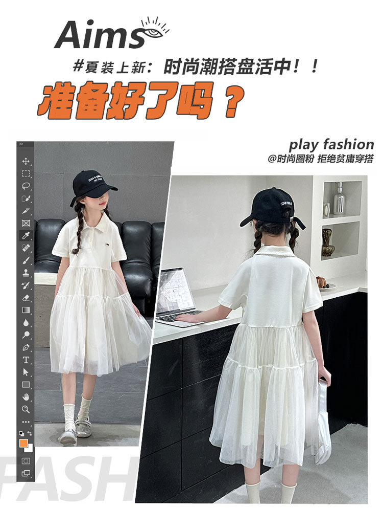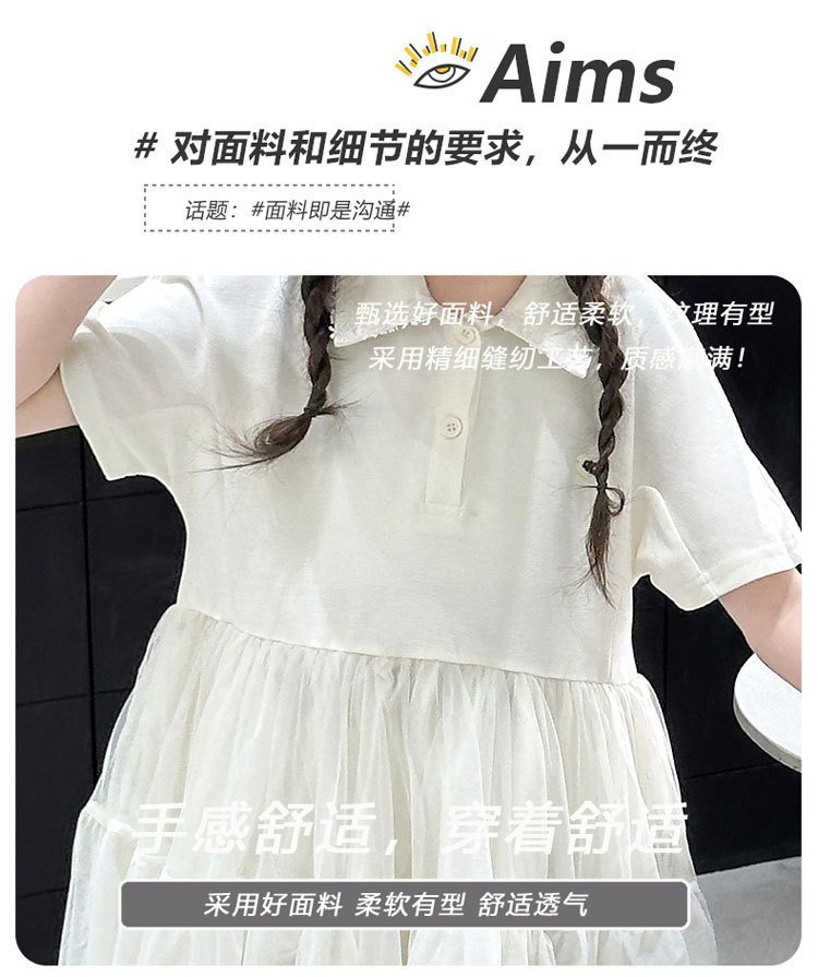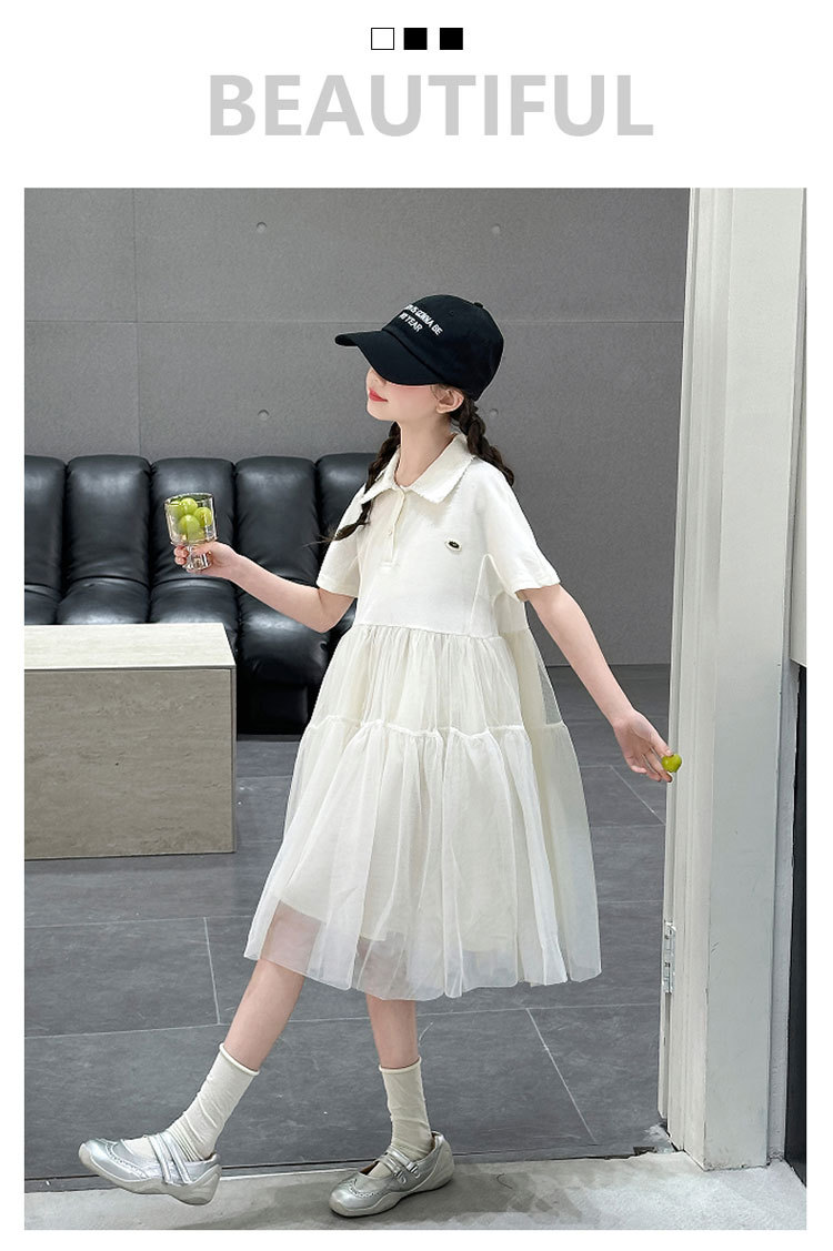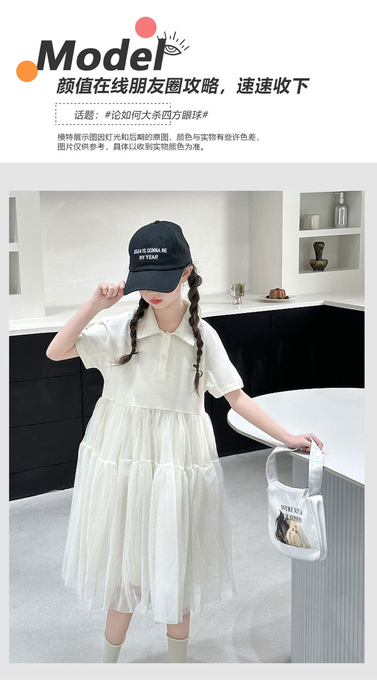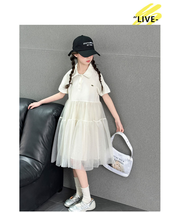 여자 폴로 원피스 2025 여름 새로운 어린이 한국 스타일 서양식 메쉬 바느질 공주 스커트 어린이 치마스토어 가기