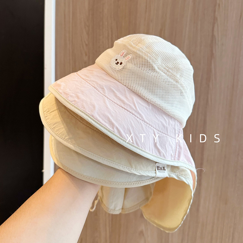 아기 선스크린 모자 여름 큰 브림 목도리 아기 차양 모자 야외 풀 넷 베어 퀵 드라이 어린이 어부 모자