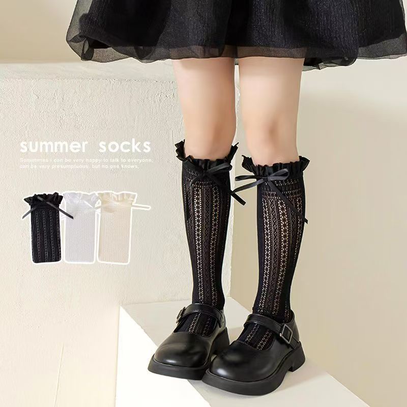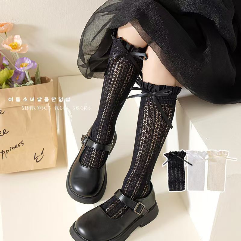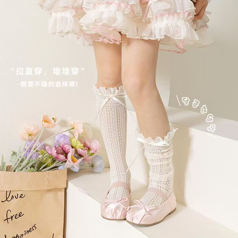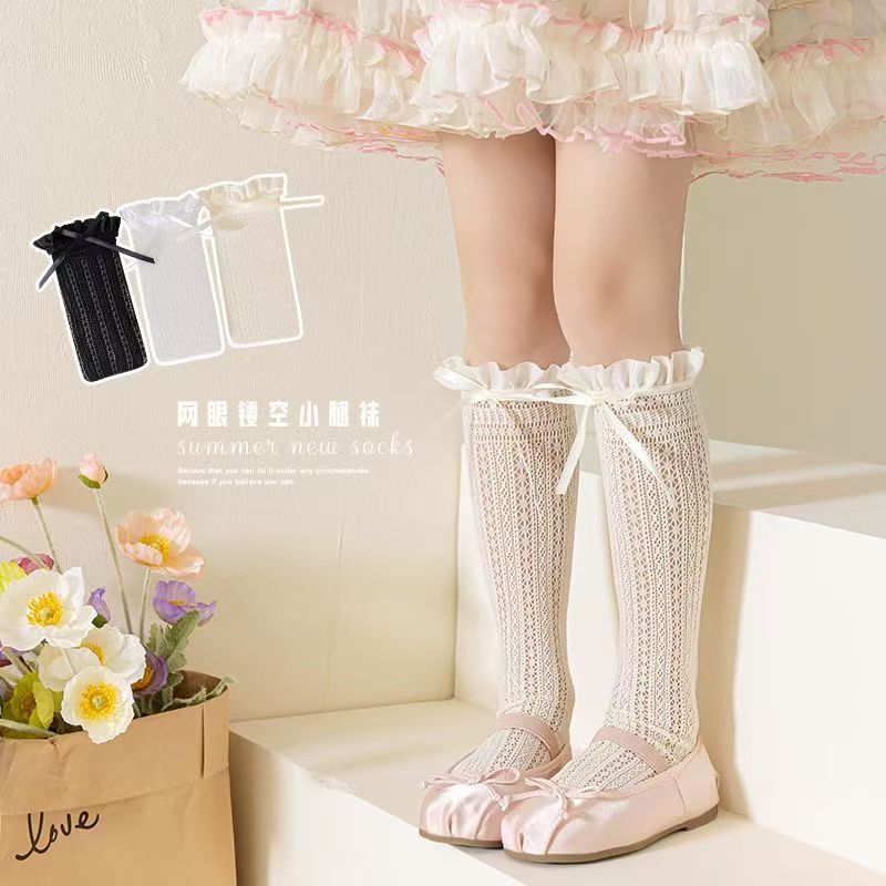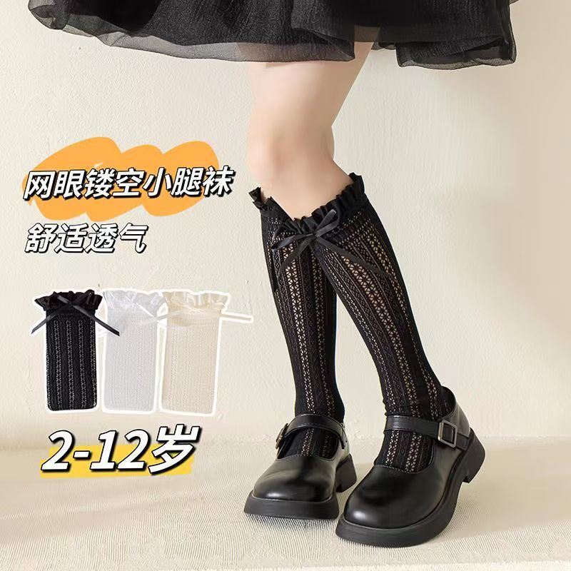 2025 봄과 여름 새로운 얇은 기하학적 중공 레이스 스타킹 짠 양말 메쉬 소녀 양말 어린이 양말 도매