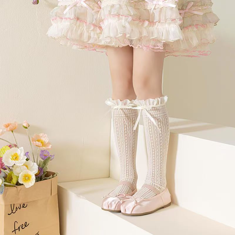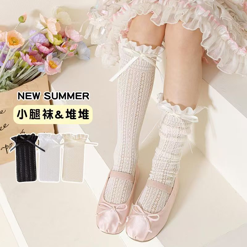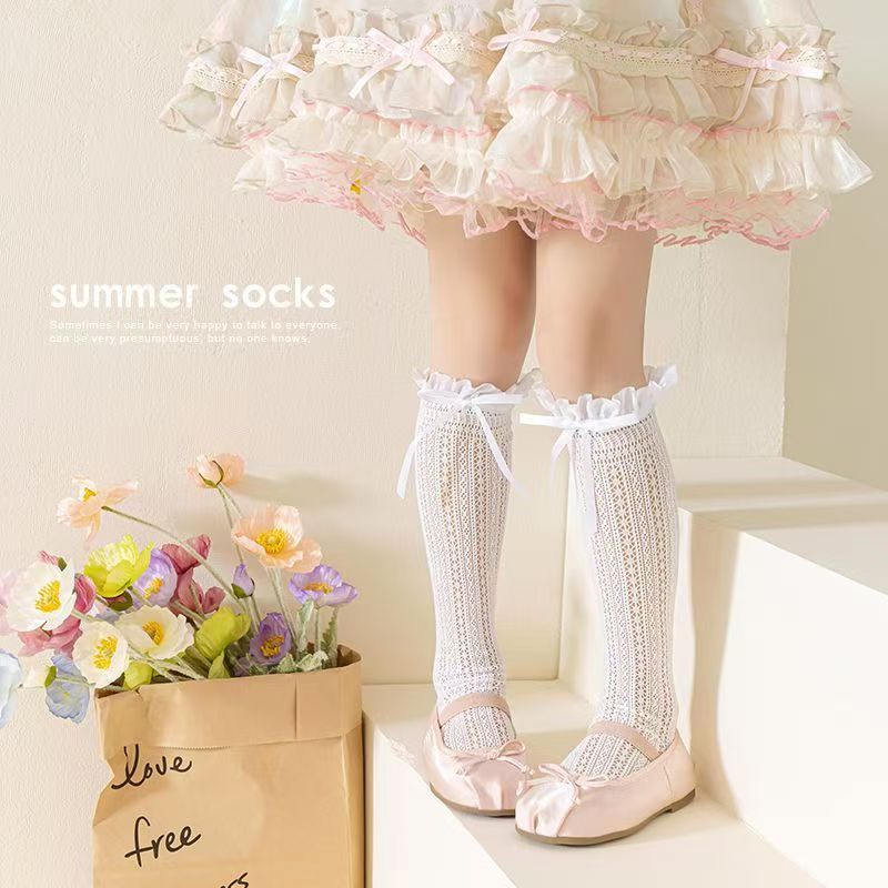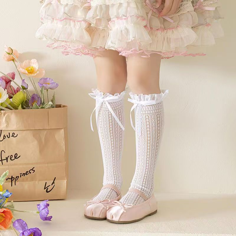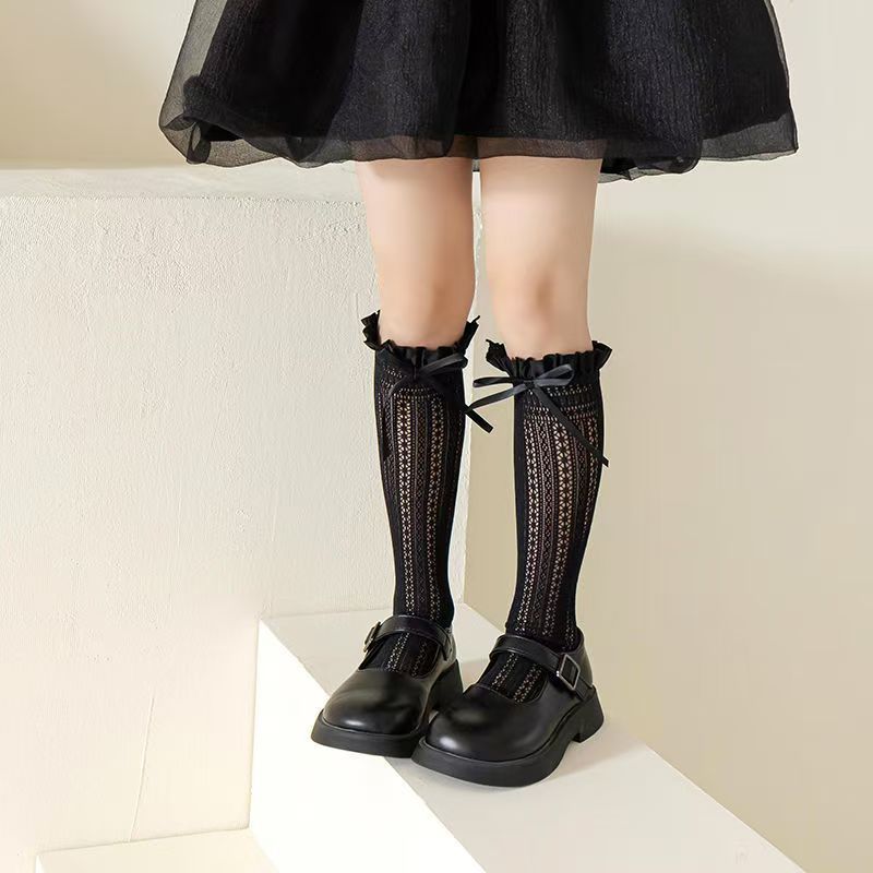 2025 봄과 여름 새로운 얇은 기하학적 중공 레이스 스타킹 짠 양말 메쉬 소녀 양말 어린이 양말 도매