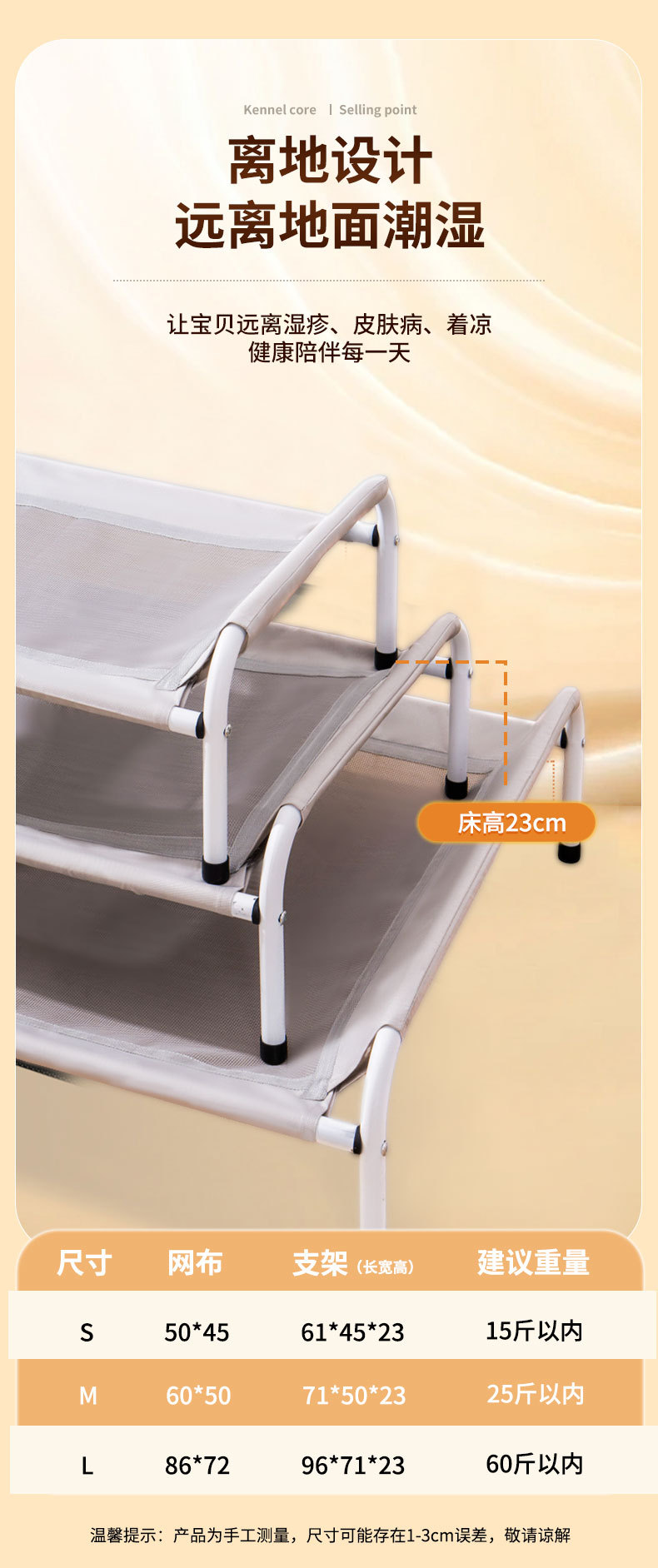 • 메쉬 표면이 별도로 장착된 중형 캠프 침대*1(폴 없음), M-(60*50cm) 15kg 이내 권장