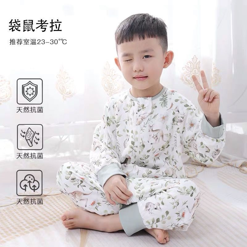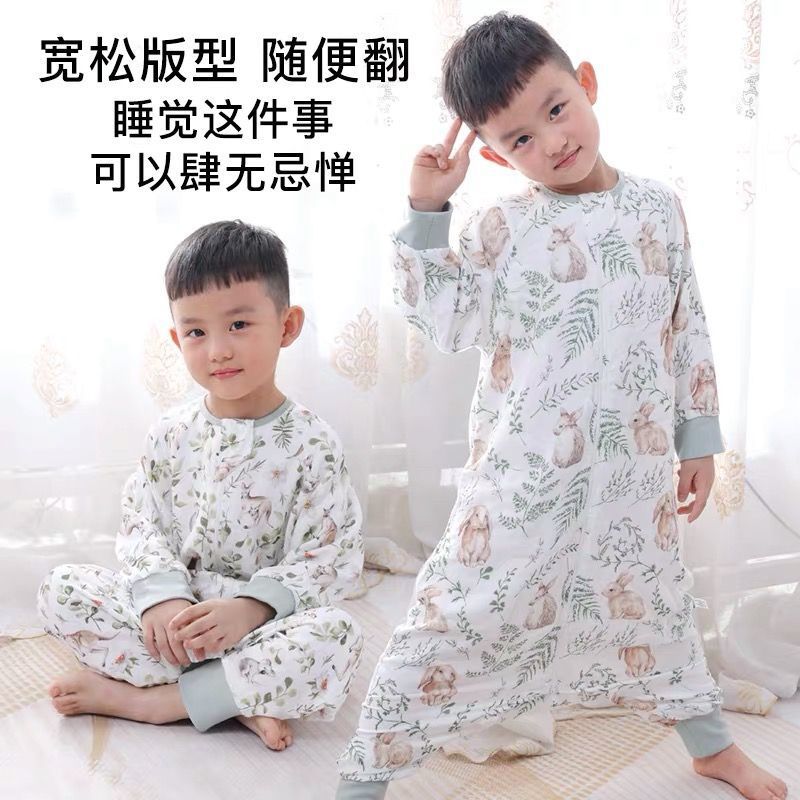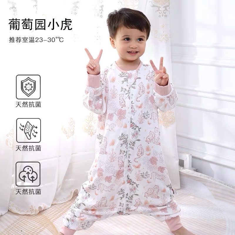 아기 침낭, 발차기 방지, 여름용 얇은 대나무 면 일체형 봄가을 에어컨 침낭, 감기 예방