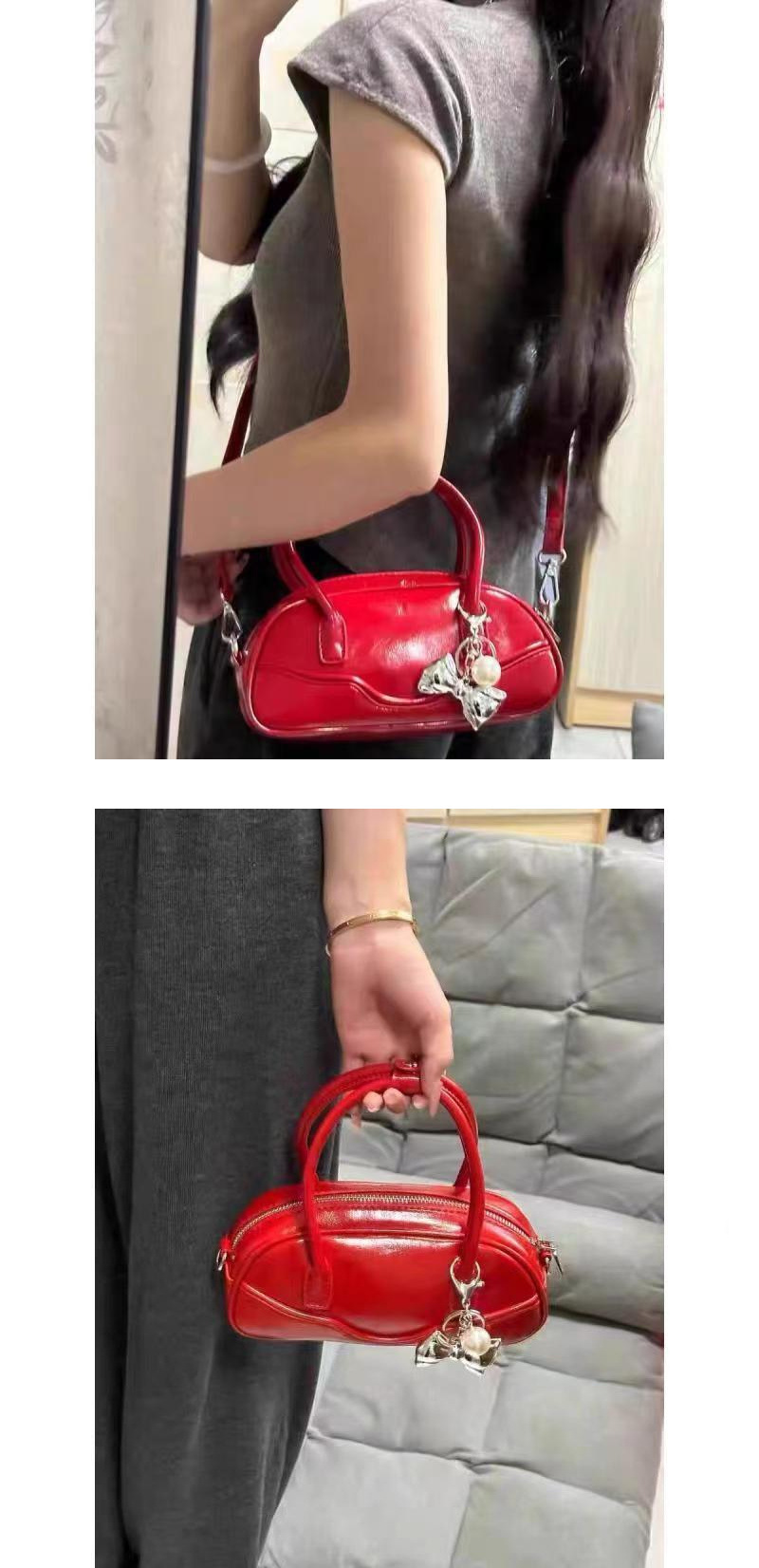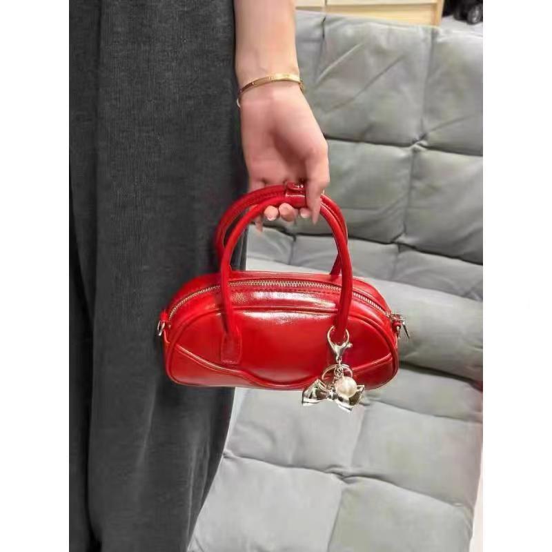 고급 질감 레트로 간단한 빨간색 휴대용 어깨 가방 2024 새로운 틈새 디자인 패션 통근 크로스 바디 백