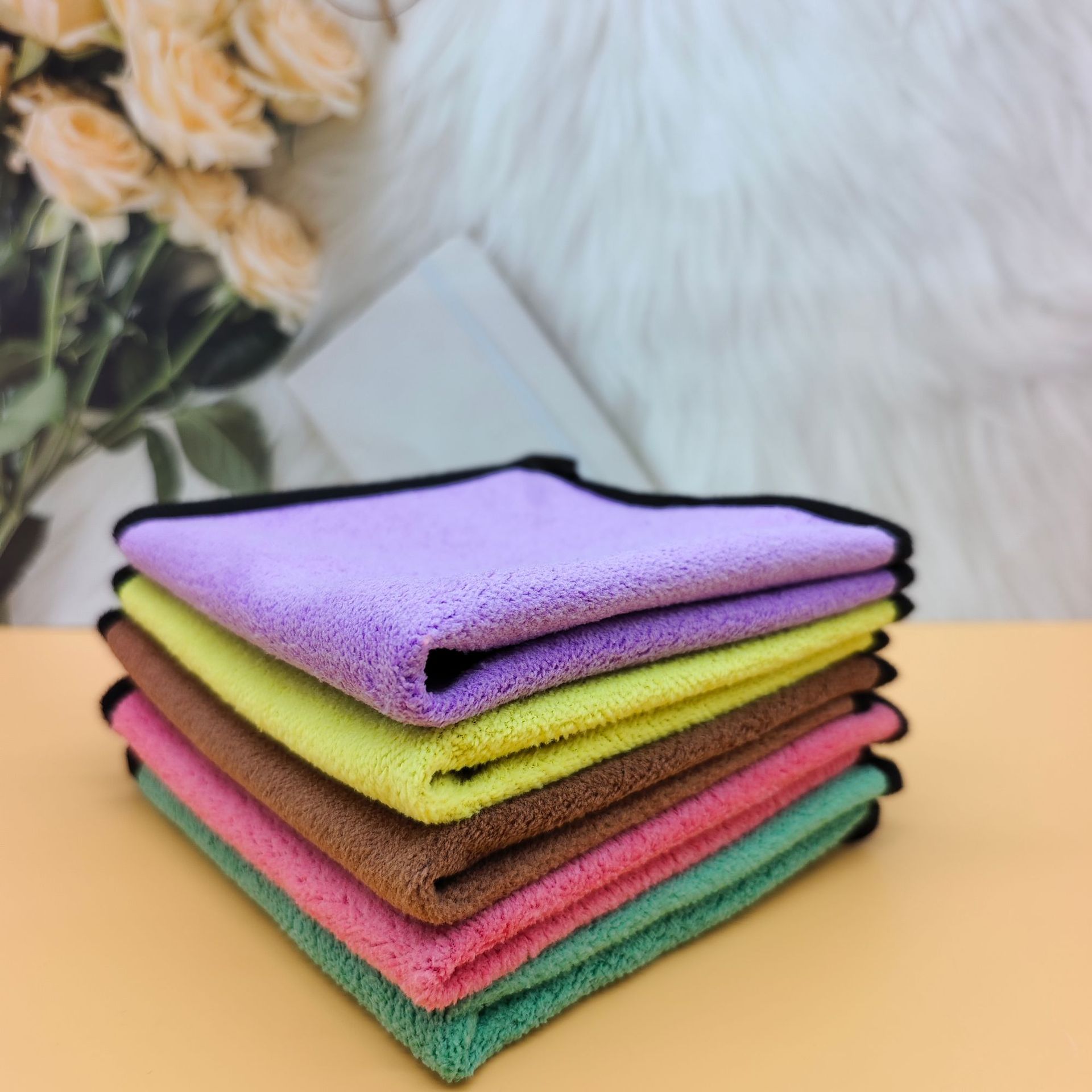 머리 2 색 흡수성 천 스토브 수건 식탁보 주방 산호 양털 2 층 청소 천 1 위안 2 위안 도매스토어 가기