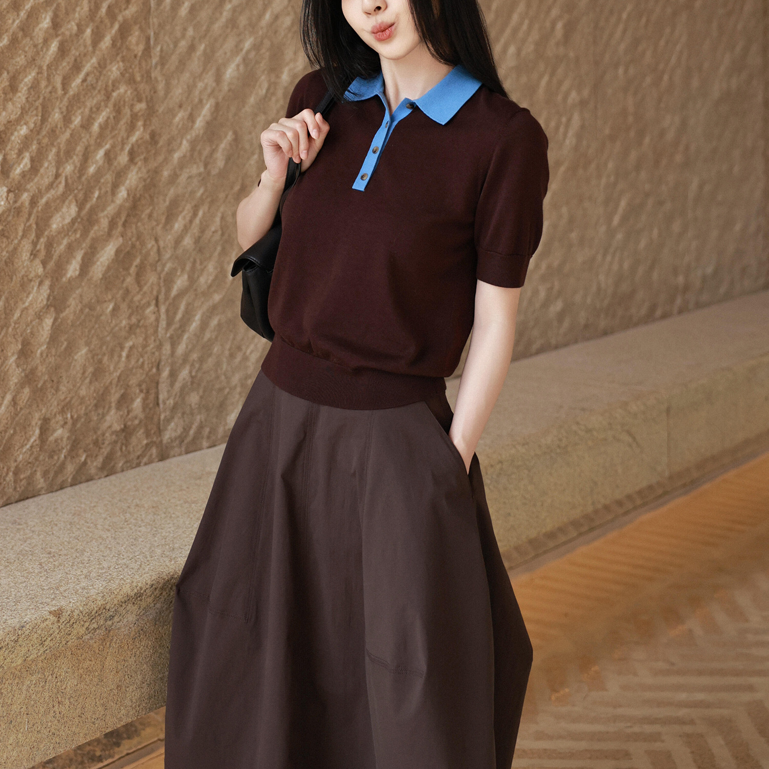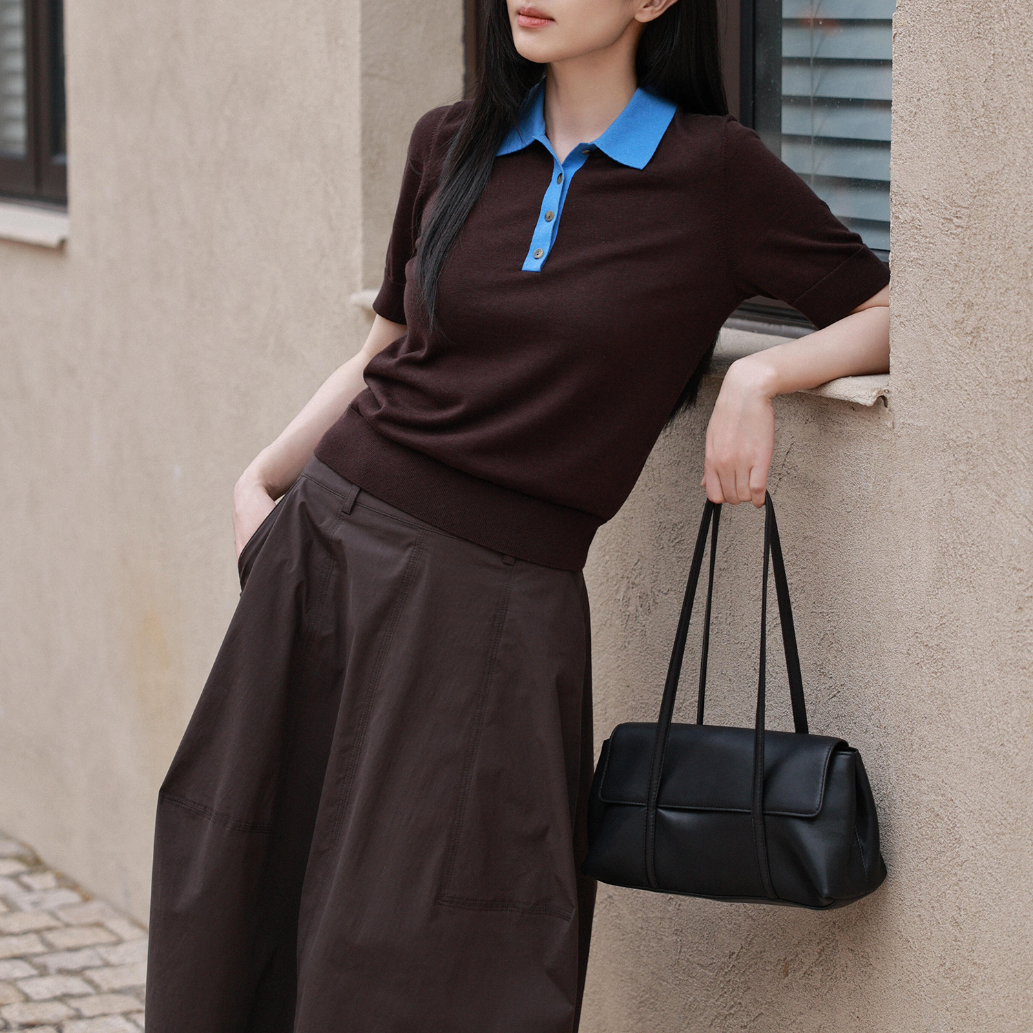 C 브랜드 슬림핏 울 혼방 폴로셔츠 브라운 블루 니트웨어 26 봄 신상품 1327184004스토어 가기