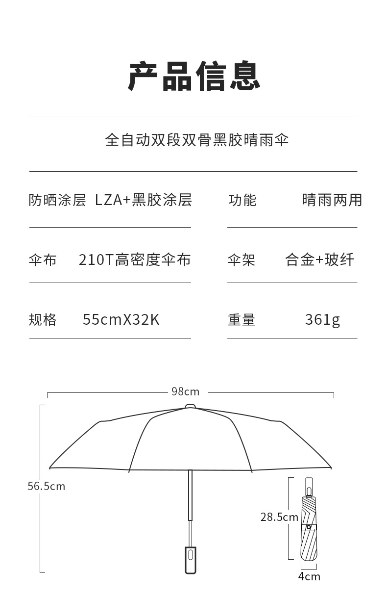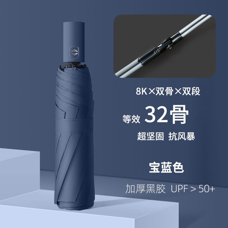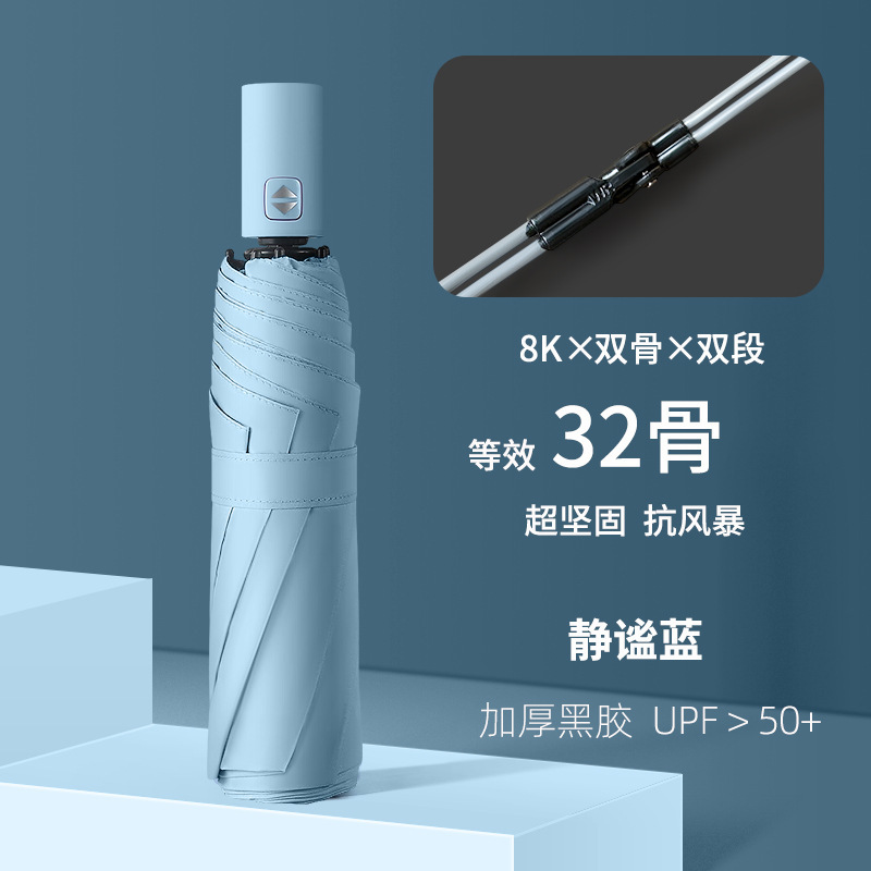 32 뼈 맑고 비 이중 목적 검은 고무 우산 자동 이중 목적 도매 접는 우산 고급 감각적 인 햇빛 선 스크린 여성의 대형 우산