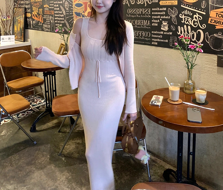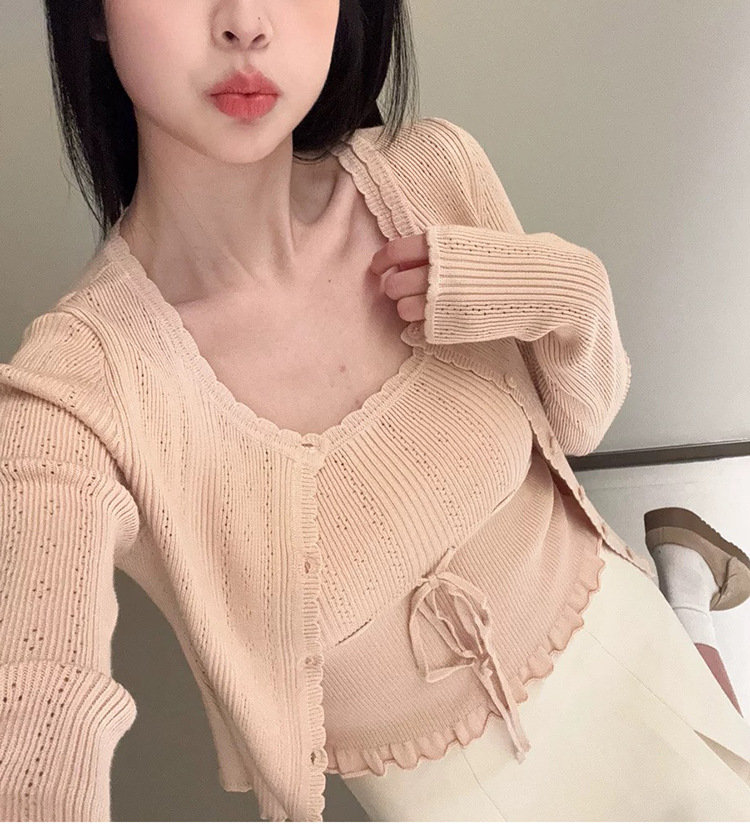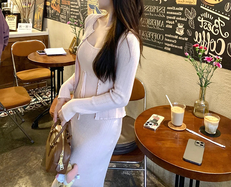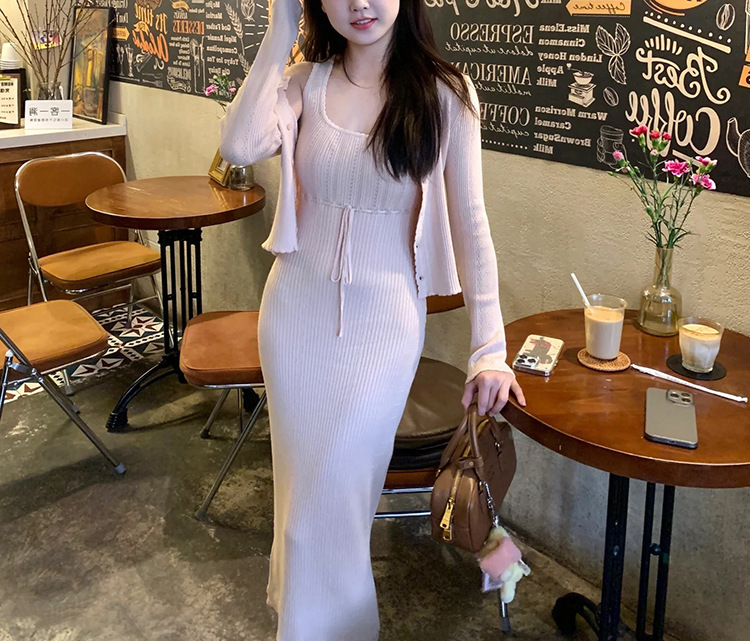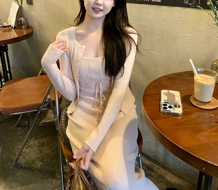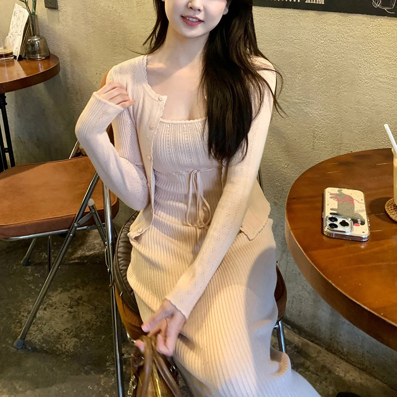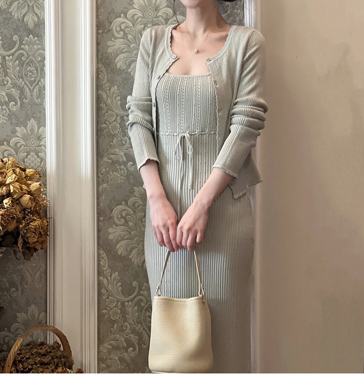 폴라베리 프렌치 니트 가디건 서스펜더 슈트 여성 봄 여름 기질 드레스 가디건