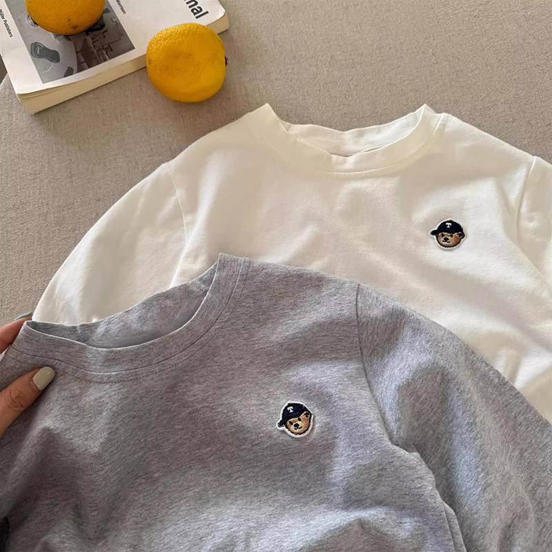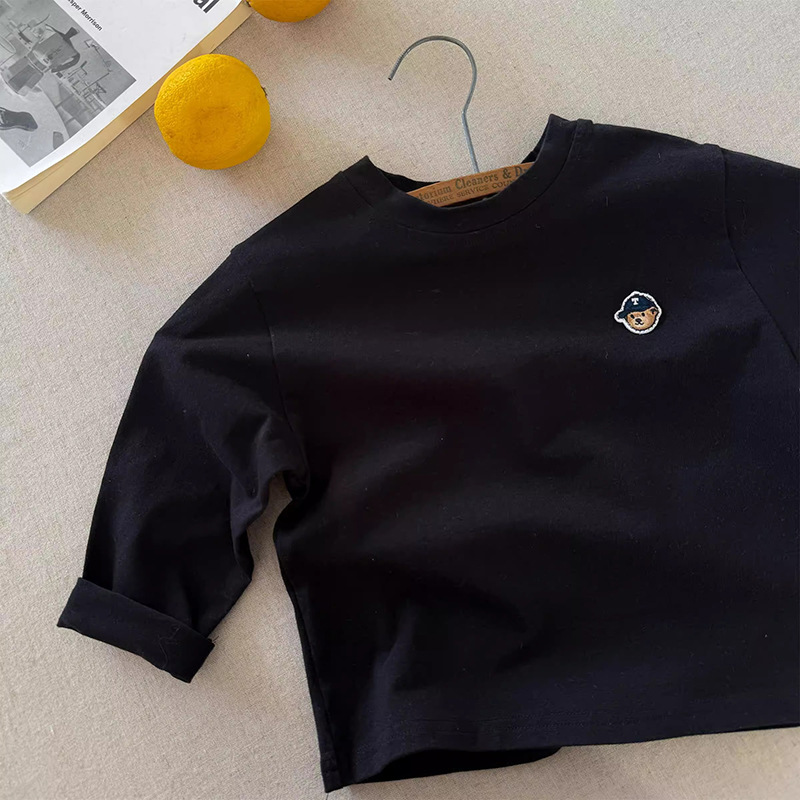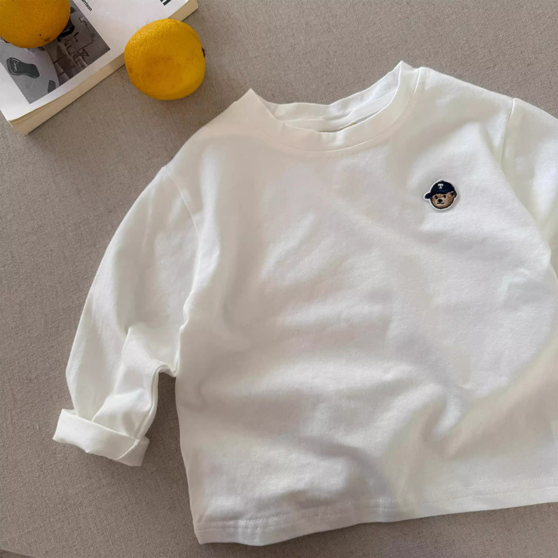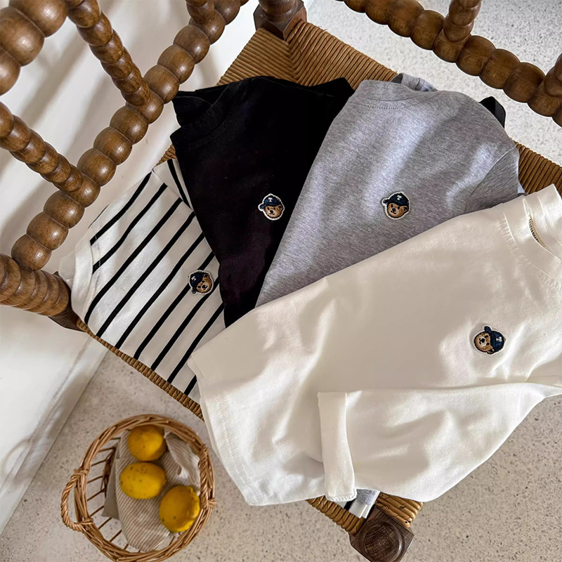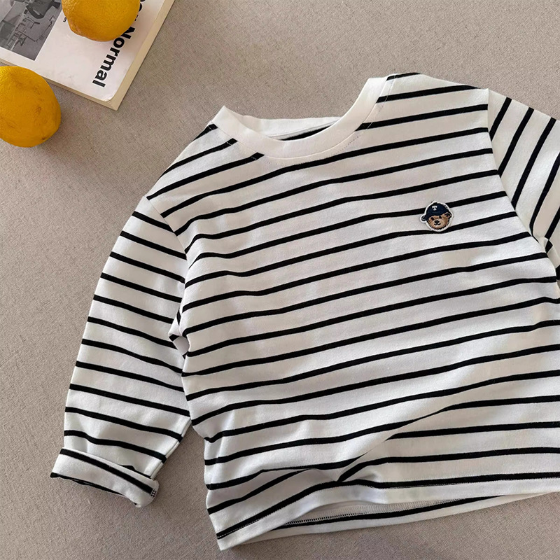 순수 코튼 아동 티셔츠 긴팔 탑 의류 2025 새로운 만화 줄무늬 자수 캐주얼 아동 의류 바닥 셔츠 봄, 가을스토어 가기