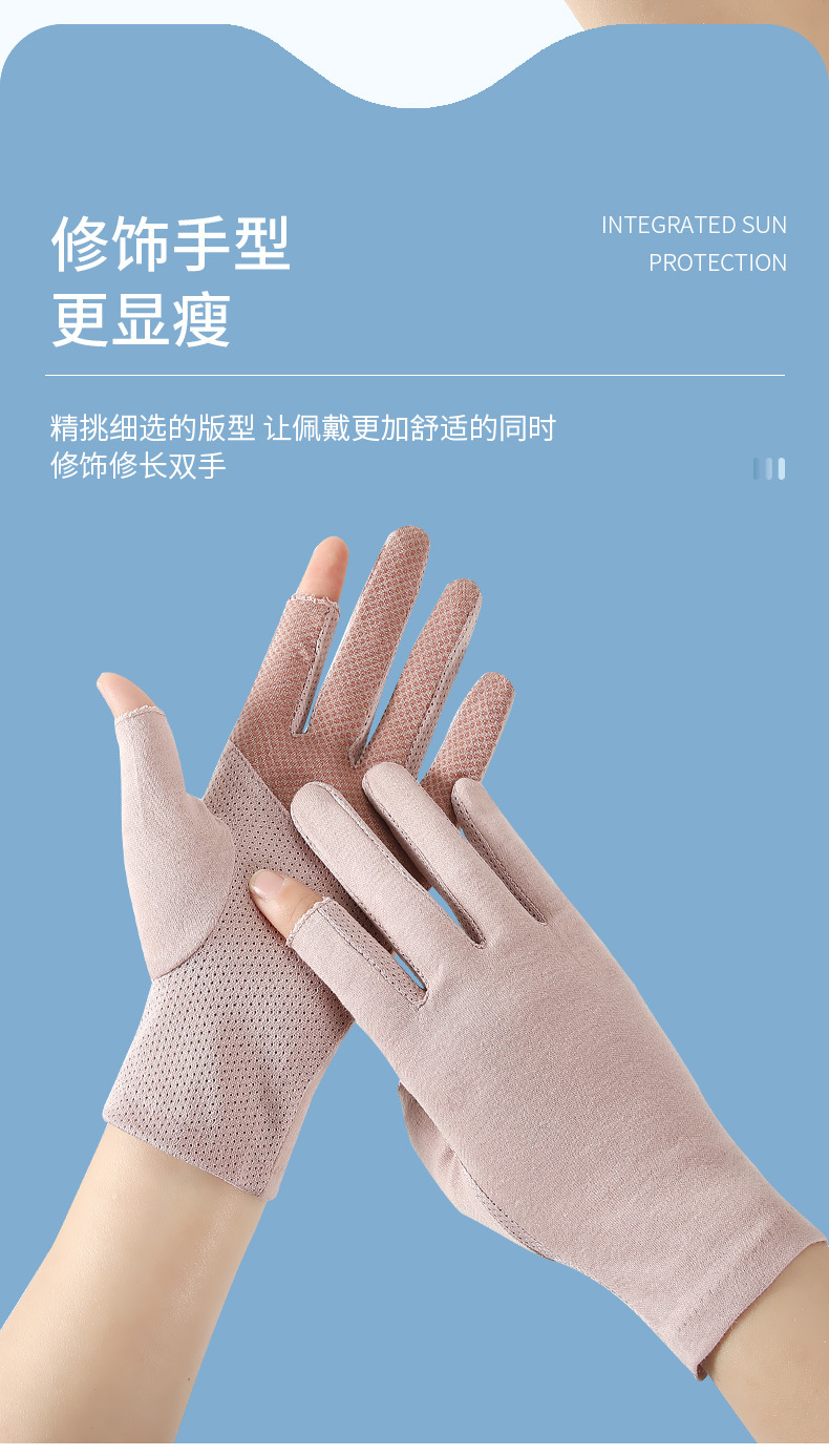 새로운 여름 터치 스크린 태양 보호 라이트 플레이트 비 슬립 얇은 승마 운전 장갑 여성 단색 간단한 장갑