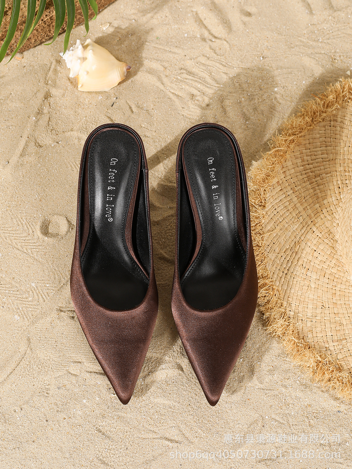여름 신상 심플하고 세련된 여성용 하이힐, 프렌치 레트로 브라운, 우아한 뾰족코 얕은 굽 얇은 굽 샌들