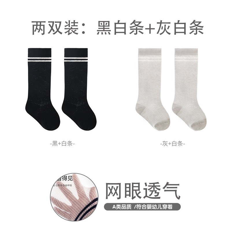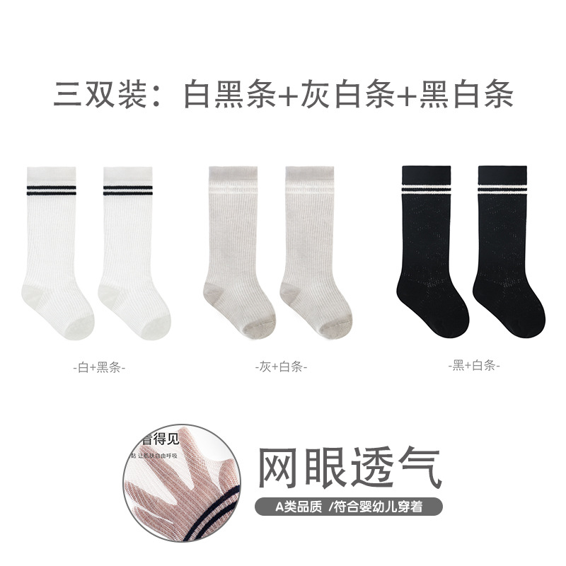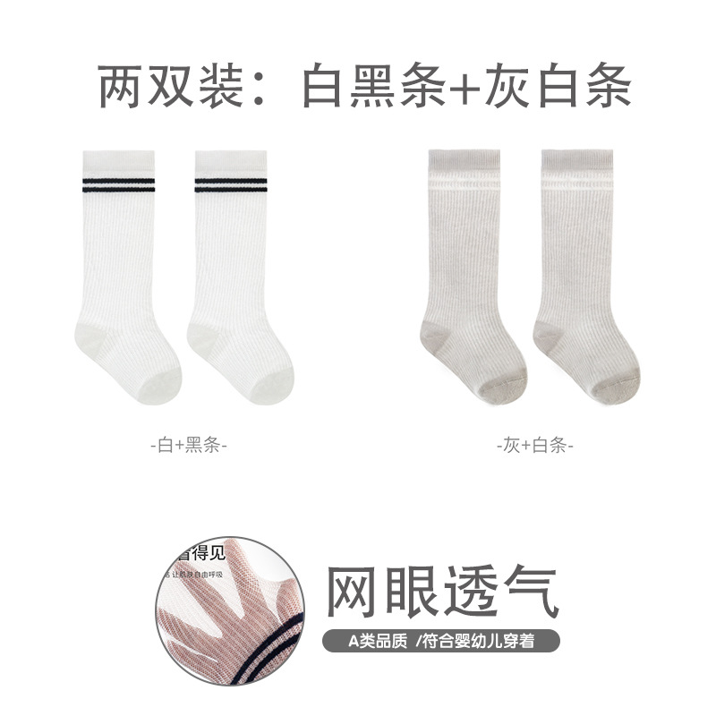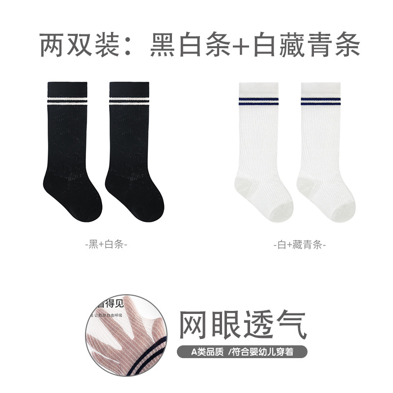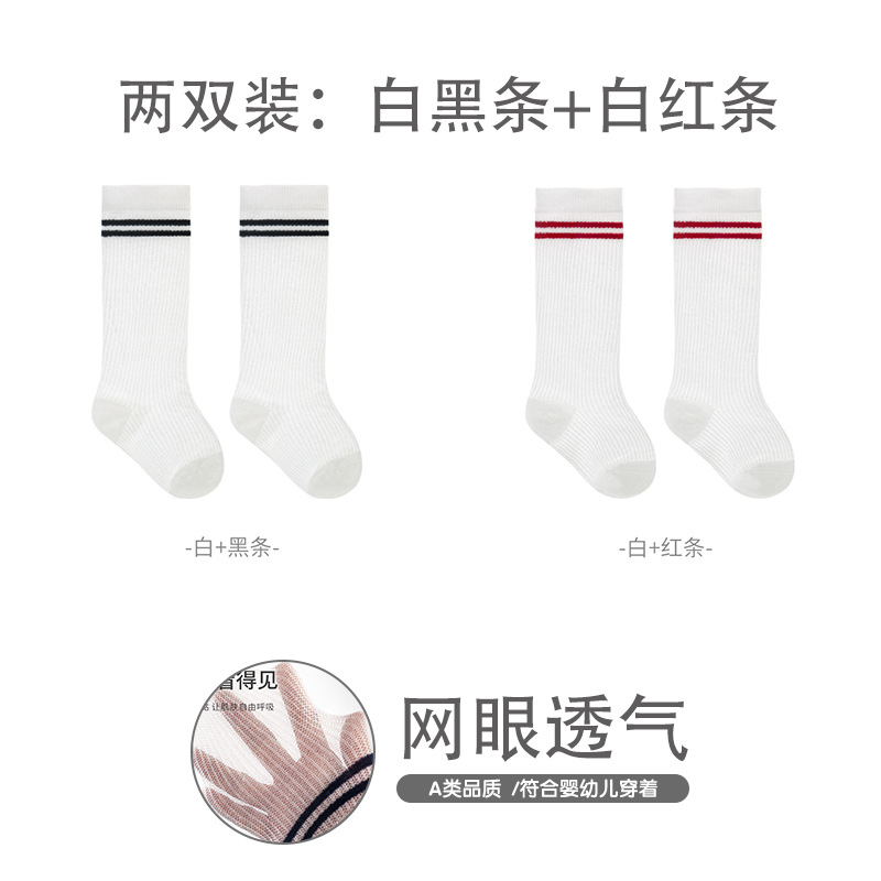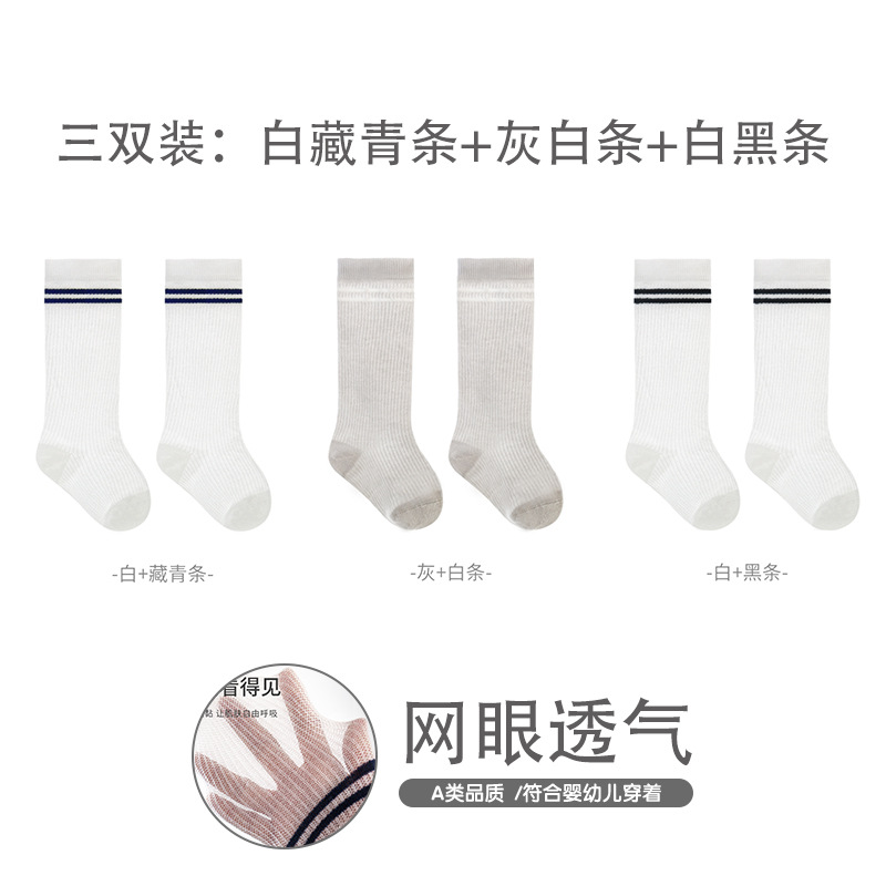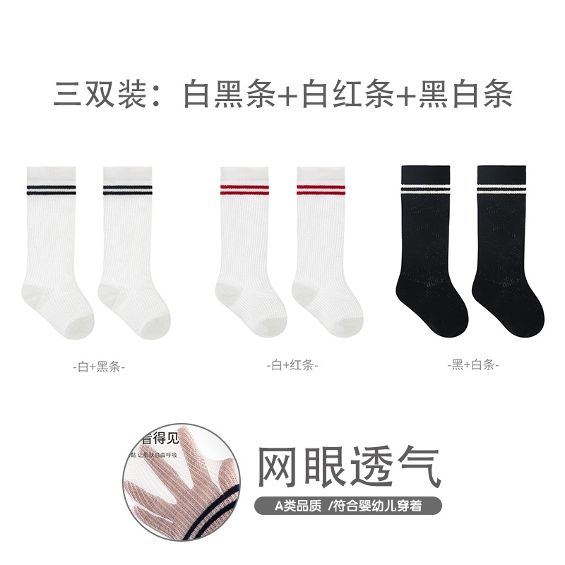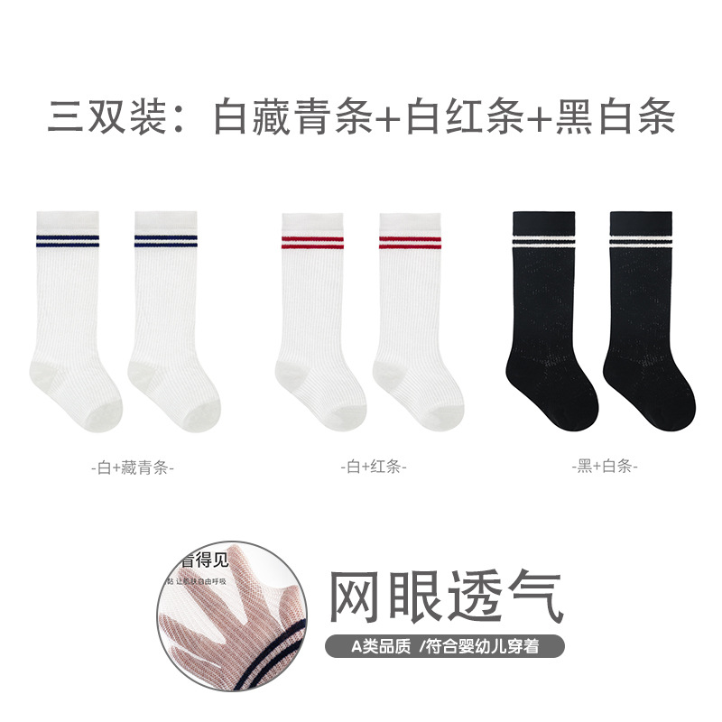 엄선된 어린이 스타킹, 여름용 얇은 메쉬 아기 양말, 대학 스타일 뼈없는 빗질 면 줄무늬 학생 양말