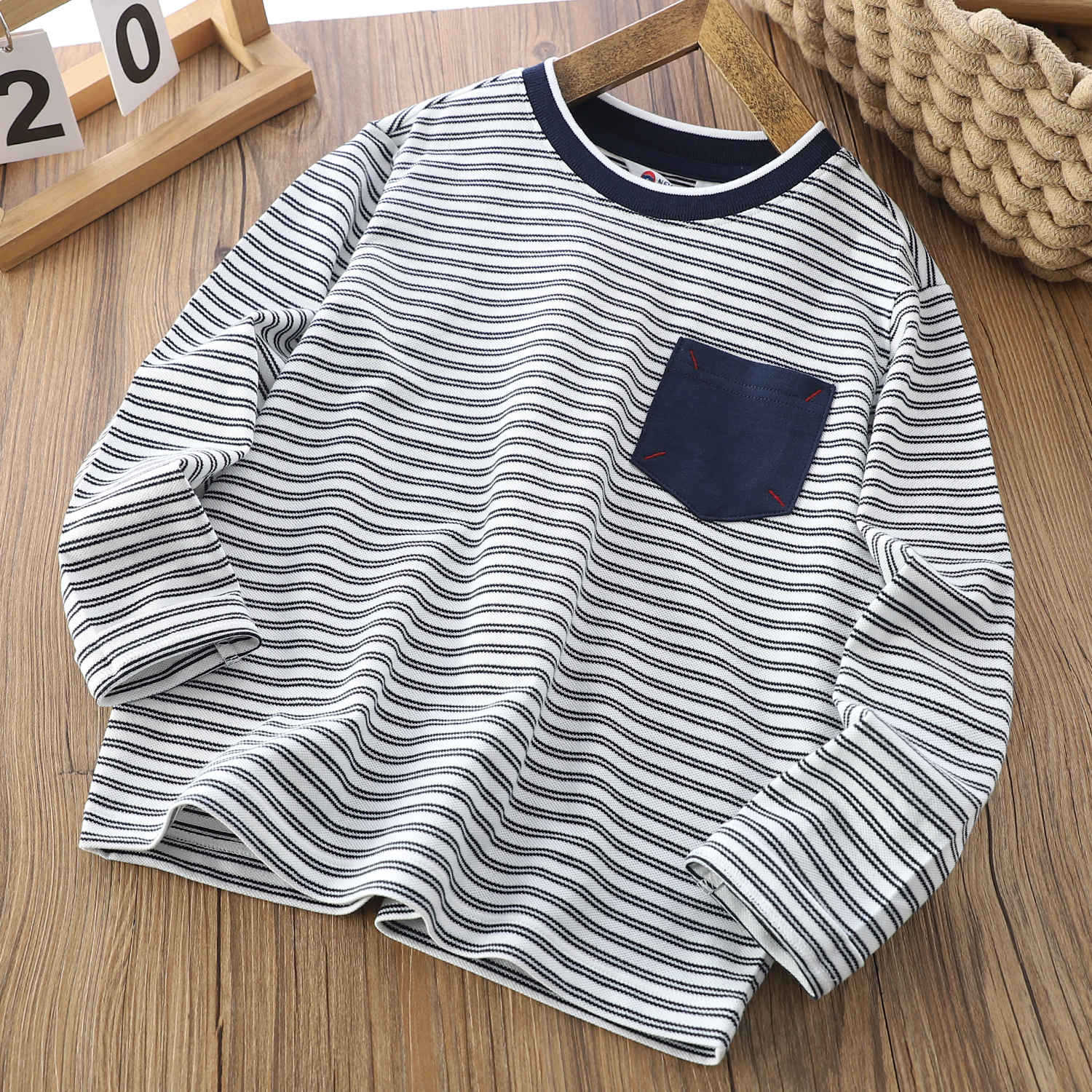 Xiong Zai 홈 25 봄 새로운 어린이 수평 긴 소매 중대형 어린이 간단한 티셔츠 크루 넥 풀오버 베이스 셔츠
