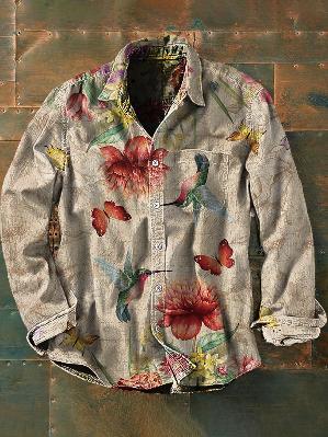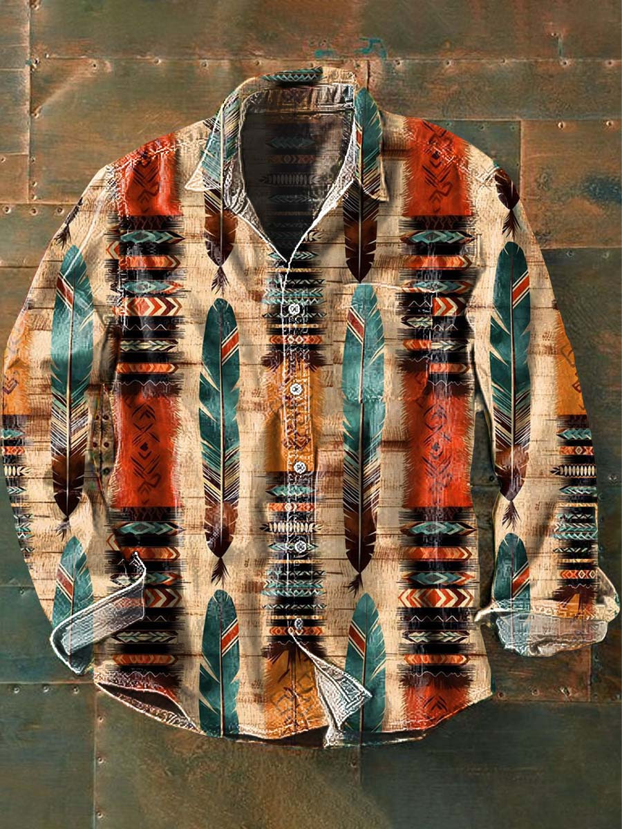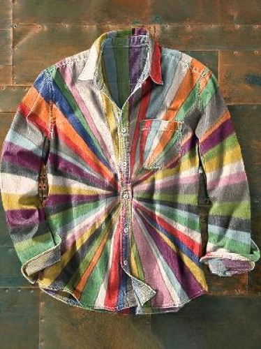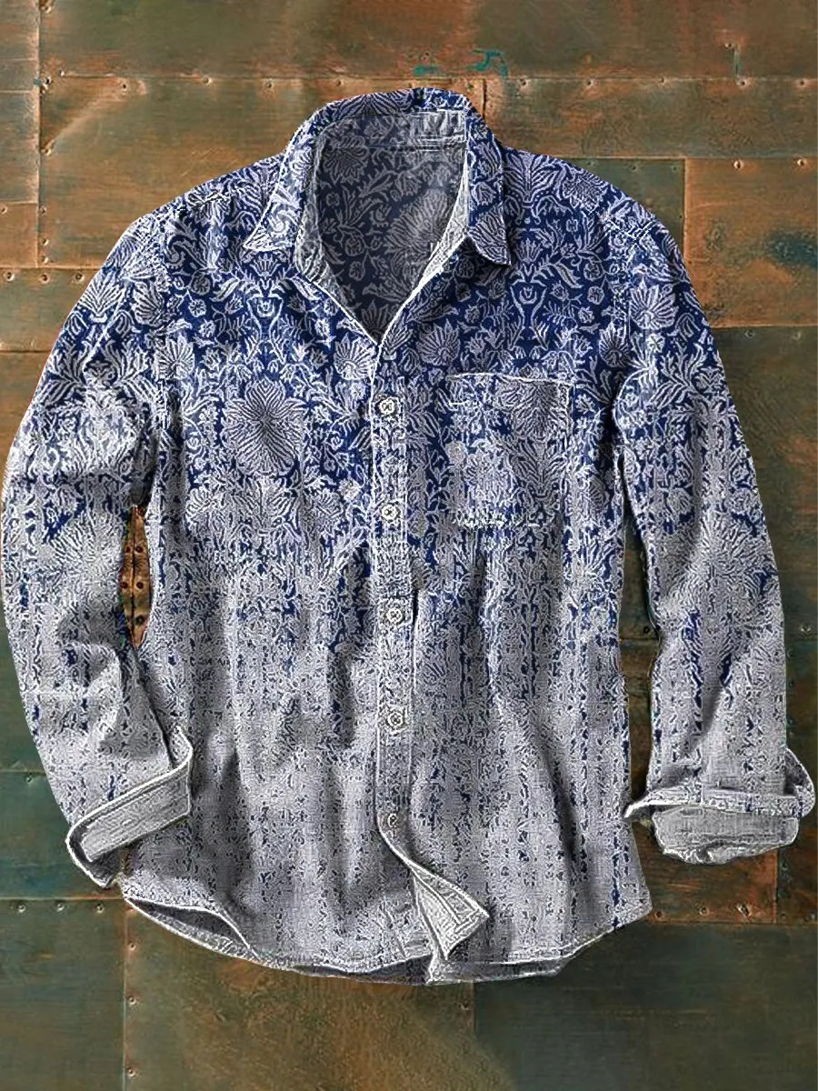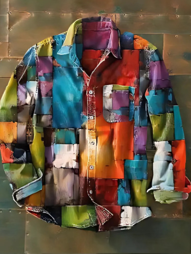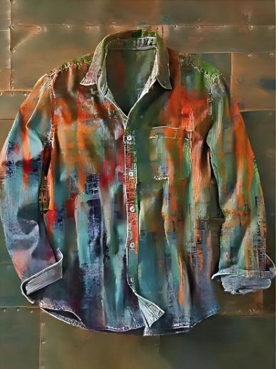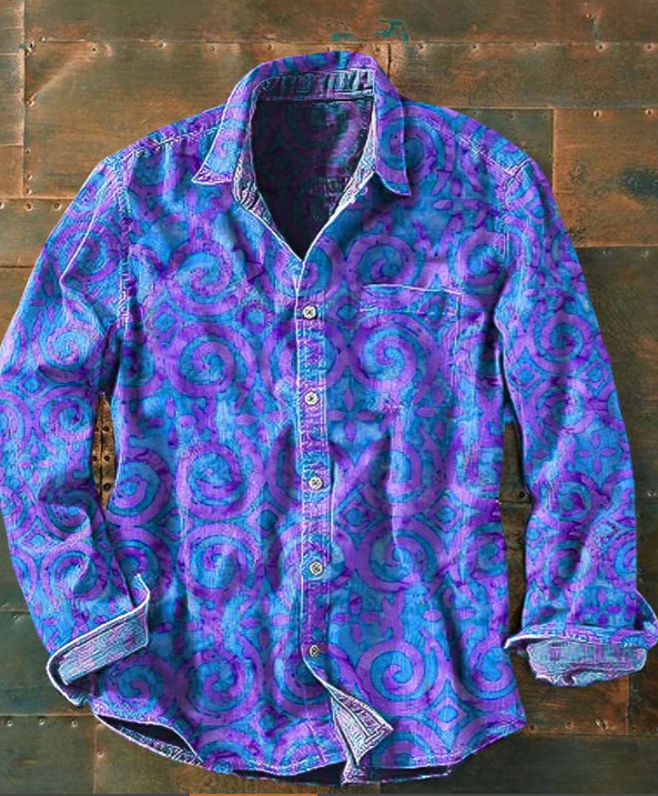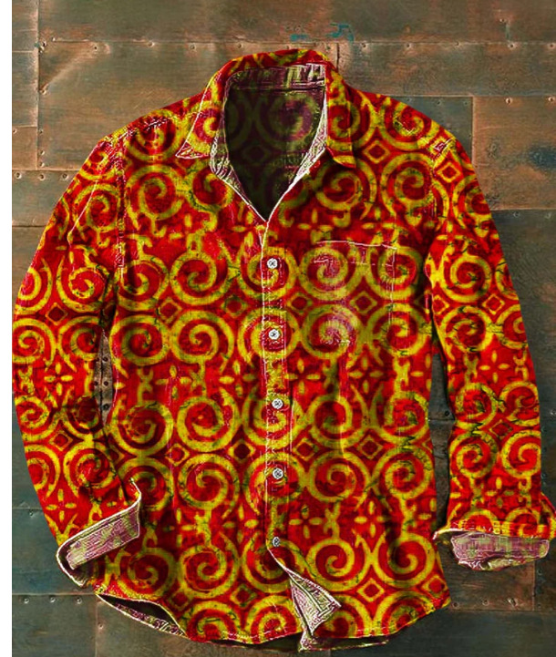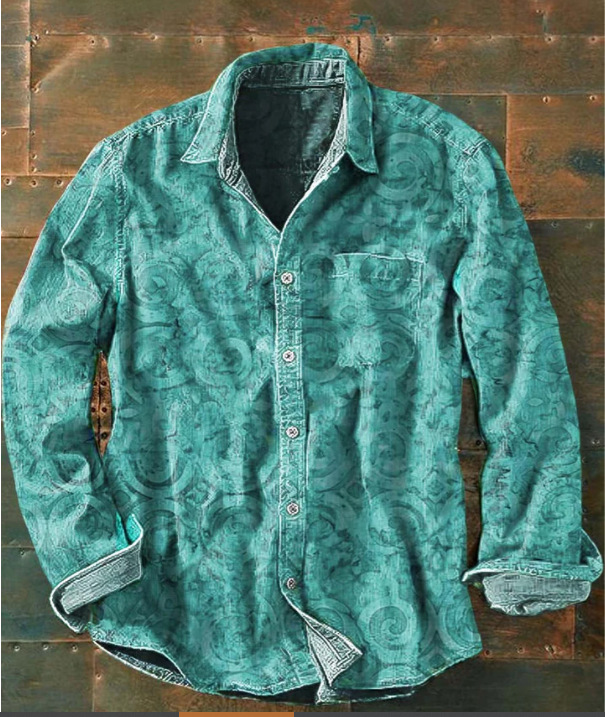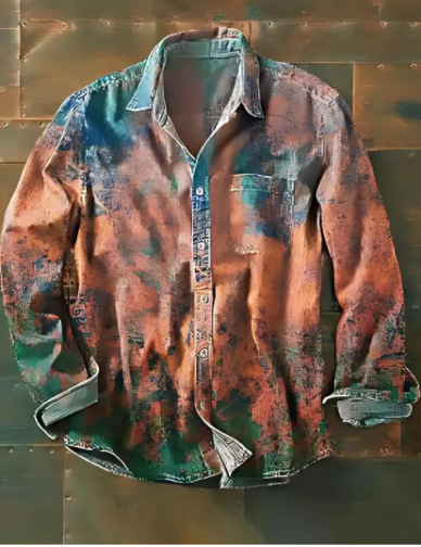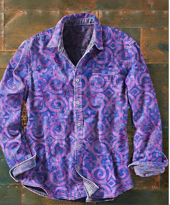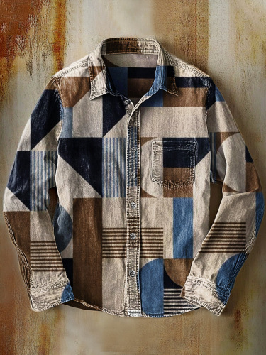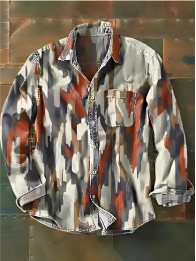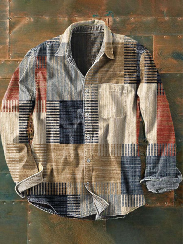 아마존 틸트 셔츠 빈티지 홀리데이 스타일 뜨거운 판매 컬러 블록 인쇄 트렌디 한 남자의 긴 소매 버튼 탑