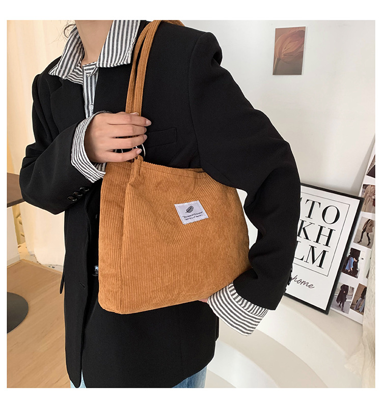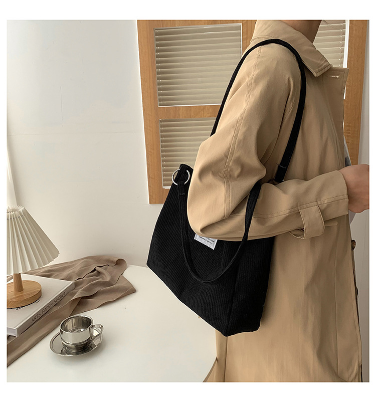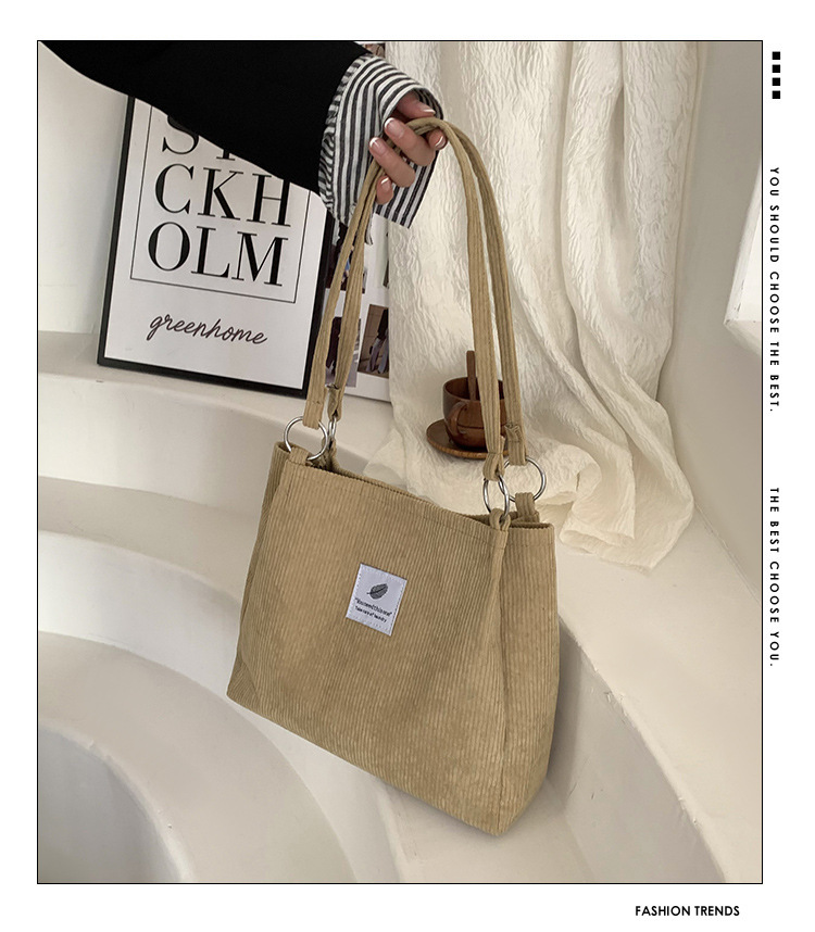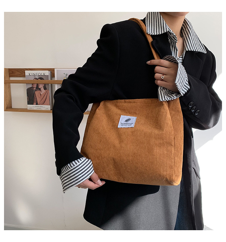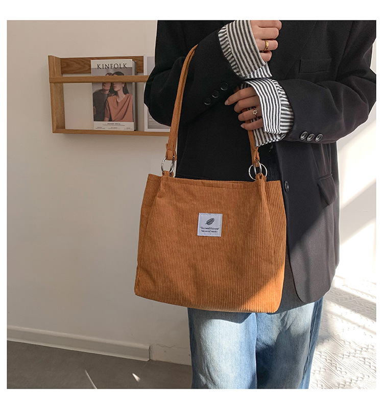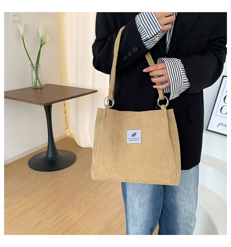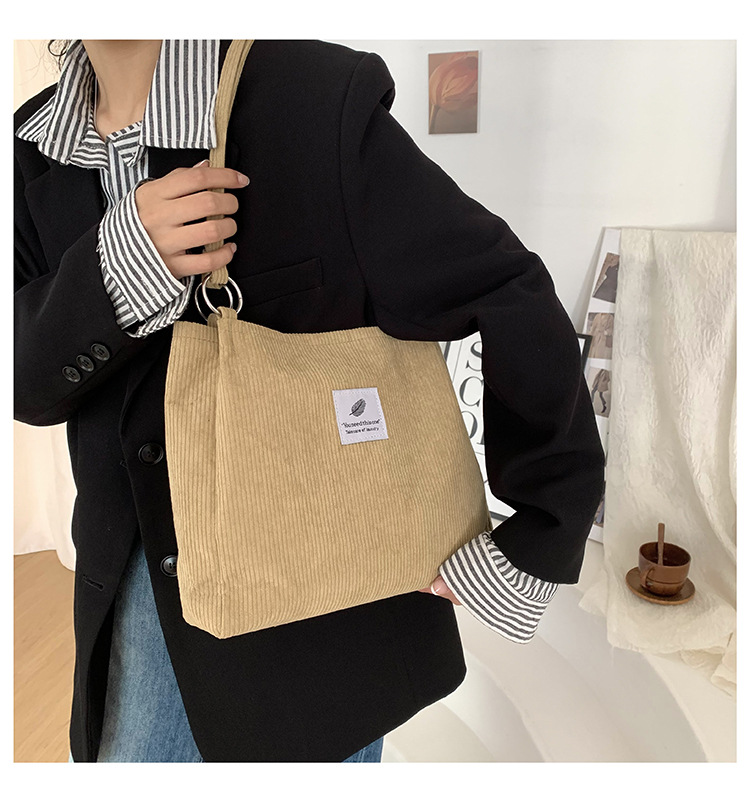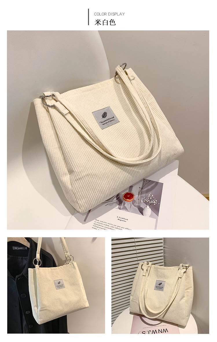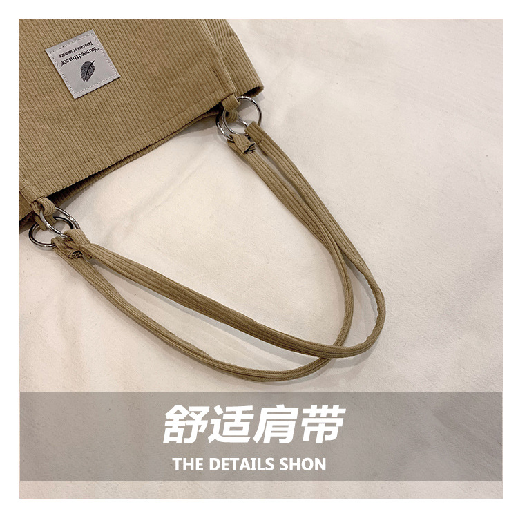 캔버스백 여성 숄더백 레트로 심플 문예풍 코듀로이 레이지 스타일 대용량 휴대용 캔버스백 여성 가방