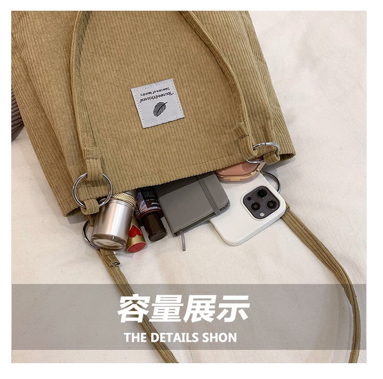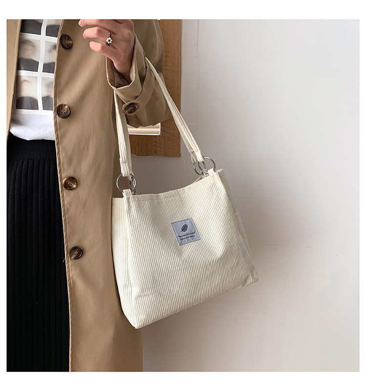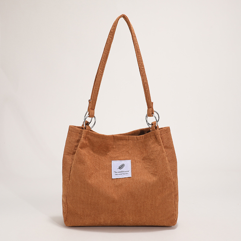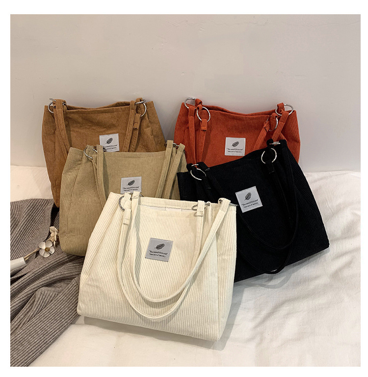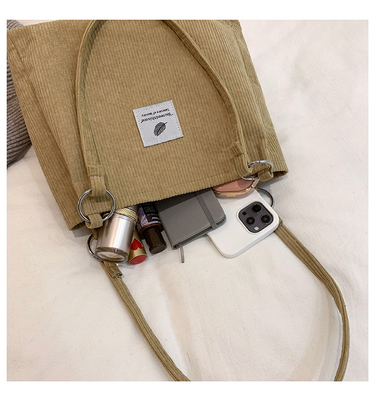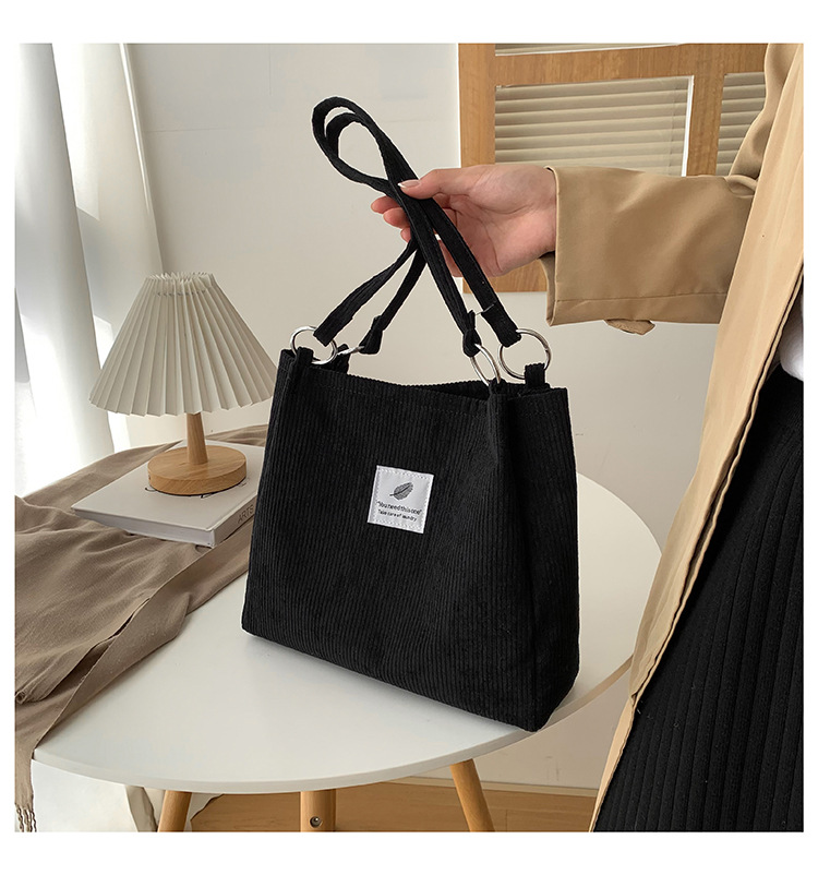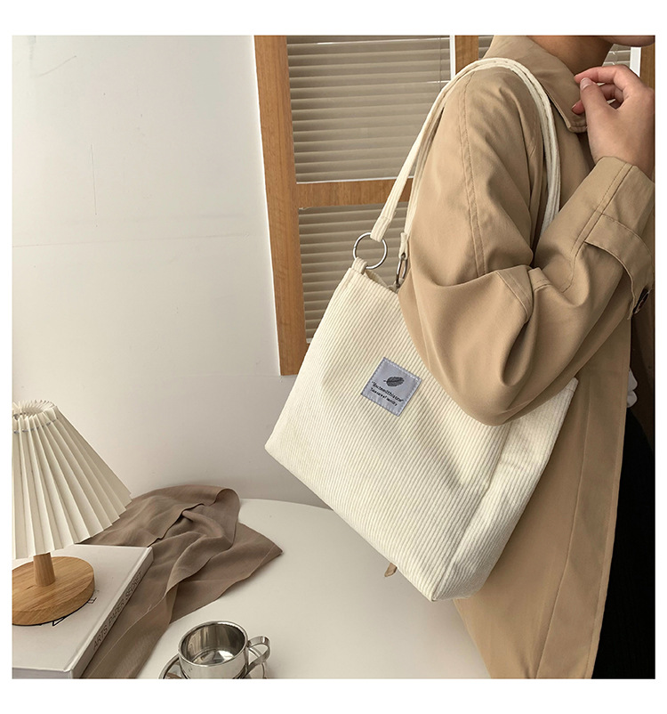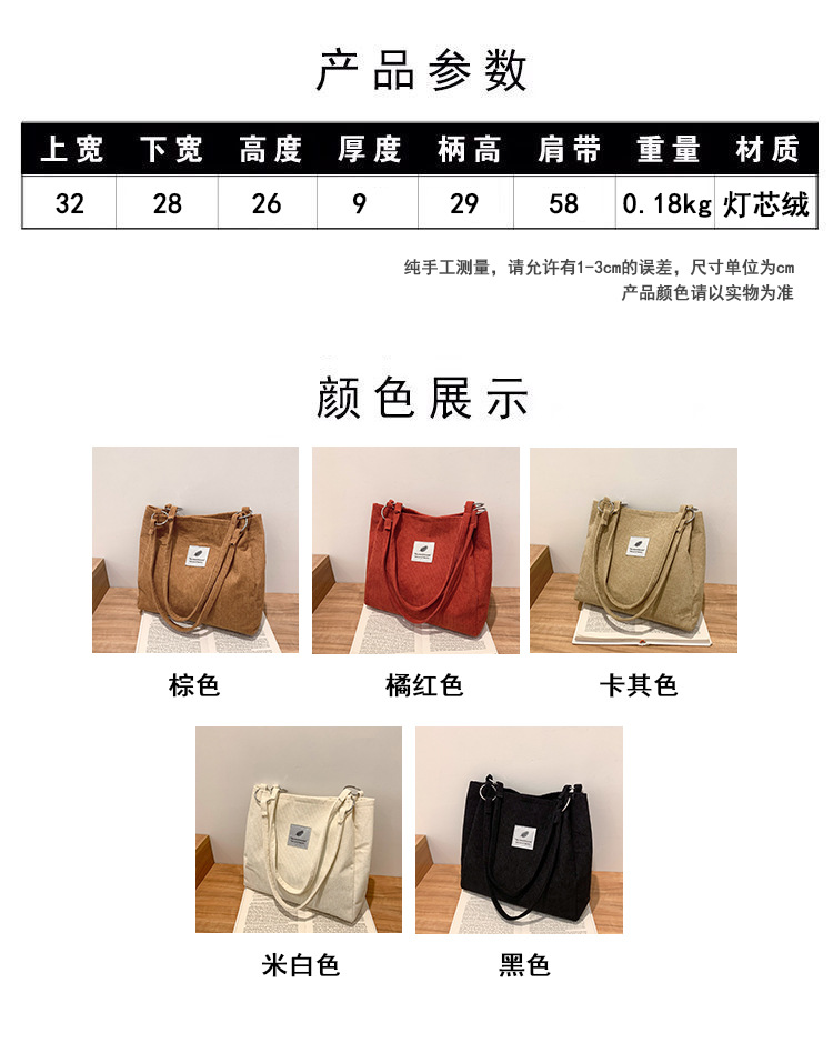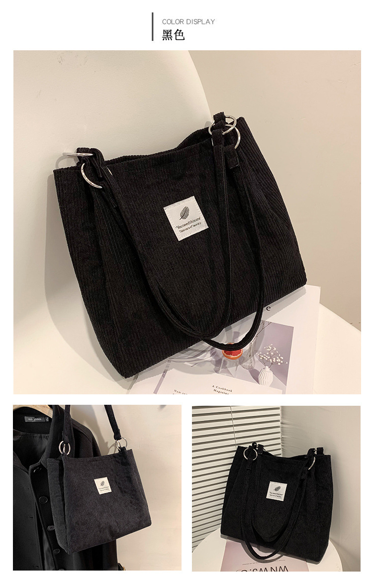 캔버스백 여성 숄더백 레트로 심플 문예풍 코듀로이 레이지 스타일 대용량 휴대용 캔버스백 여성 가방