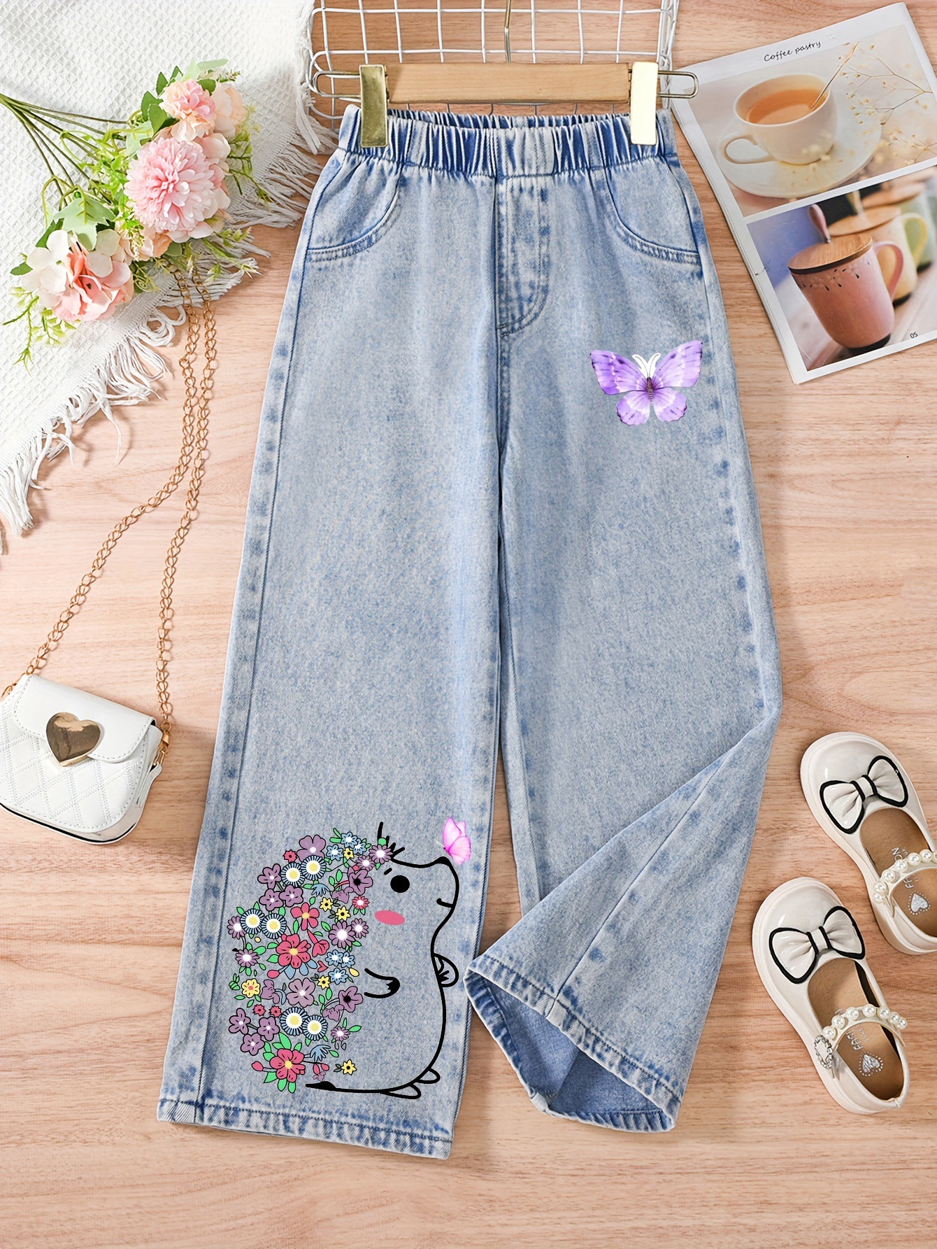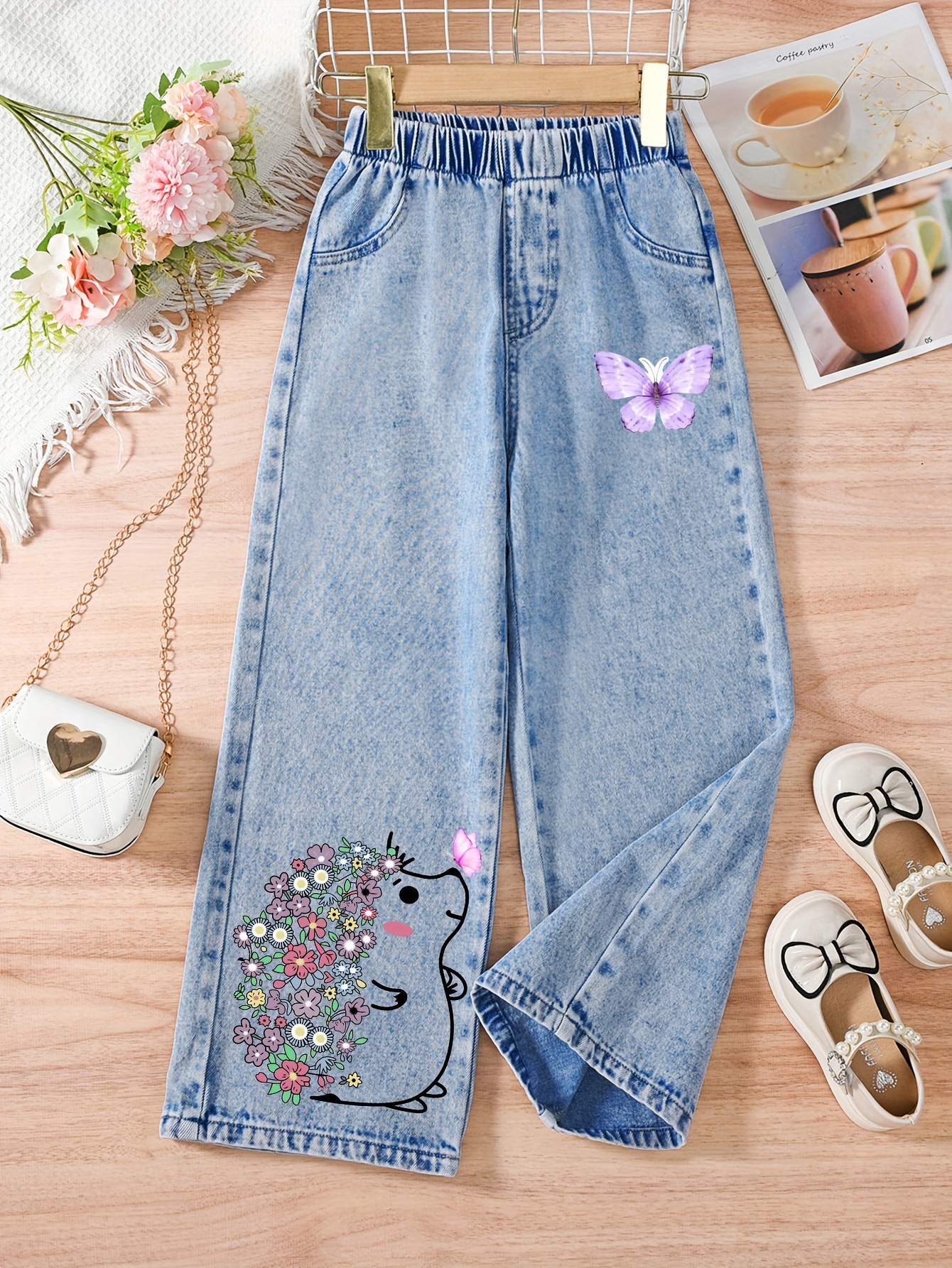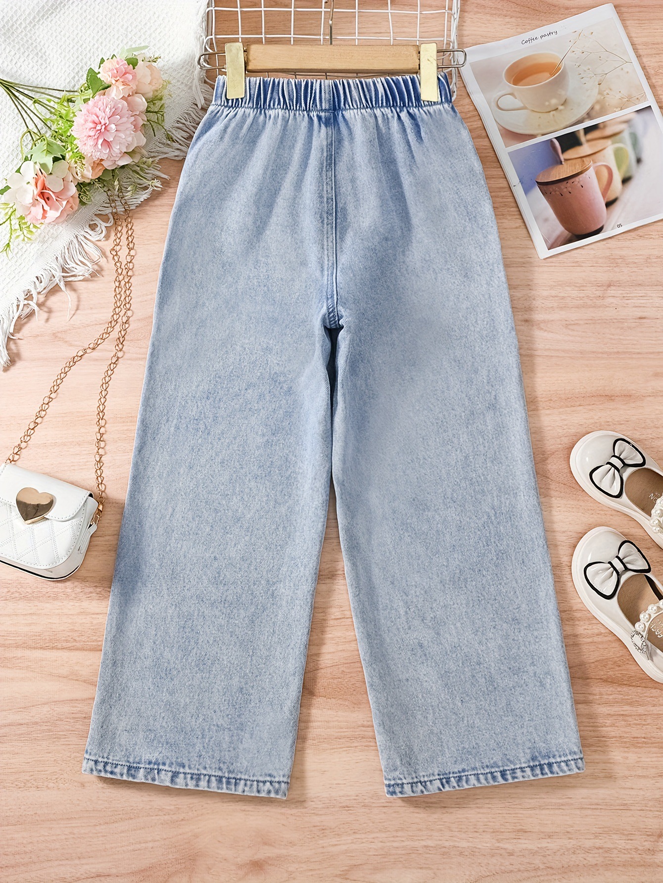 국경 간 대외 무역 큰 어린이 청바지 봄 새로운 느슨한 바지 서양식 유럽과 미국 바지 소녀 스트레이트 튜브 핫 스탬핑 바지스토어 가기