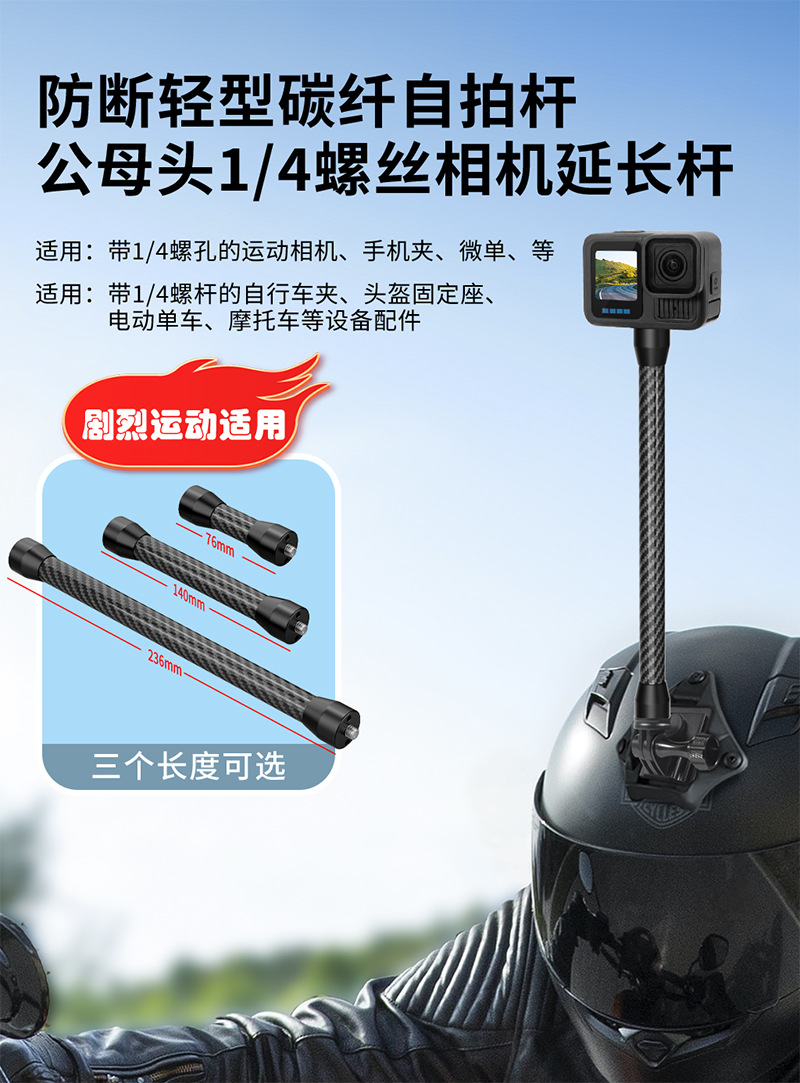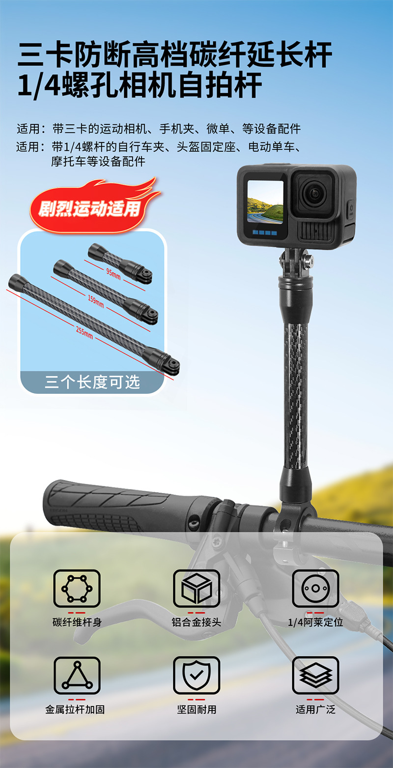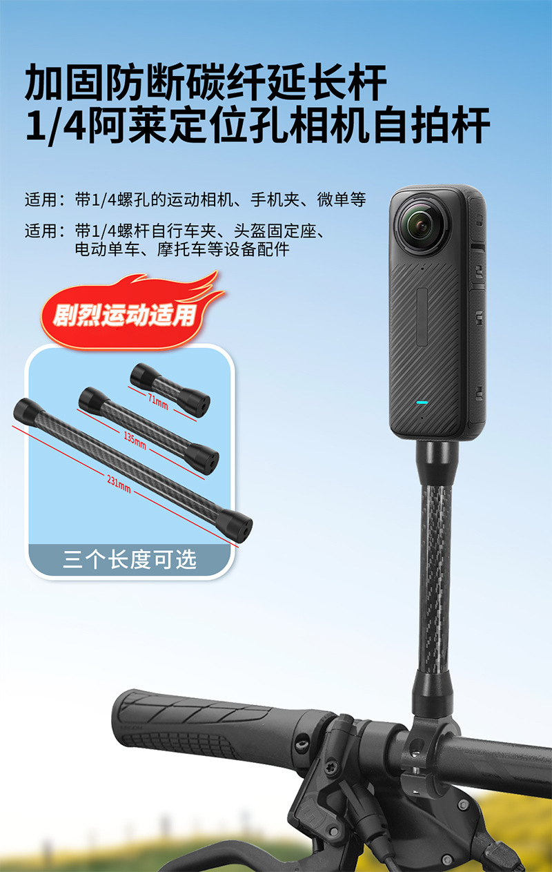 OSMO360/action5/gopro13 사이클링 셀카봉에 적합한 새로운 강화된 파손 방지 탄소 섬유 연장봉