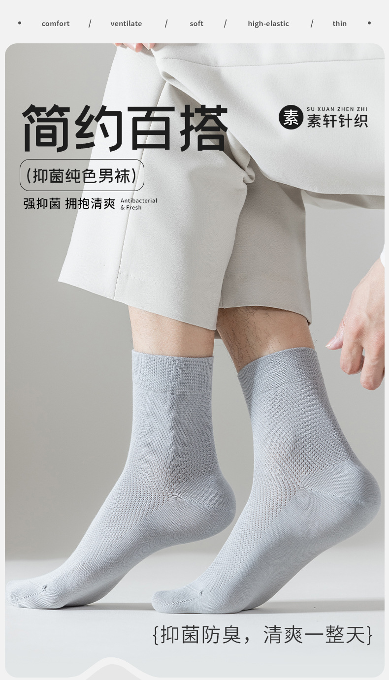 양말 남자의 여름 새로운 면 캐주얼 스포츠 편안한 미드 튜브 양말 솔리드 컬러 코튼 남성 양말 통기성 항균