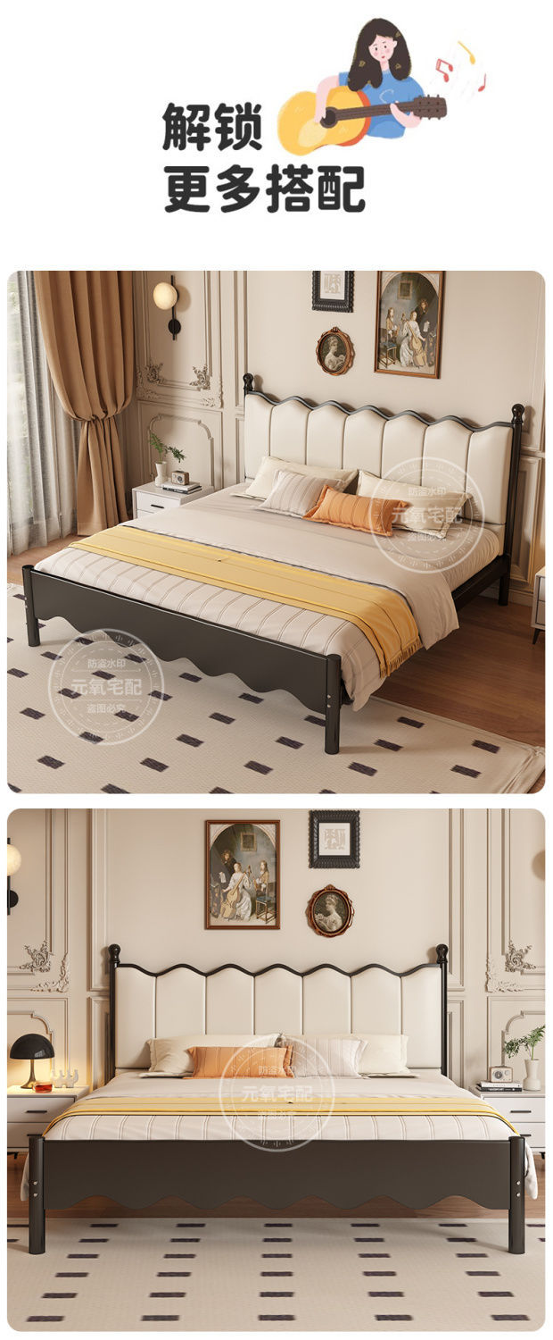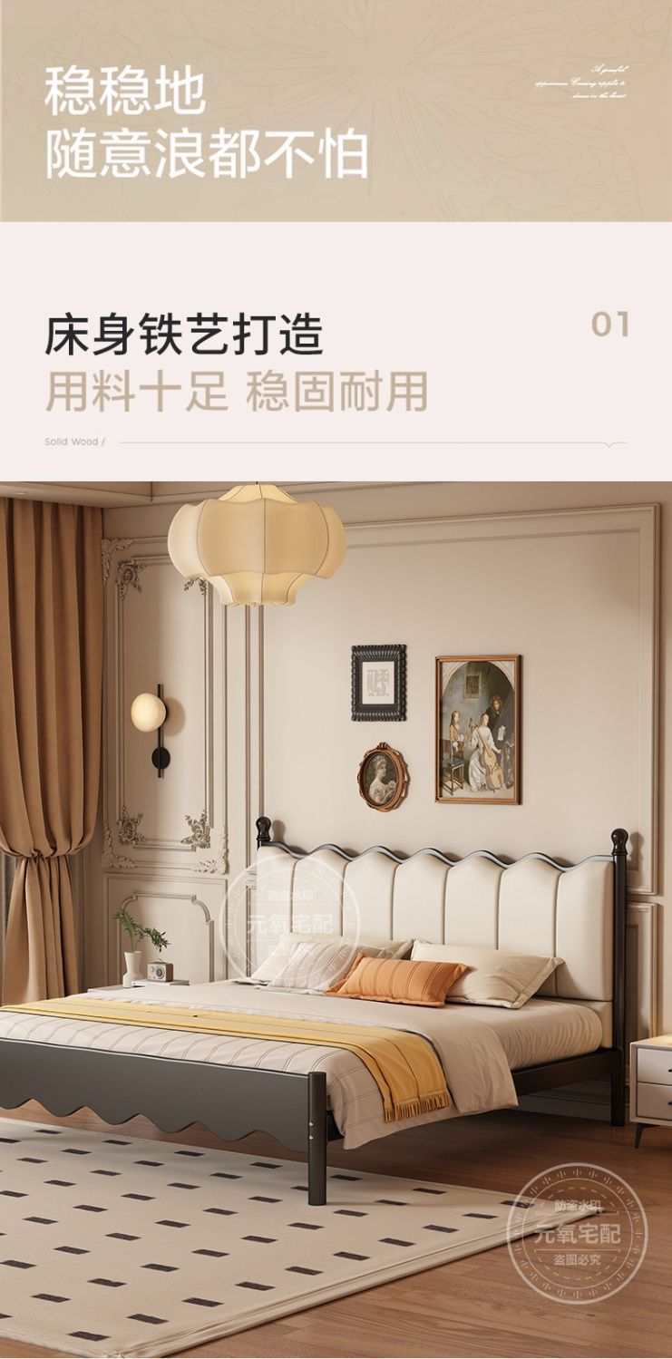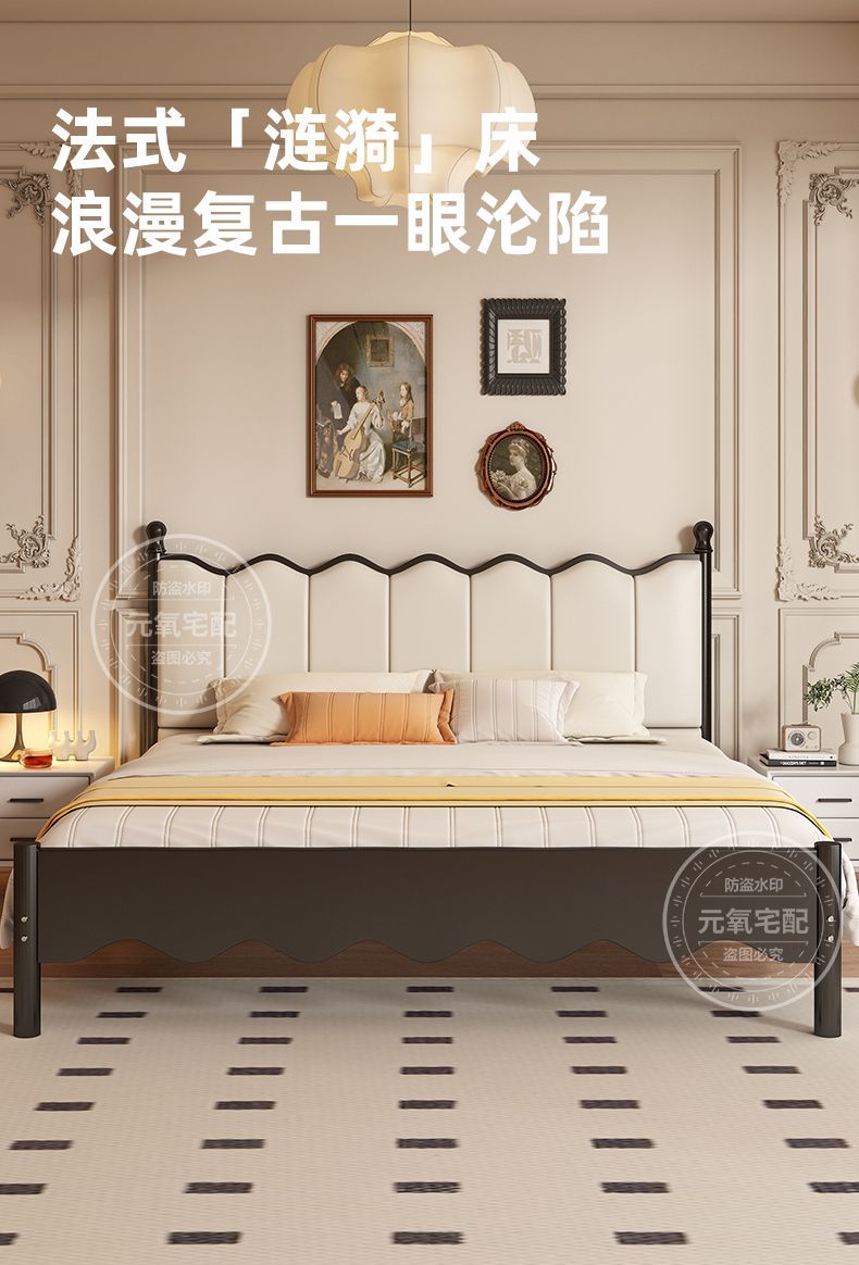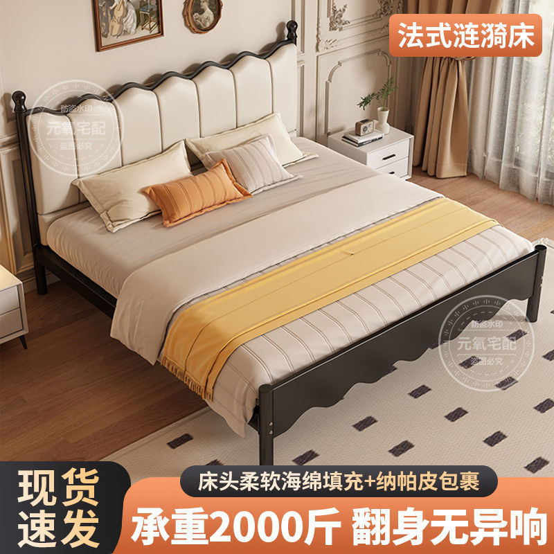 아이언 침대 더블 침대 현대 간단한 프랑스 스타일 랙 아이언 침대 두꺼운 강화 1.5 아이언 침대 임대 방스토어 가기