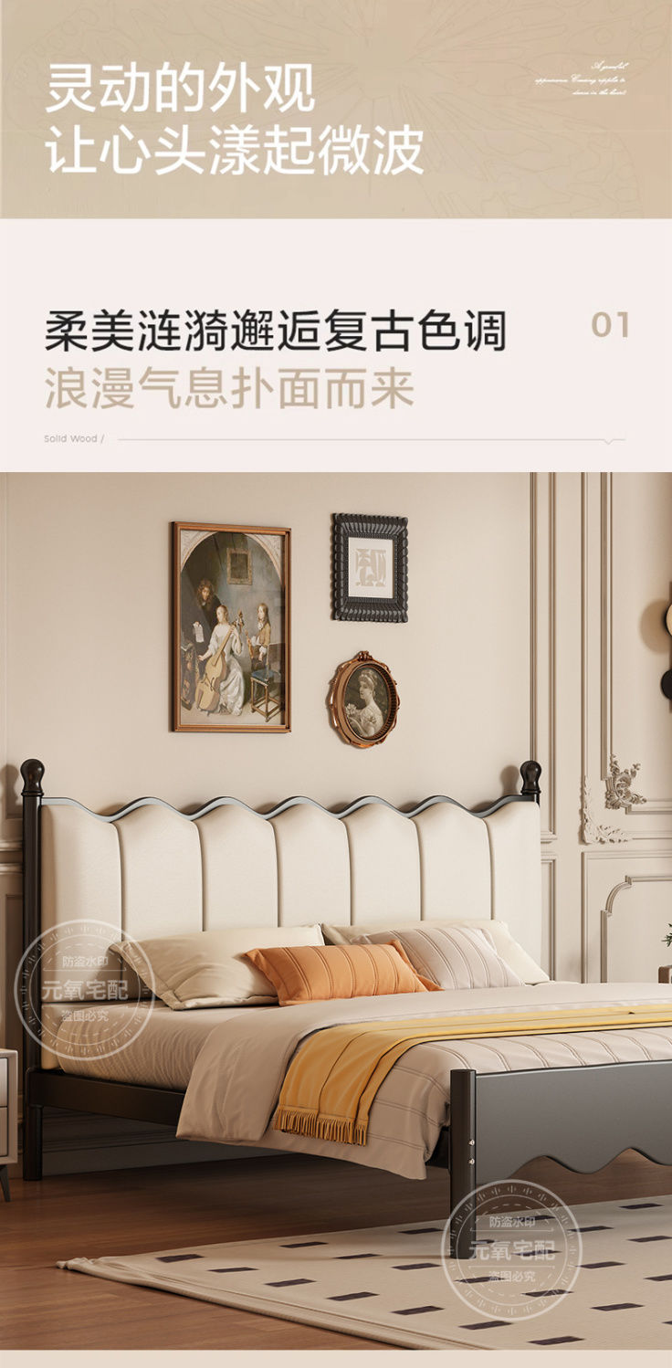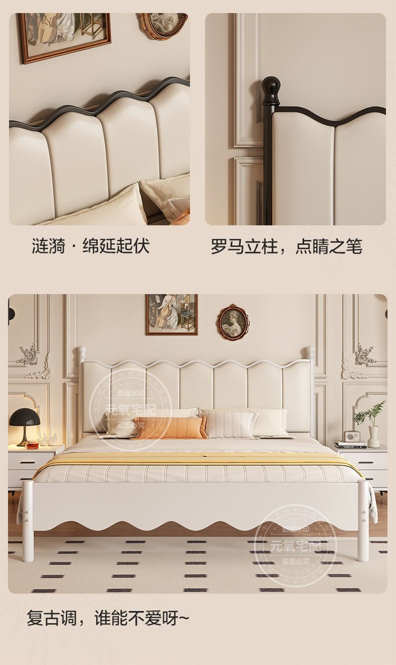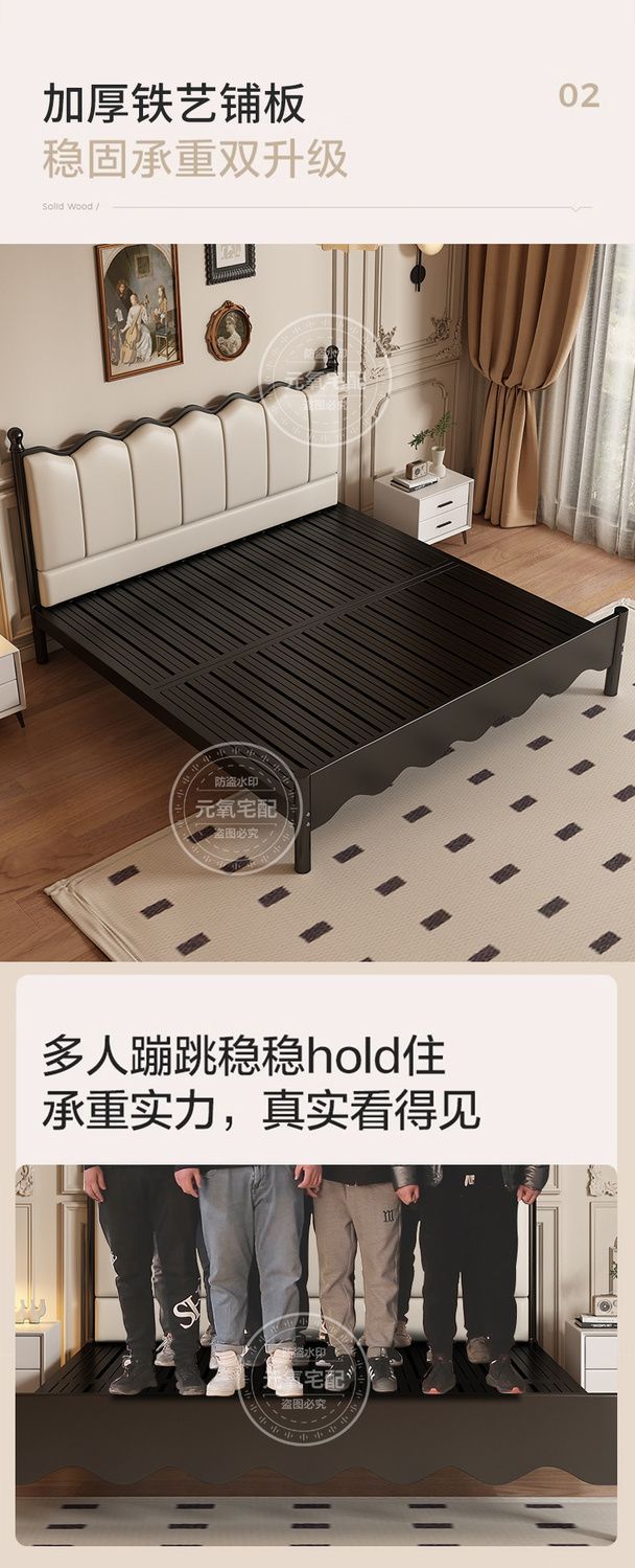 아이언 침대 더블 침대 현대 간단한 프랑스 스타일 랙 아이언 침대 두꺼운 강화 1.5 아이언 침대 임대 방스토어 가기