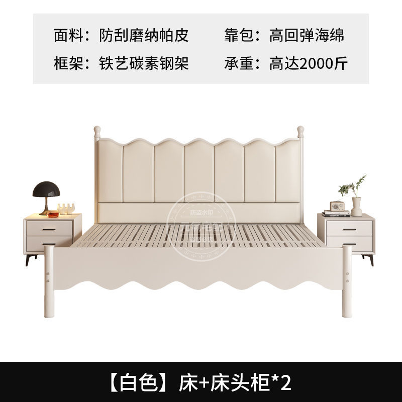 • [나파가죽] 화이트 침대 + 침대협탁*2