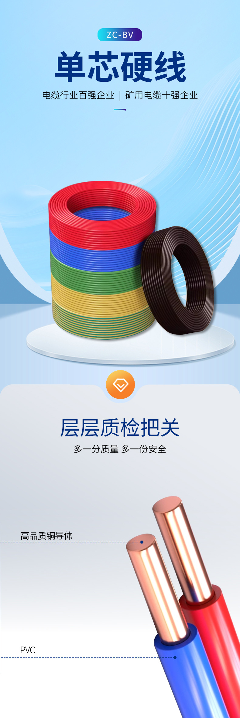 ZC-BV 국가 표준 와이어 난연제 1.5/2.5/6 평면 와이어 PVC 절연 홈 장식 구리 코어 하드 와이어스토어 가기