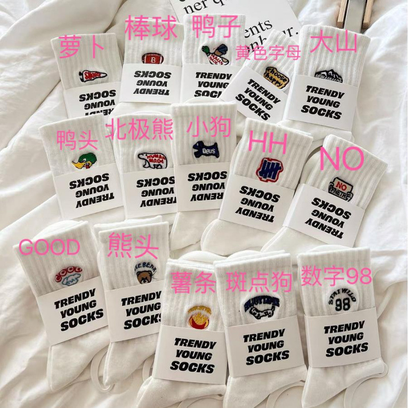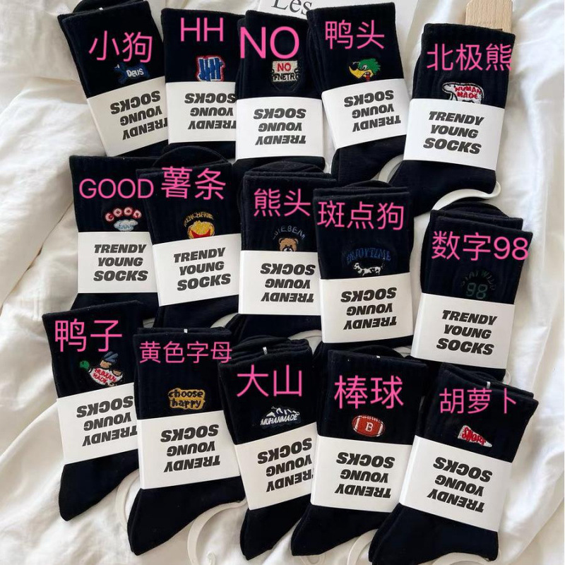 커플 양말 사계절 캐주얼 올 매치 롱 배럴 스포츠 양말 만화 자수 땀 흡수 통기성 커플 양말스토어 가기