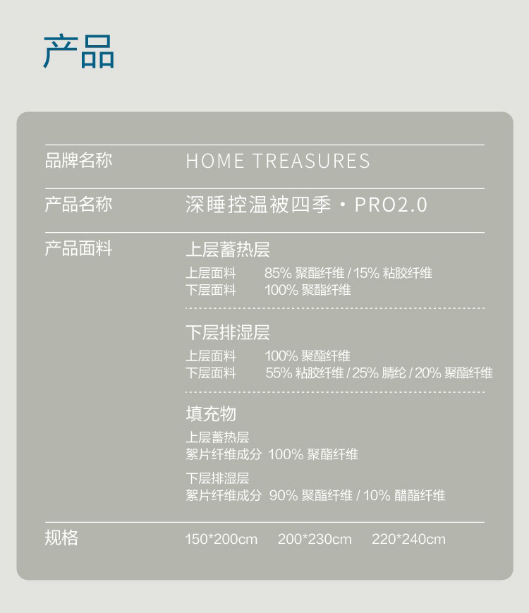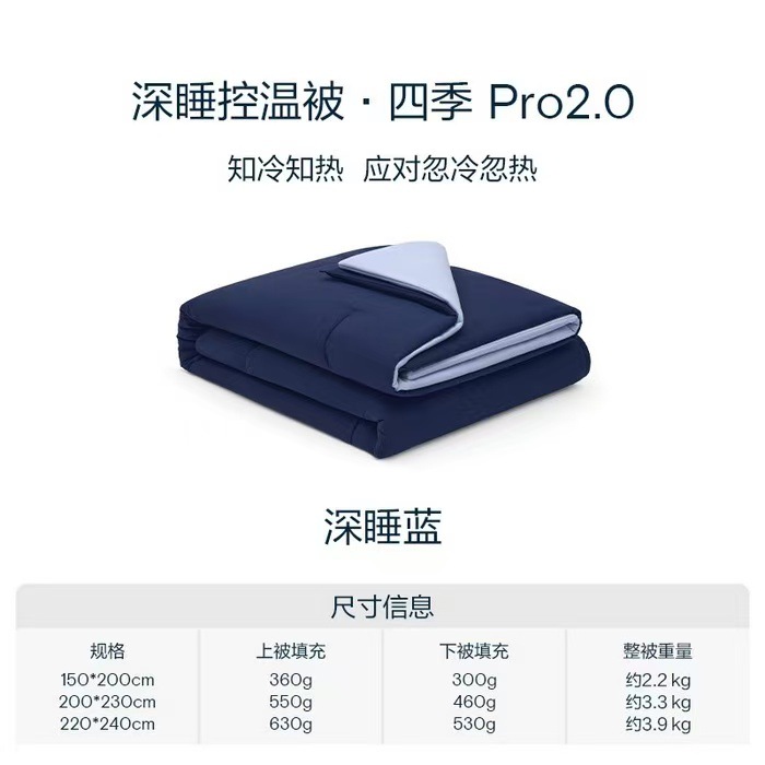 • 2-in-1 사계절 이불 220X240CM 3.8kg (충전재 중량: 축열층 630g, 흡습층 530g)